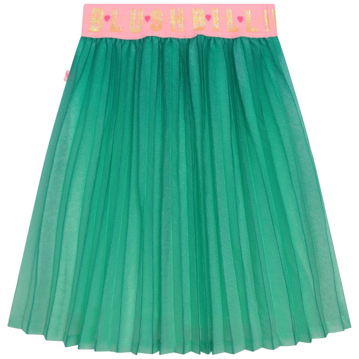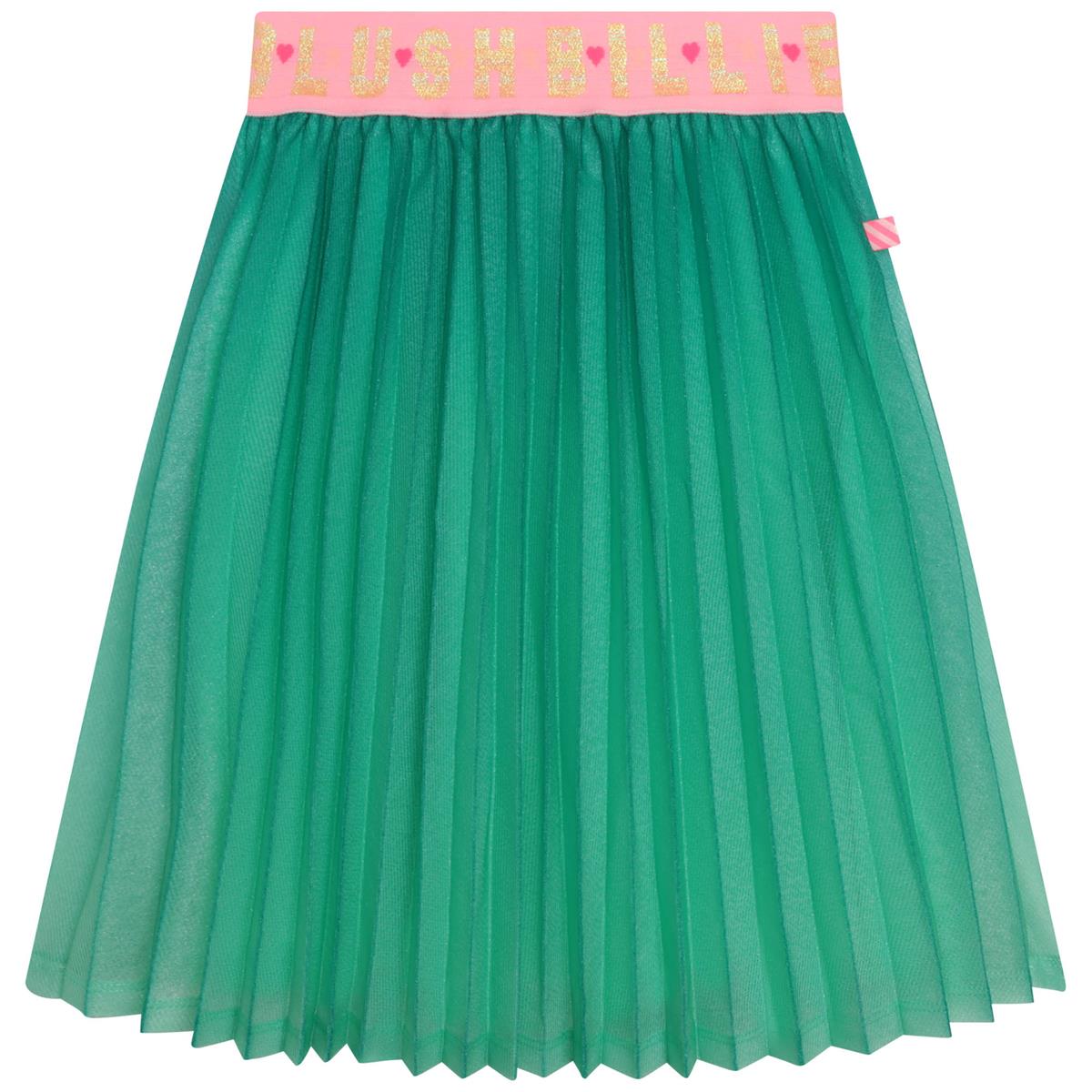 女童绿色百褶短裙