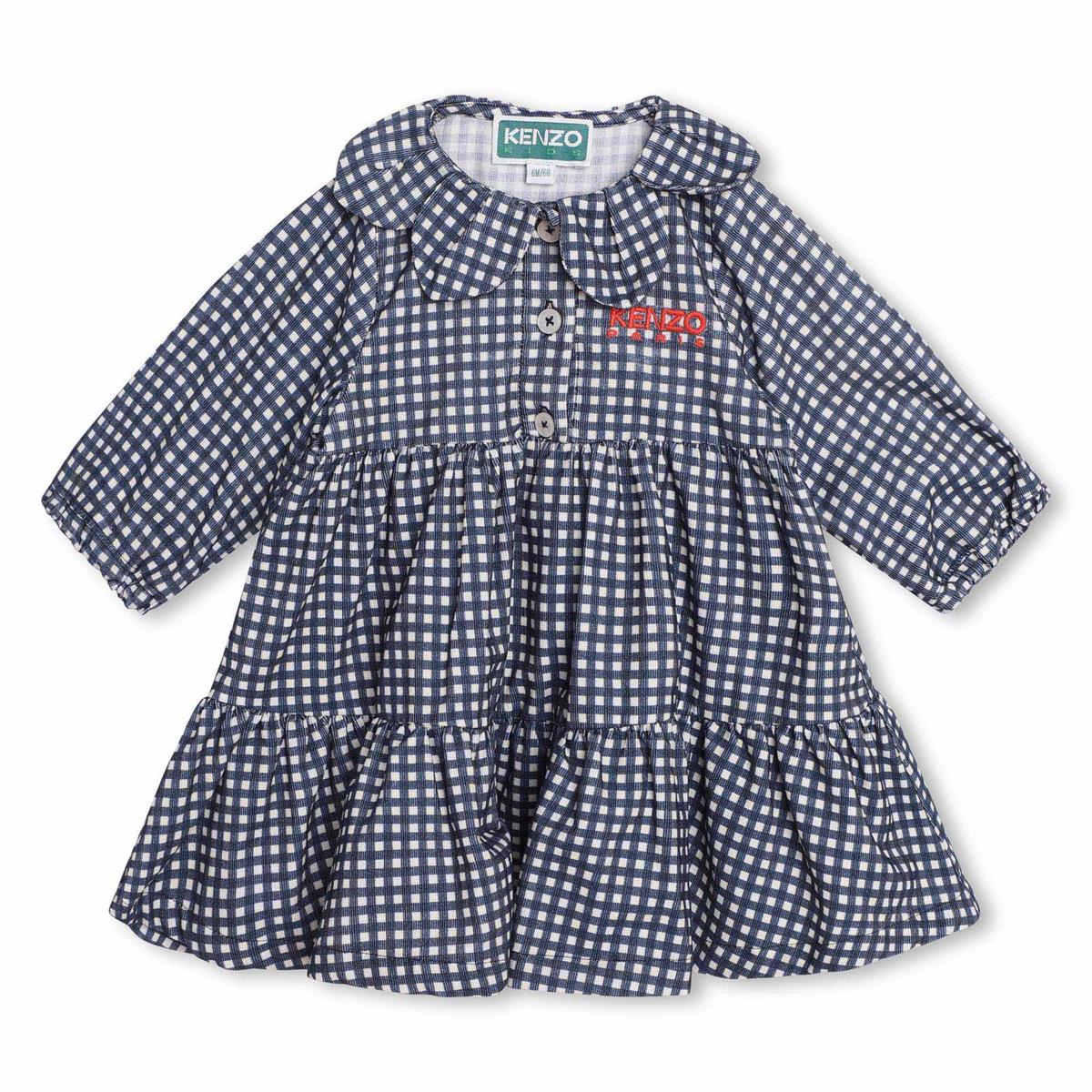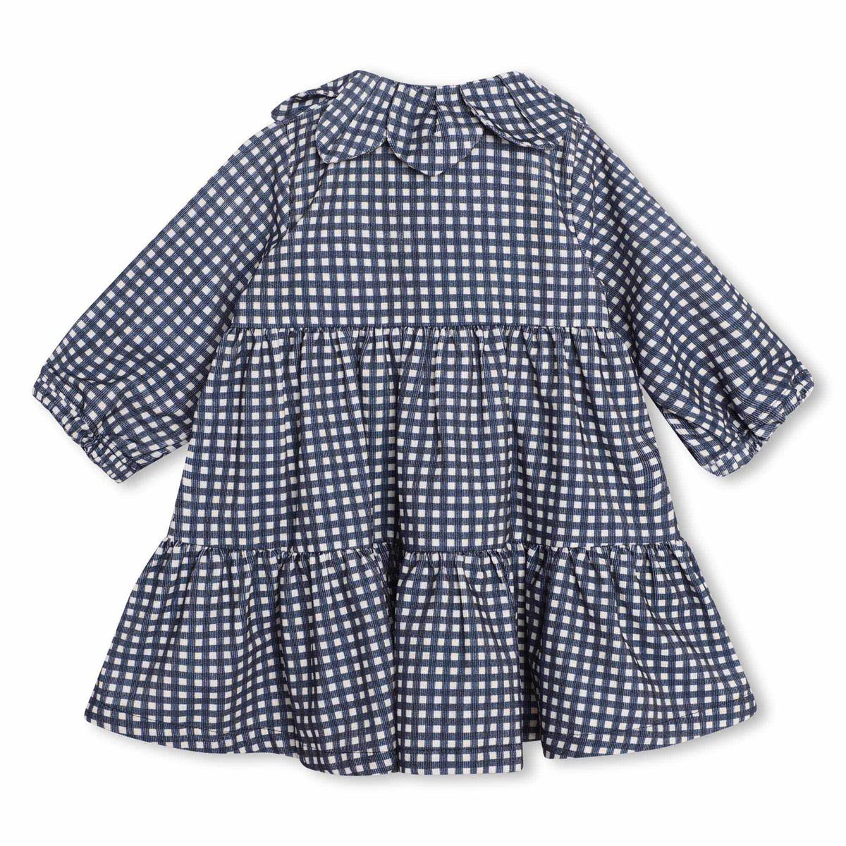 女婴蓝色格子棉连衣裙