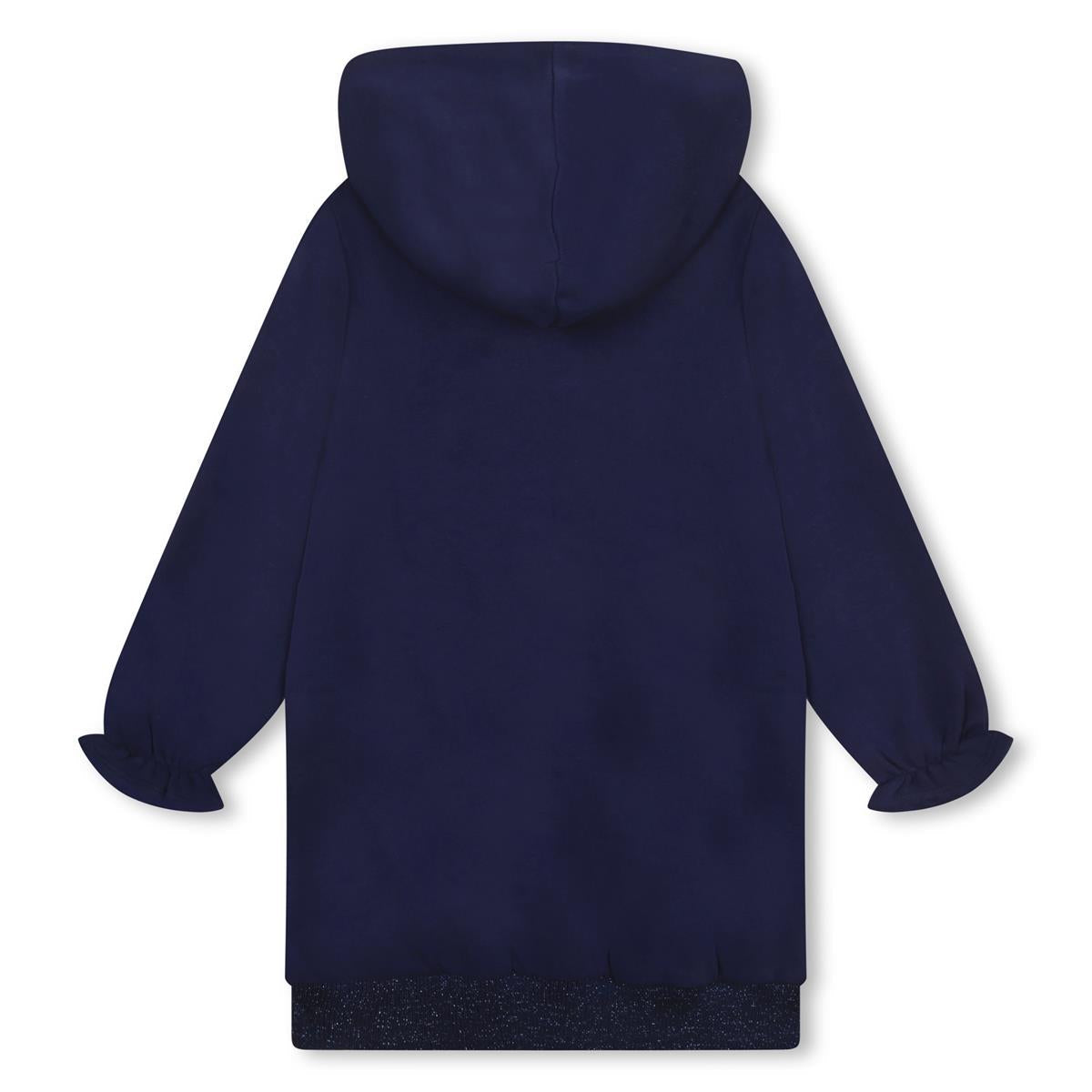 女童蓝色印花连帽连衣裙