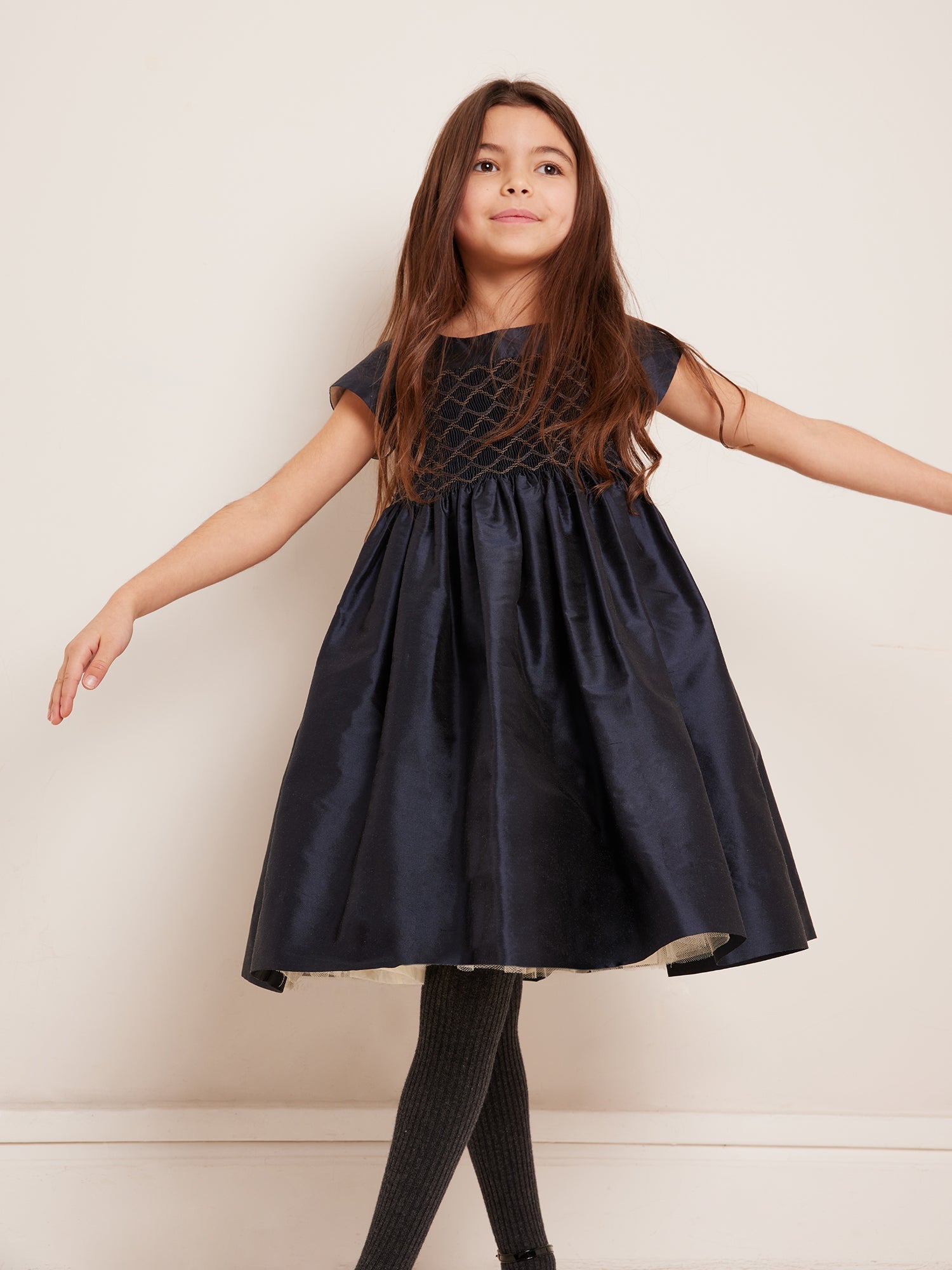 女童藏青色真丝连衣裙