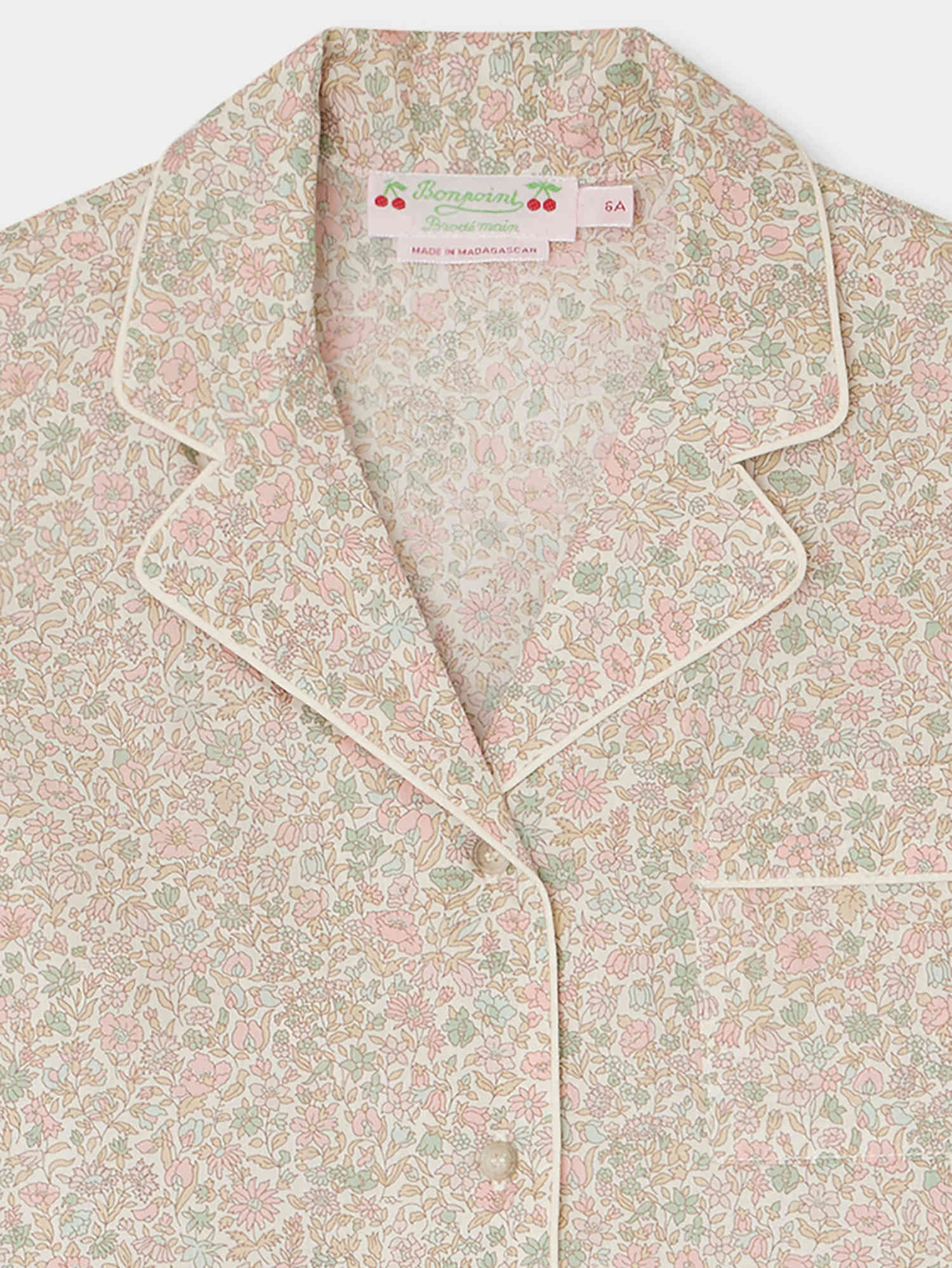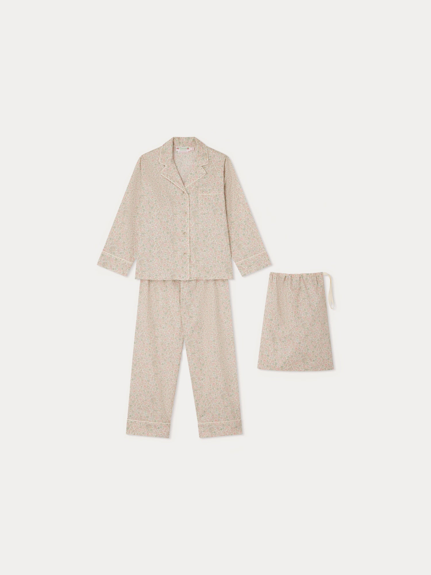 女童浅粉色碎花棉睡衣套装