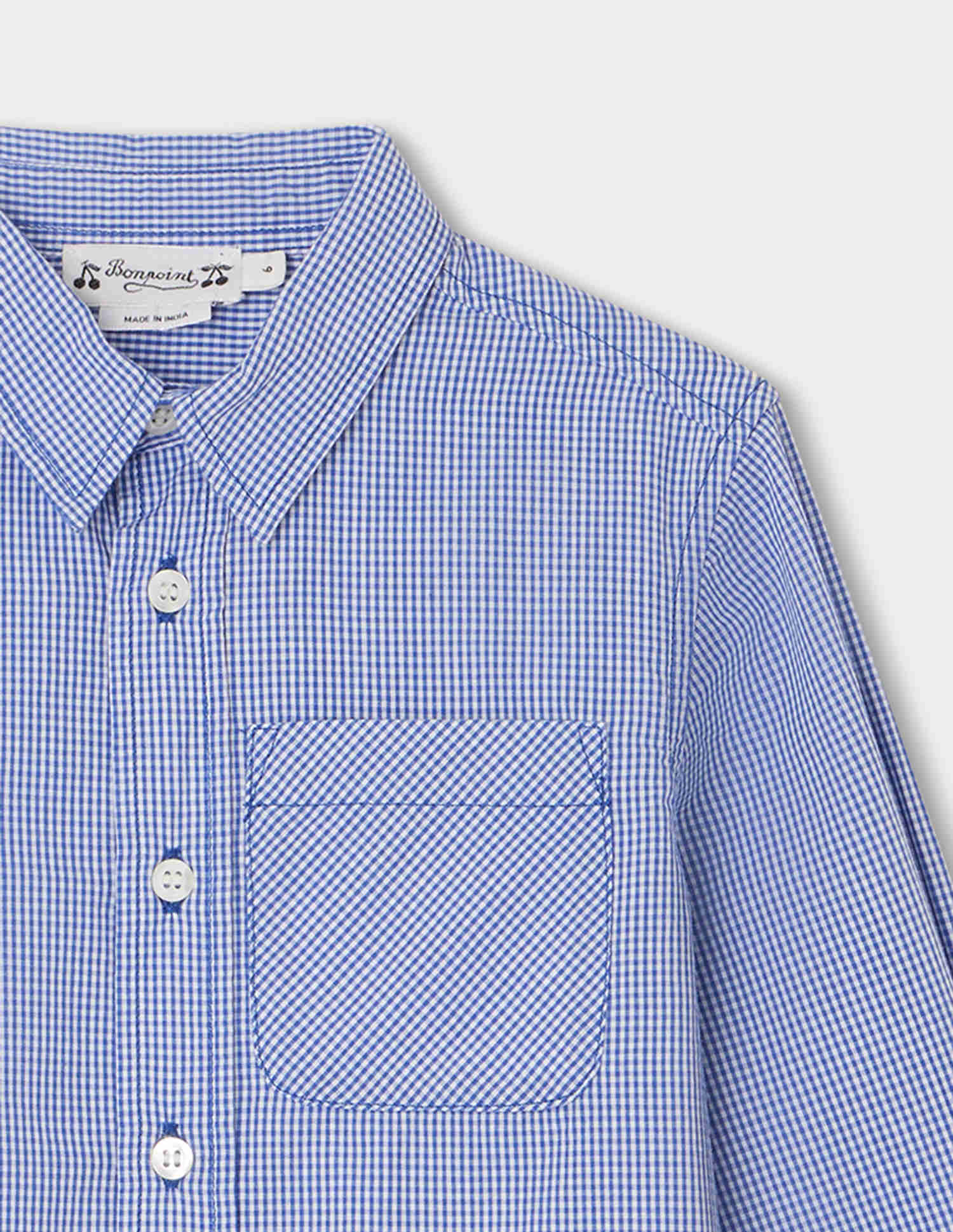 男童蓝色格子棉衬衫