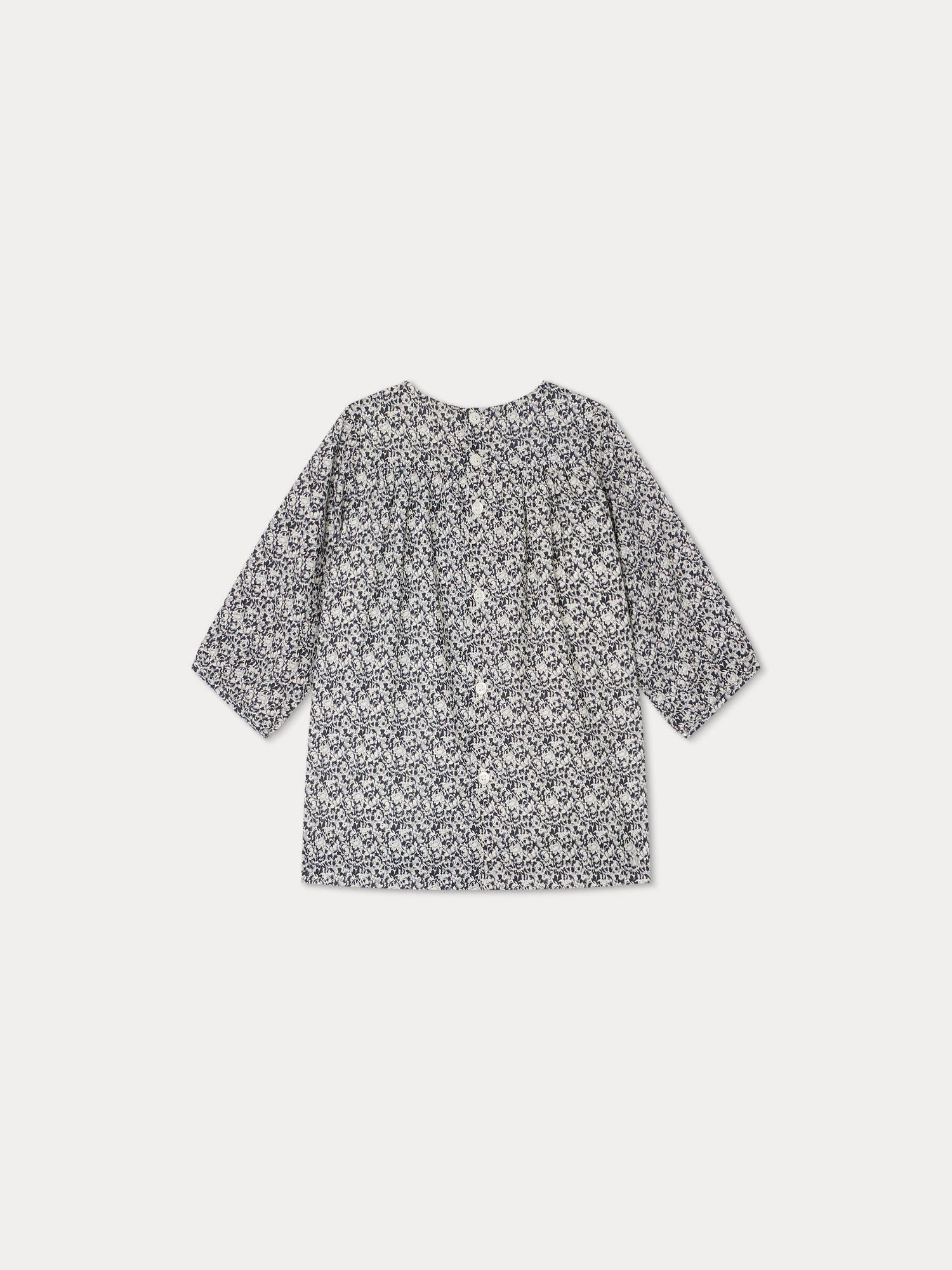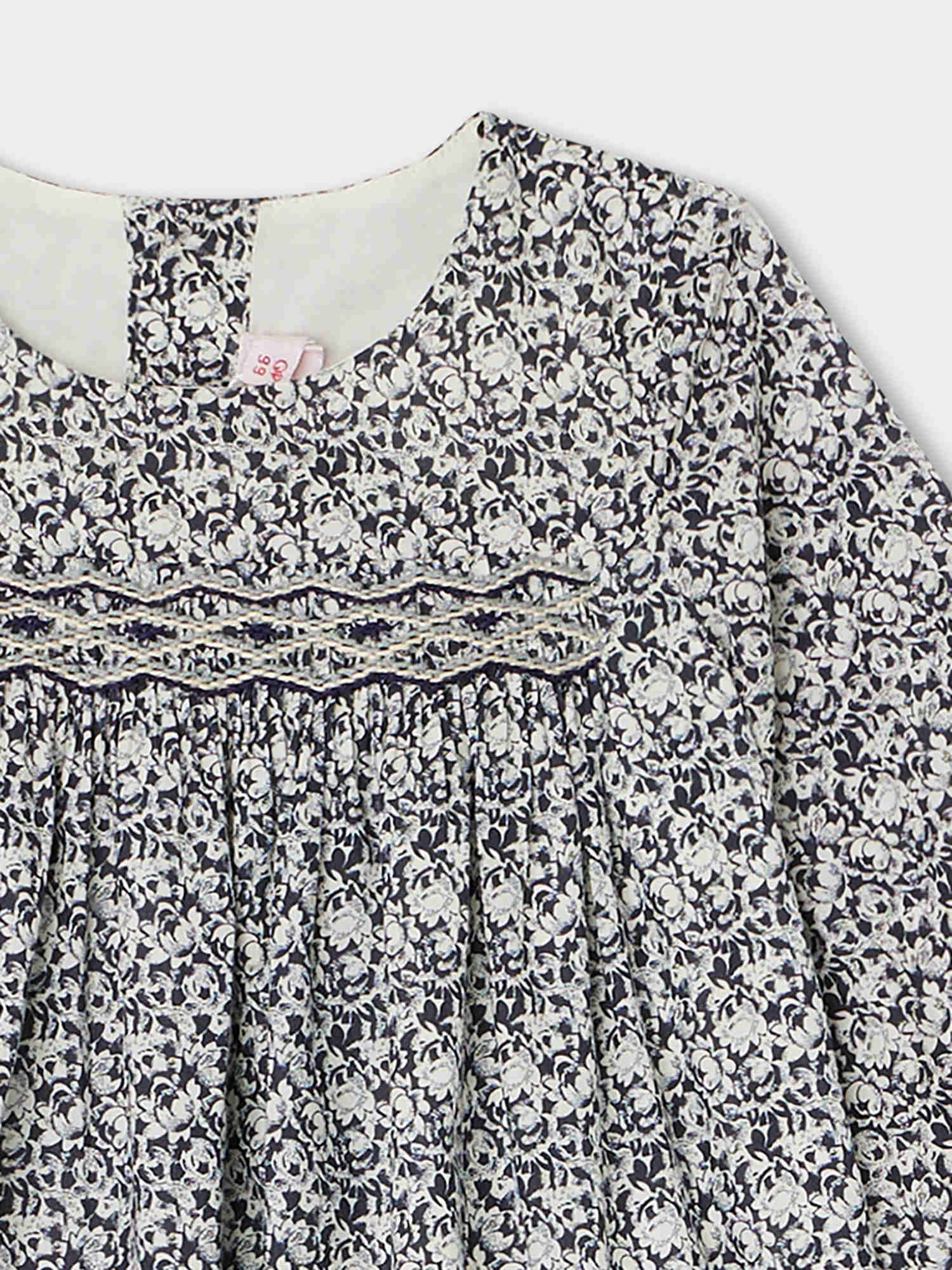 女婴藏青色碎花棉连衣裙