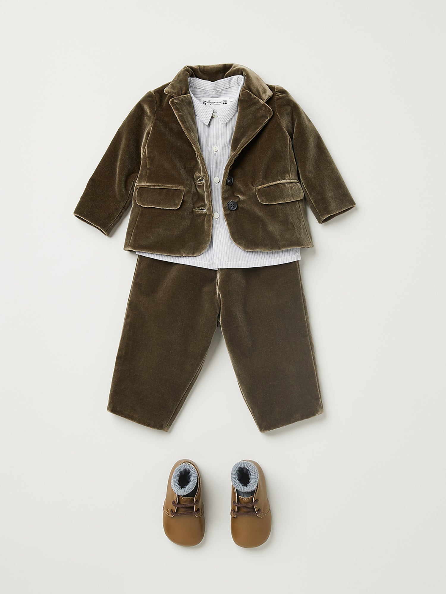 男婴灰褐色丝绒外套