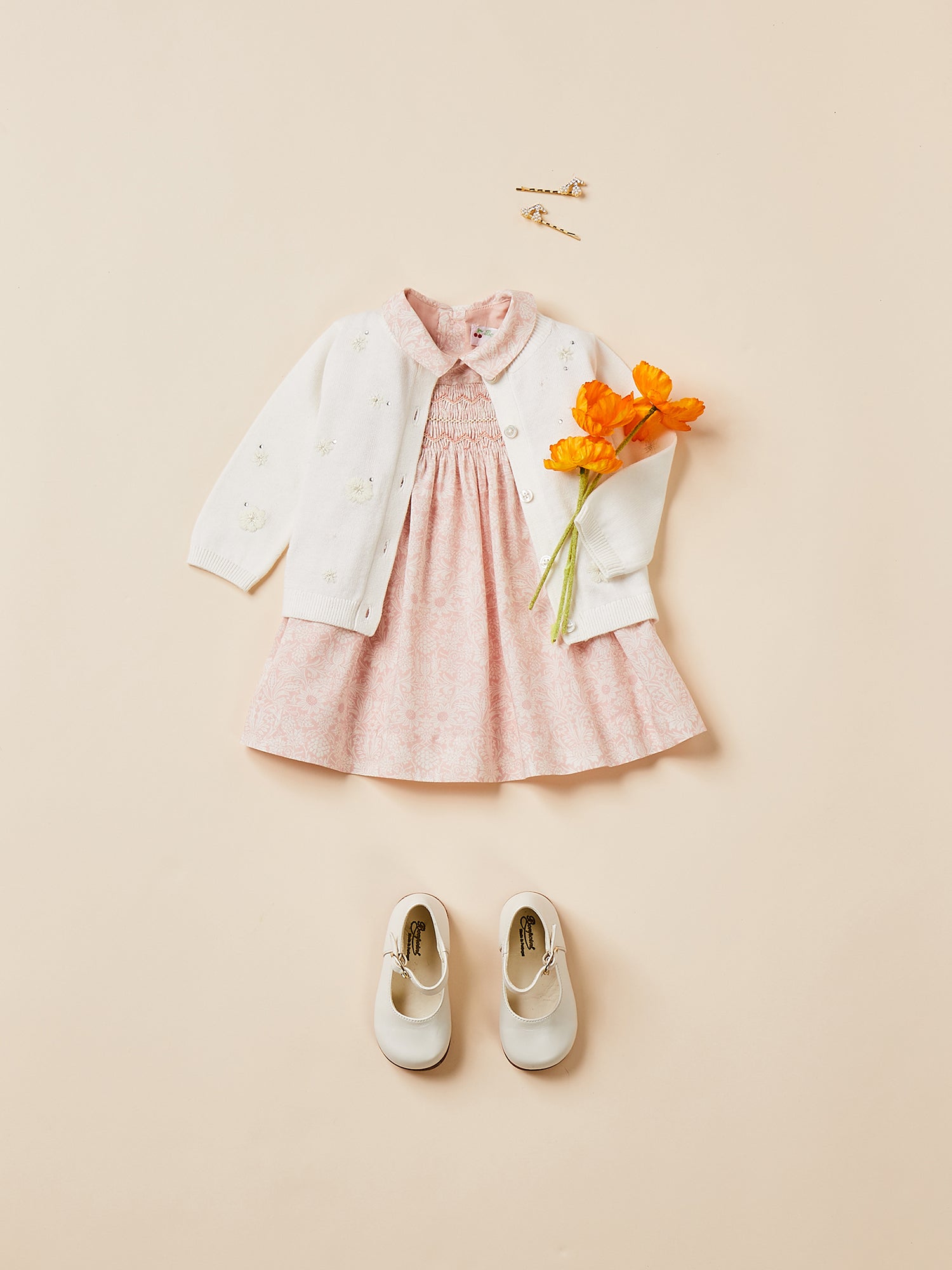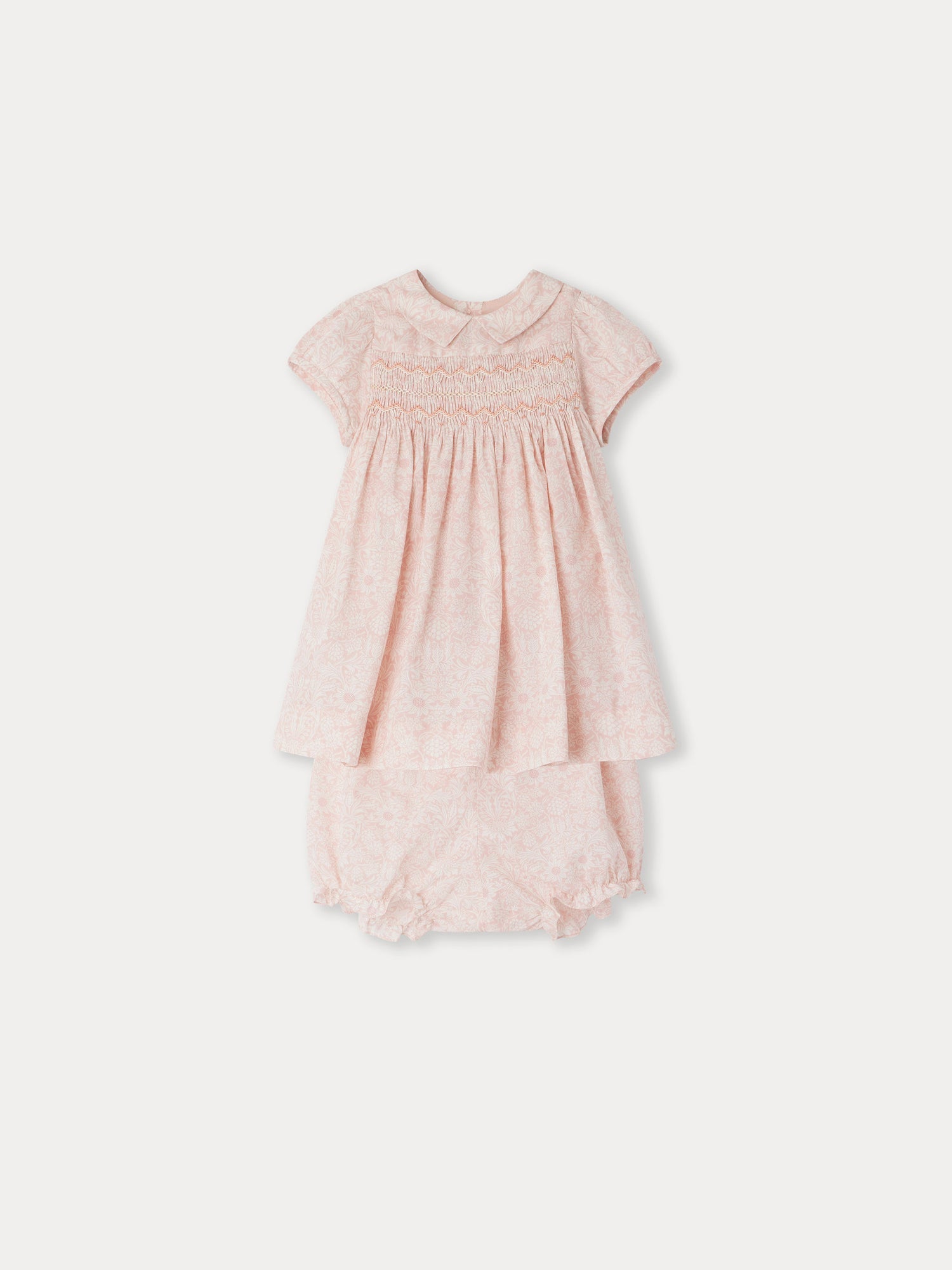 女婴粉色碎花棉连衣裙套装
