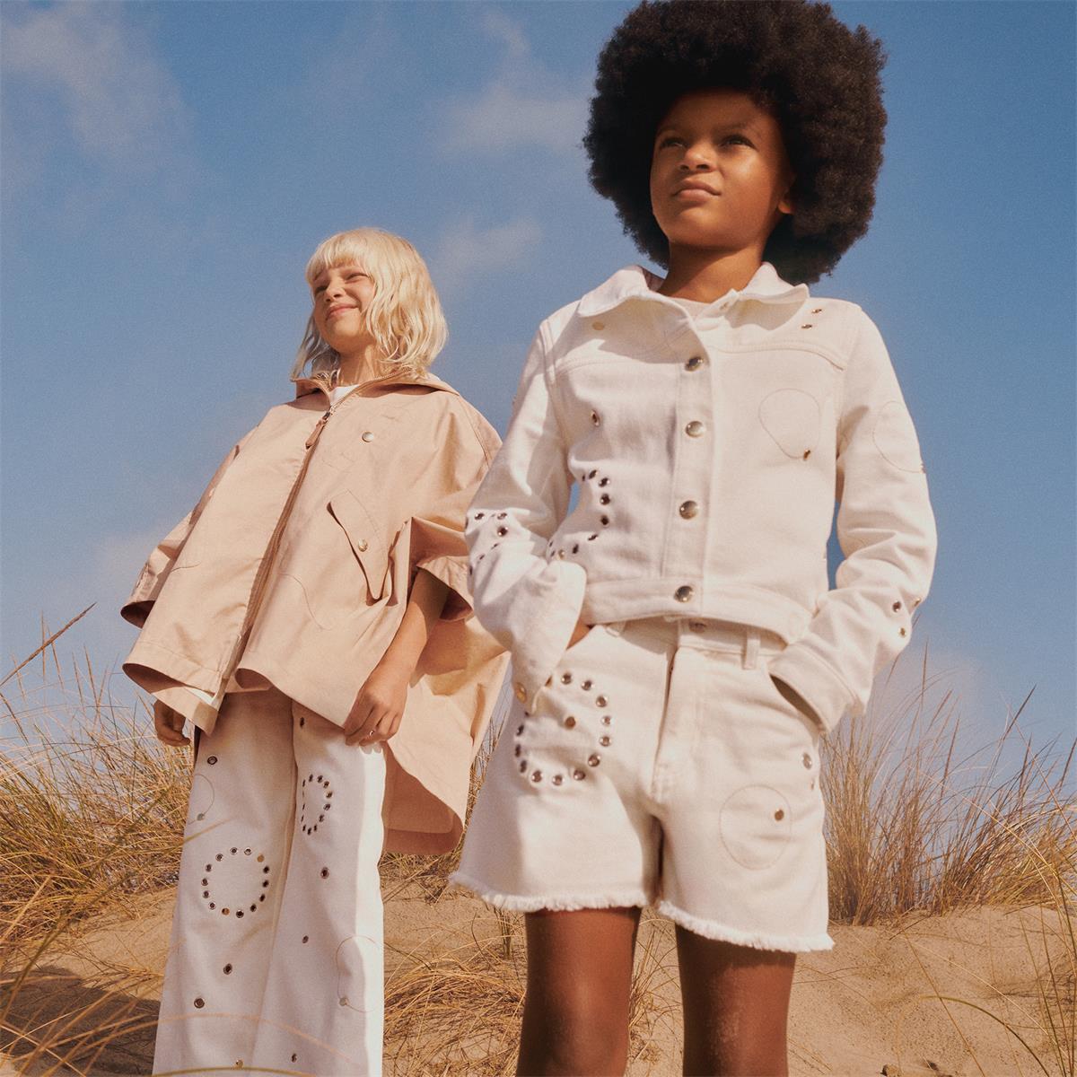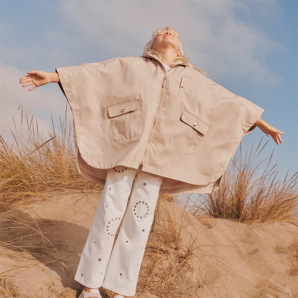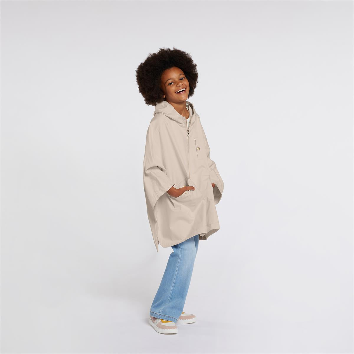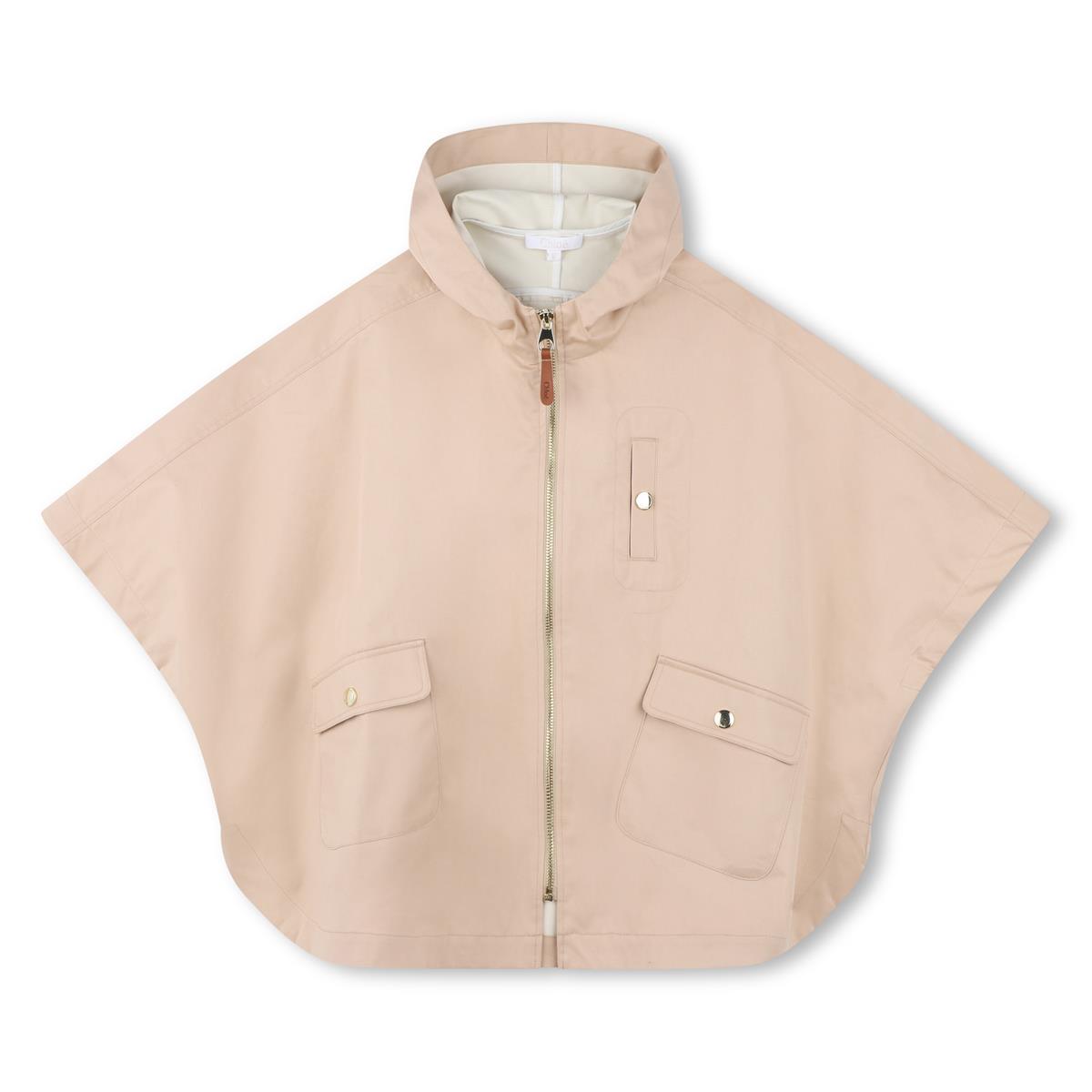 女童米色拉链斗篷