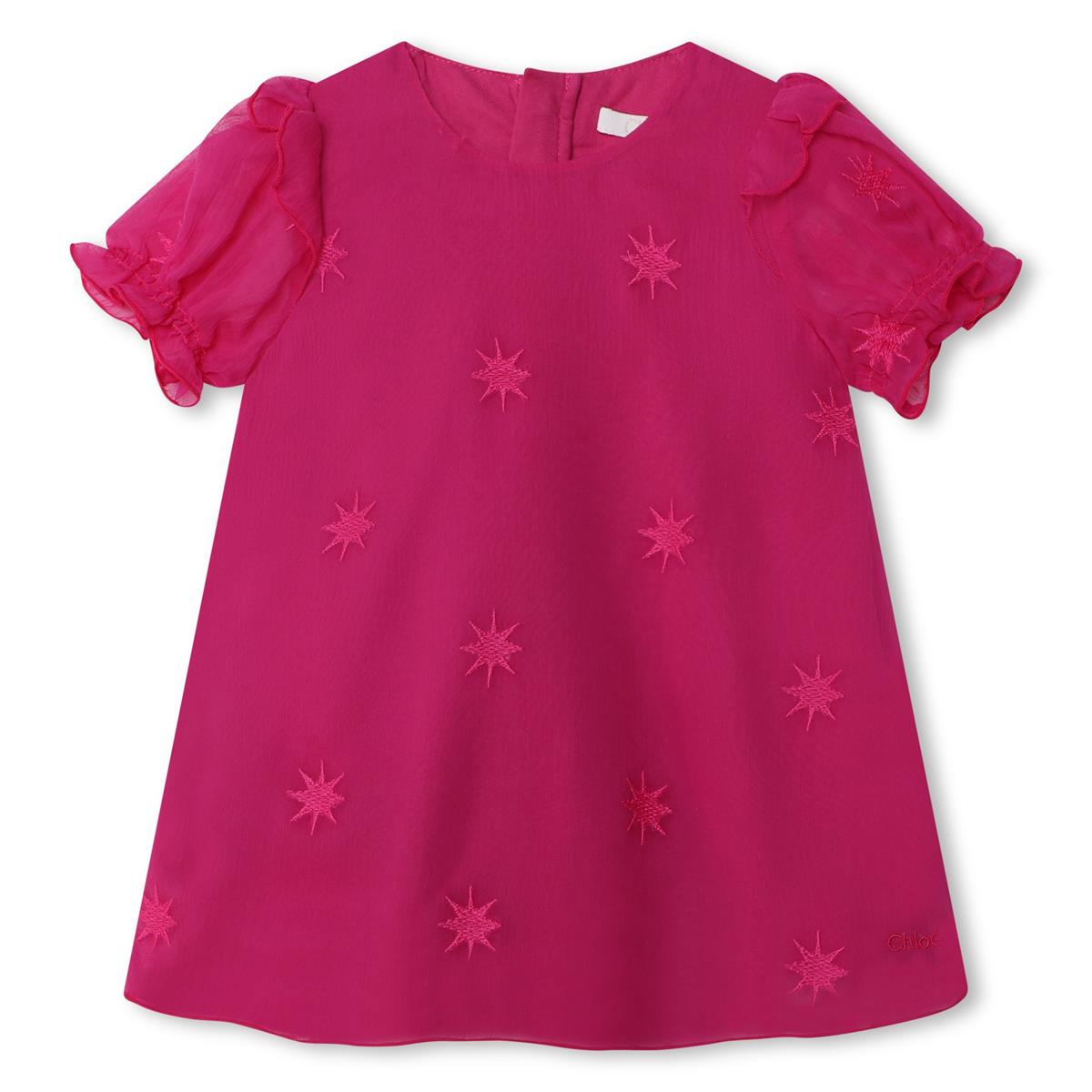 女婴玫红色刺绣连衣裙