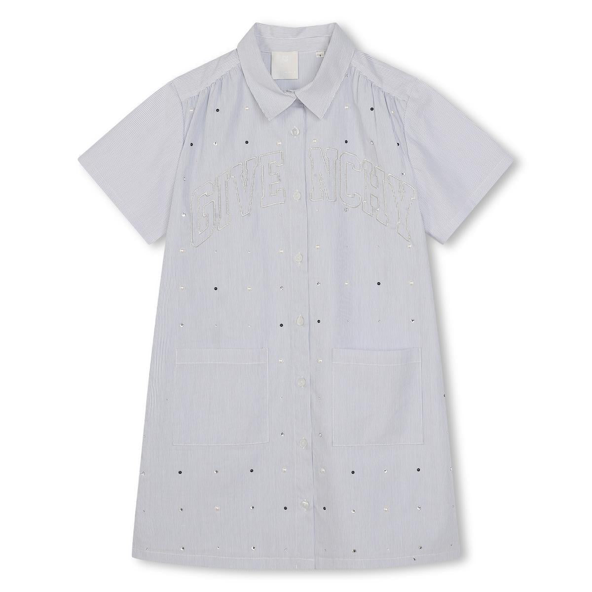 女童蓝色条纹棉连衣裙