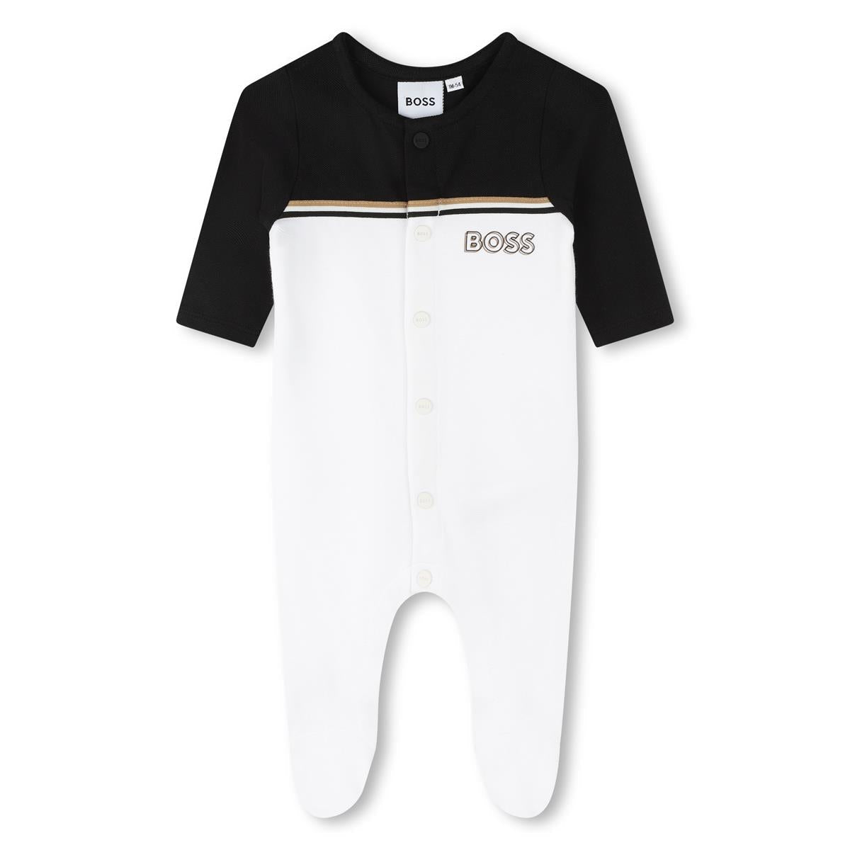 男婴白色棉连体衣套装