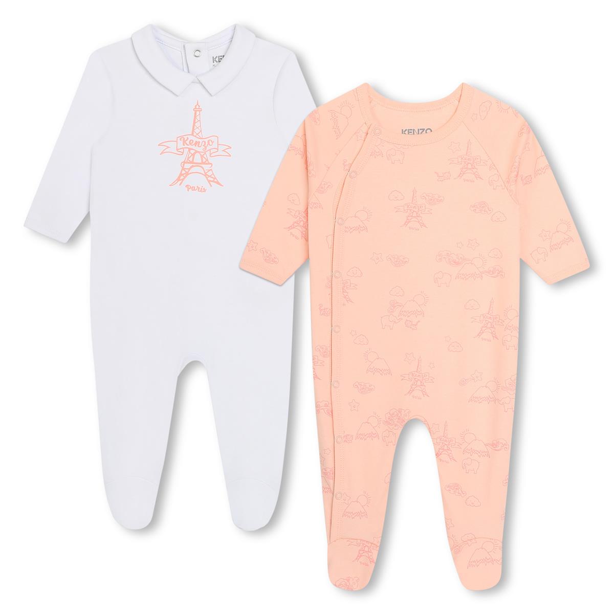 女婴粉色棉连体衣套装(2件)