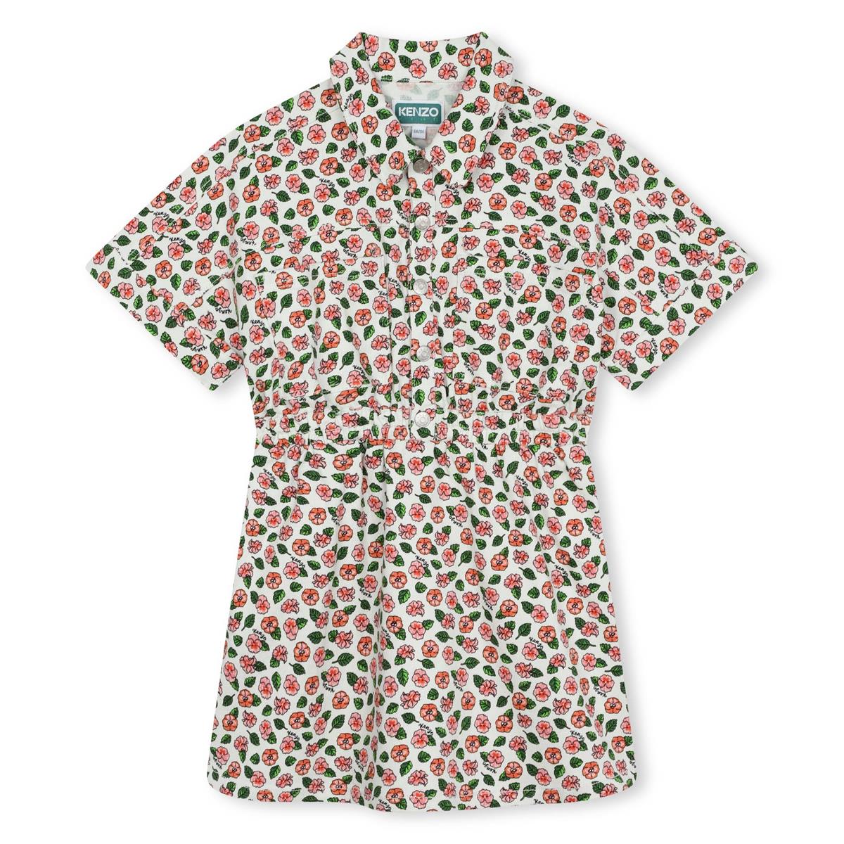 女童白色花朵棉连衣裙