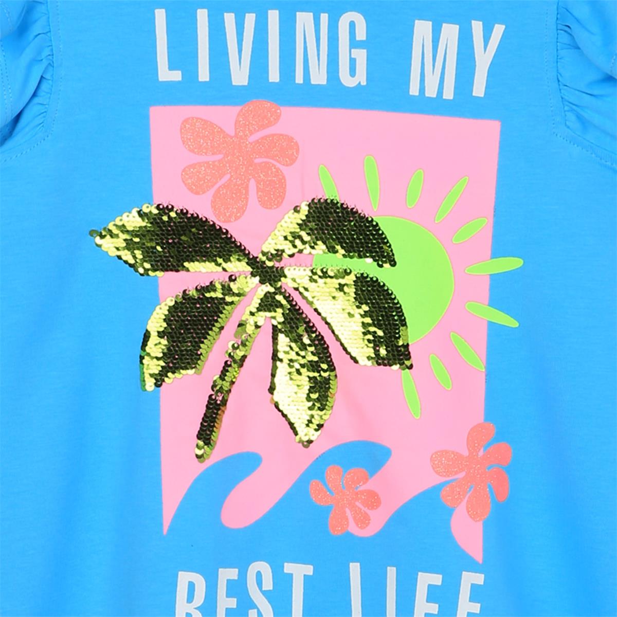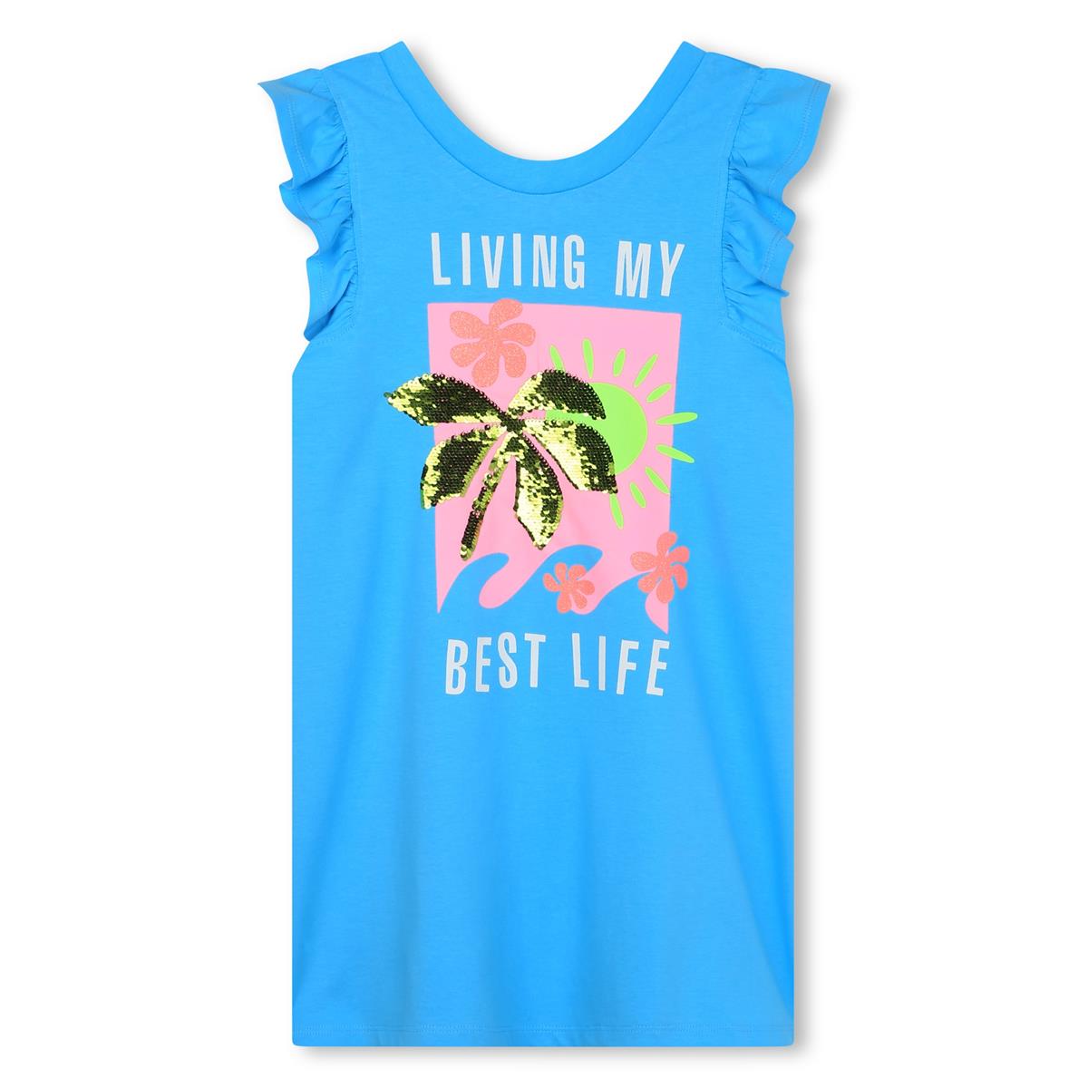 女童蓝色印花棉连衣裙