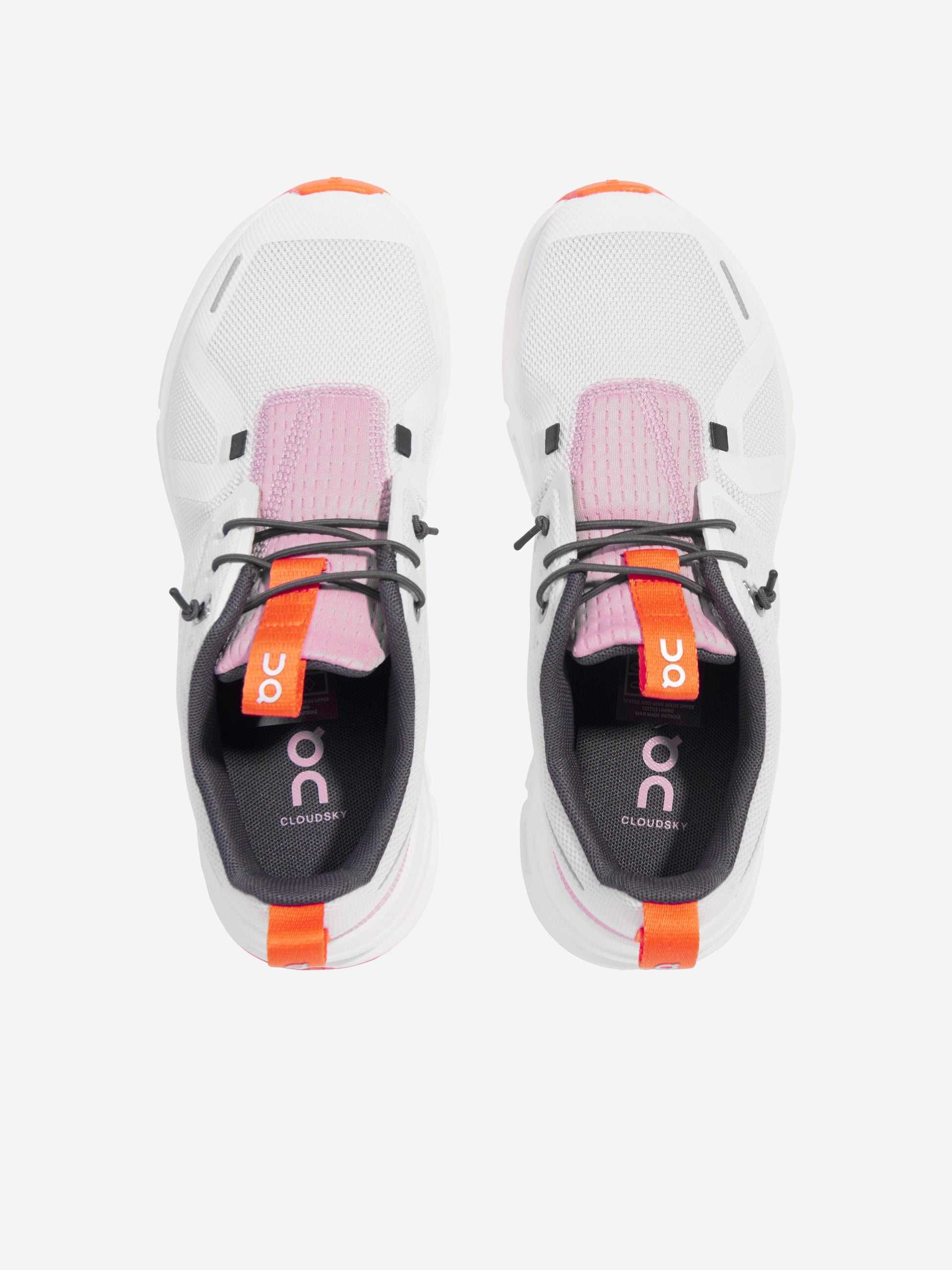 揭开 On Running 推出的奢华女孩白色 Cloud Sky 运动鞋的面纱。这款引人注目的鞋履是魅力、舒适和时尚的完美结合,适合任何场合。主要特点包括: