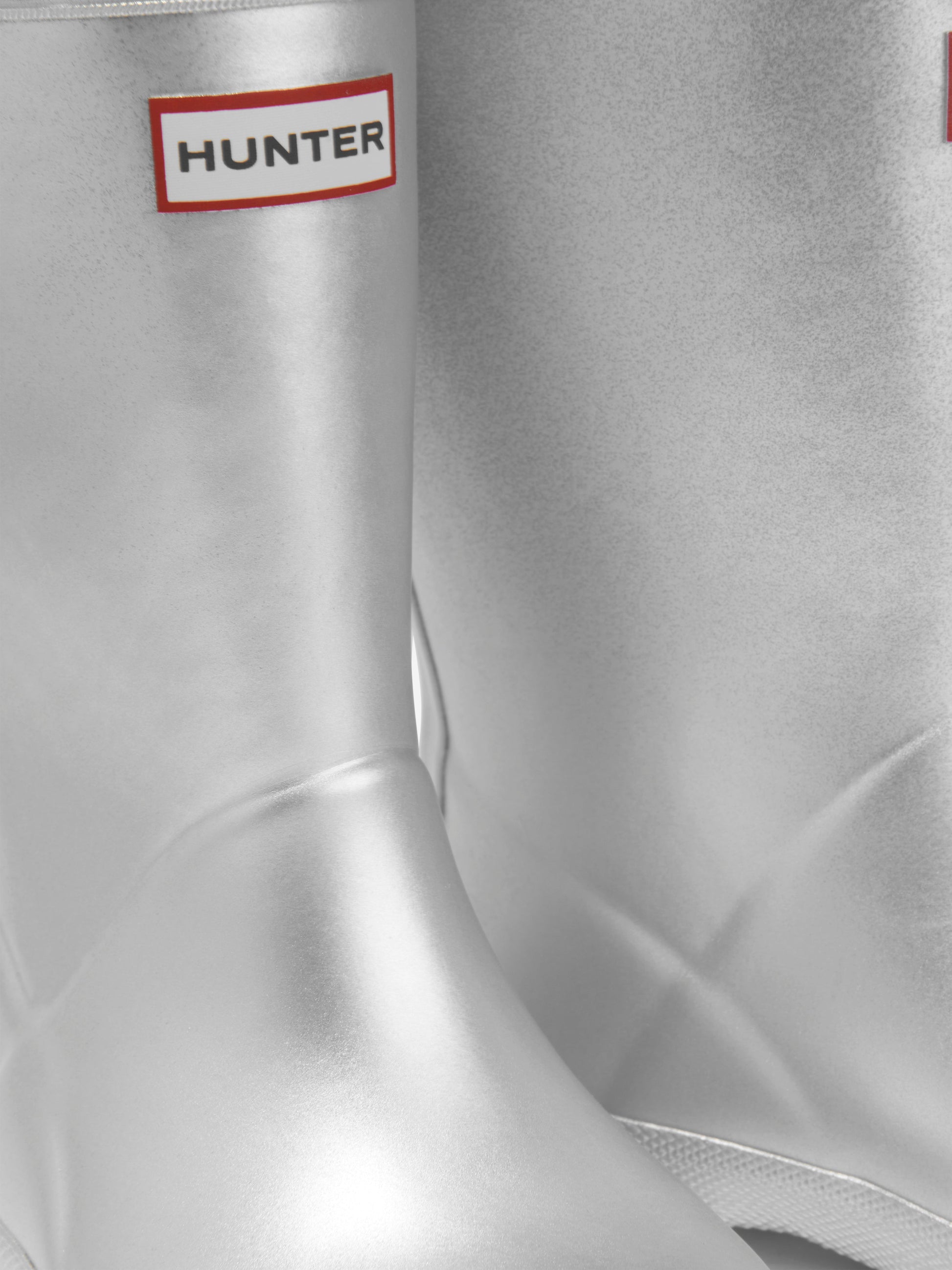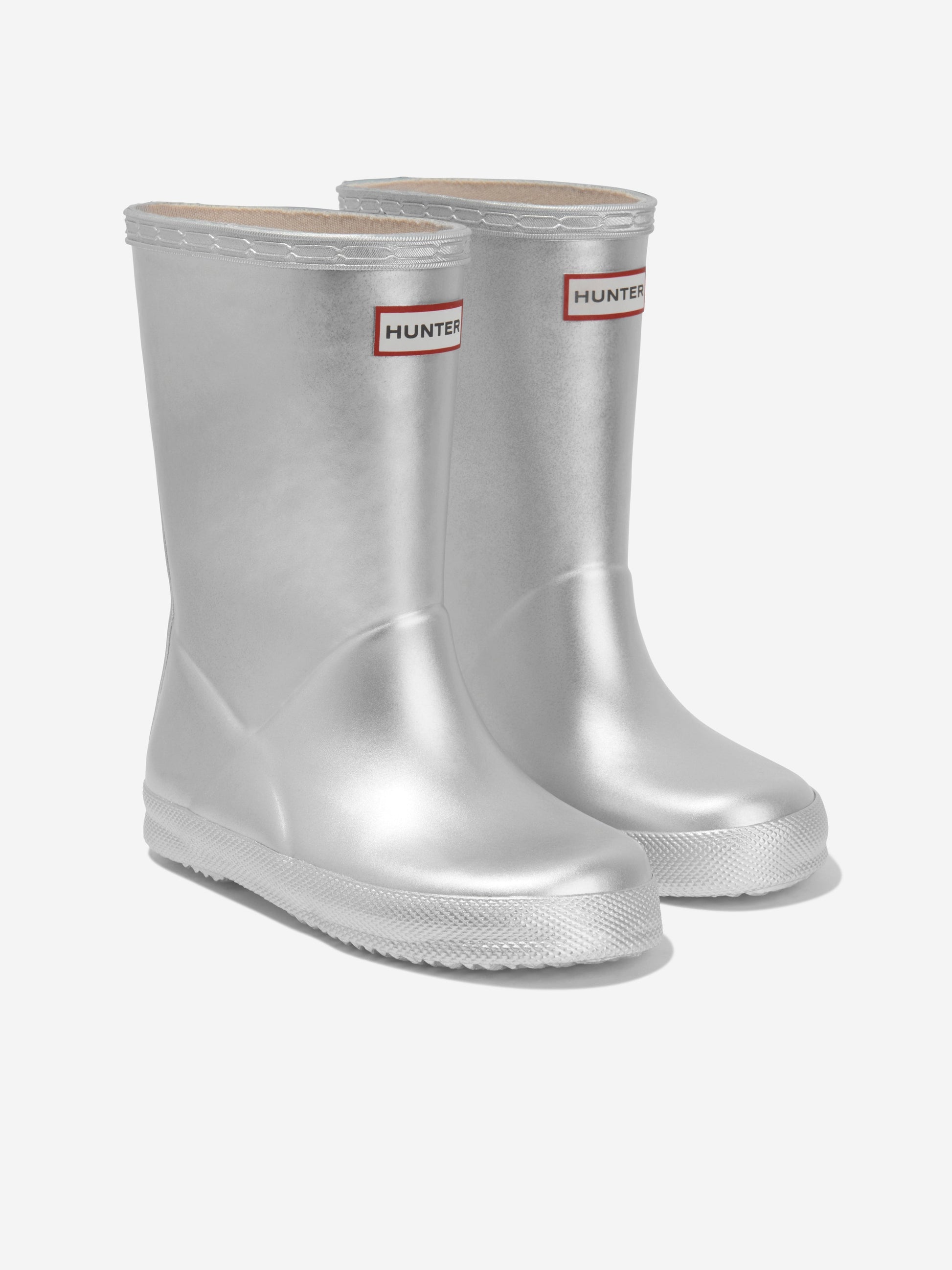 用这款银色 Hunter Wellington 靴改变您女孩的服装系列。让您的小宝贝每一步都更加耀眼夺目!