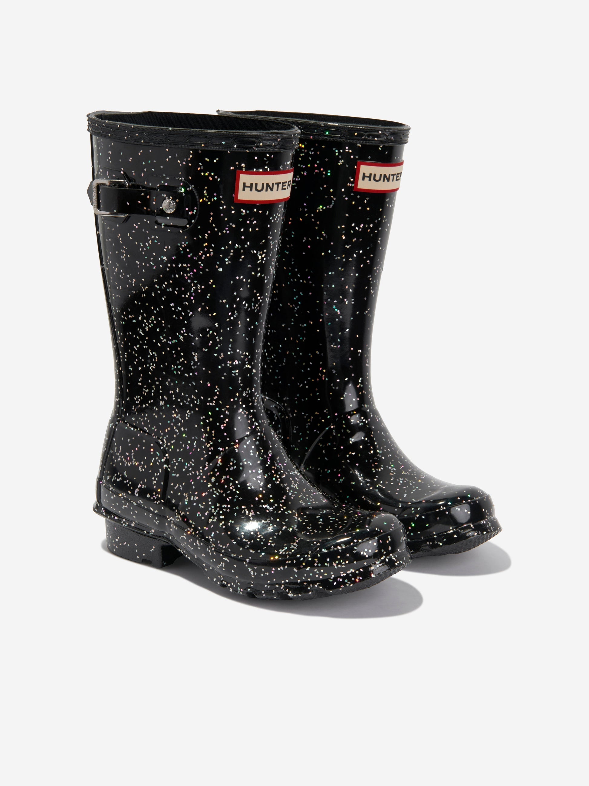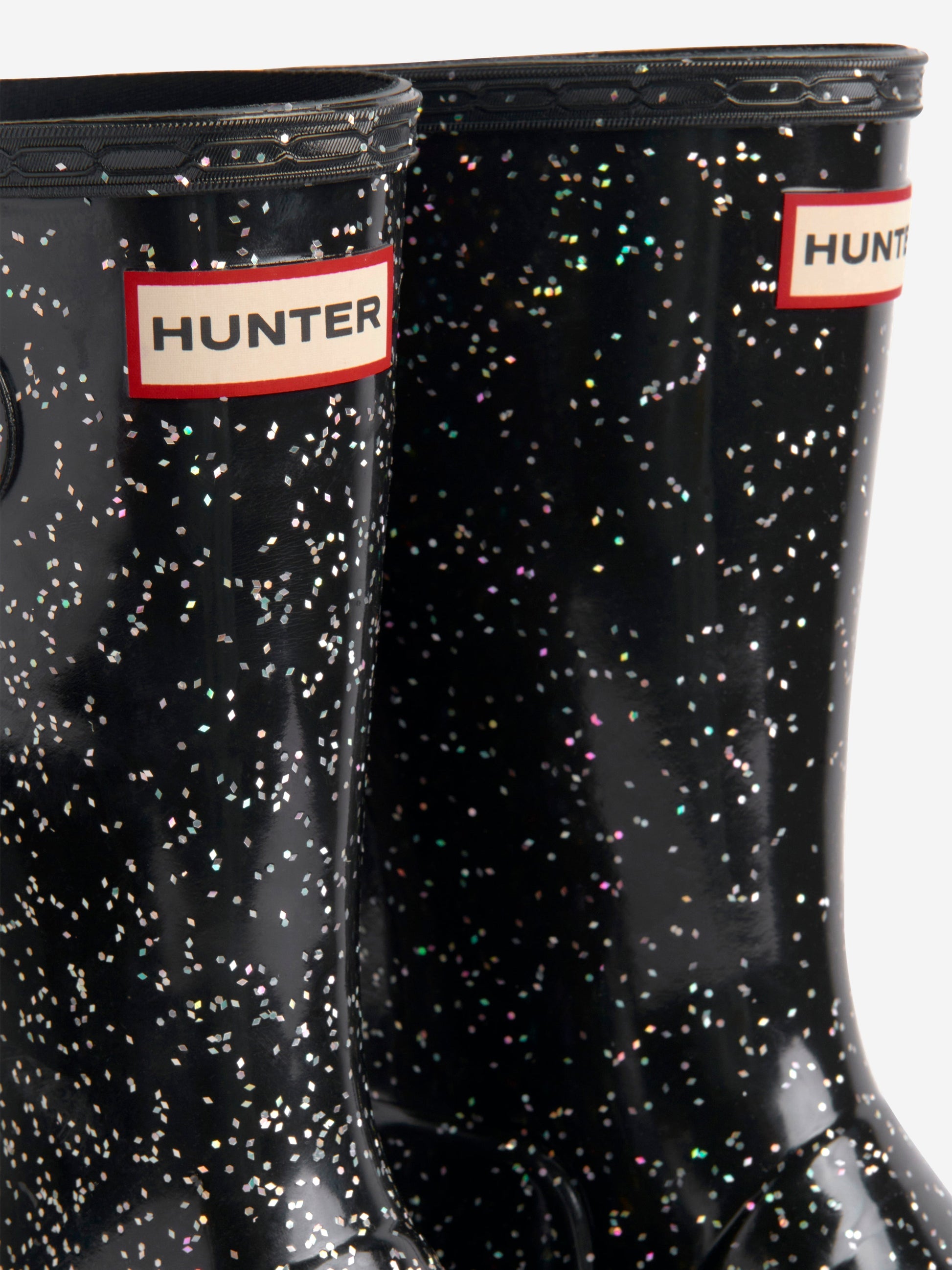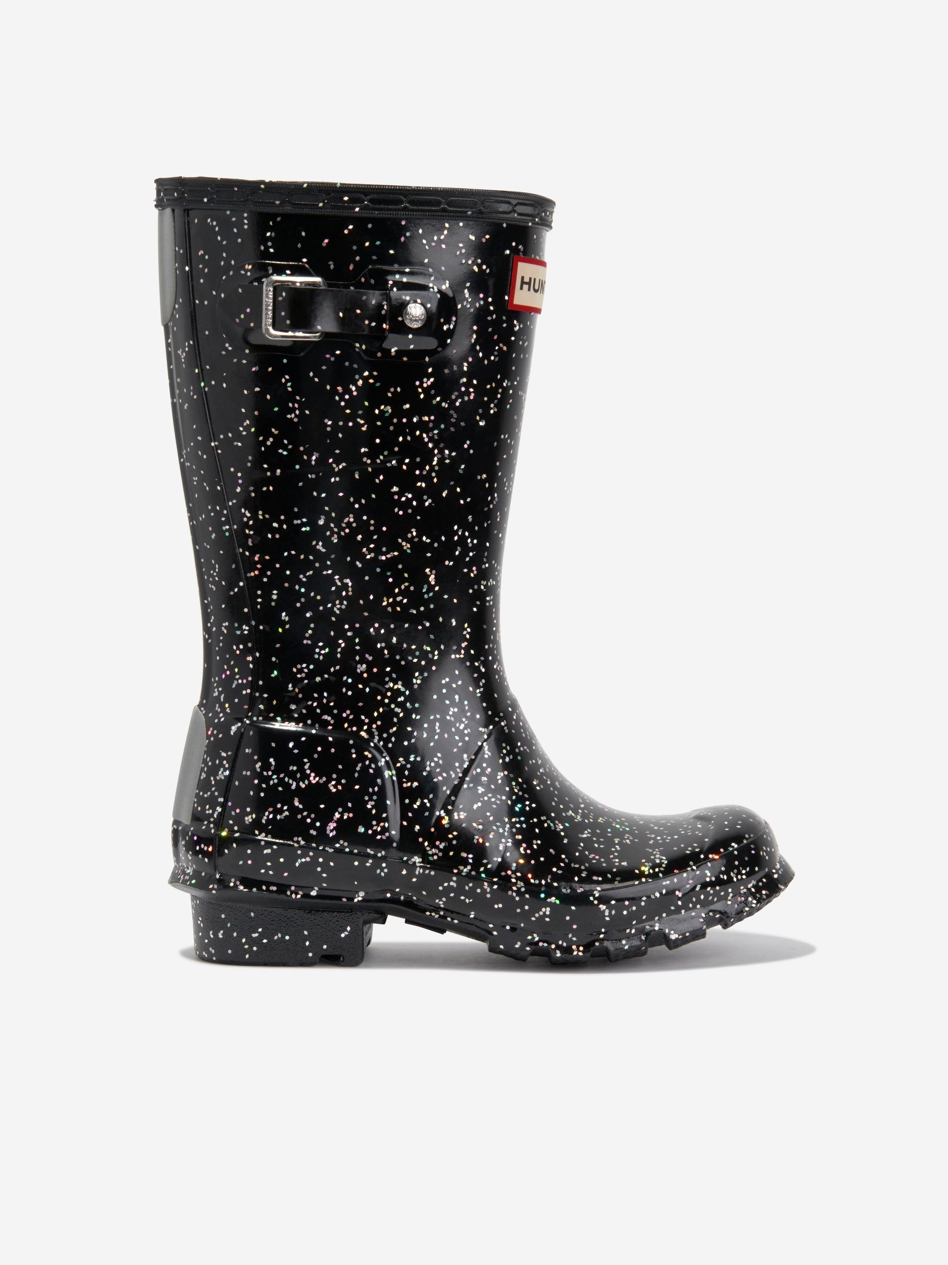 推出 Hunter’s Kids Original 巨型闪光威灵根靴(黑色)——为您孩子的衣柜增添奢华元素!尽情享受主要特点: