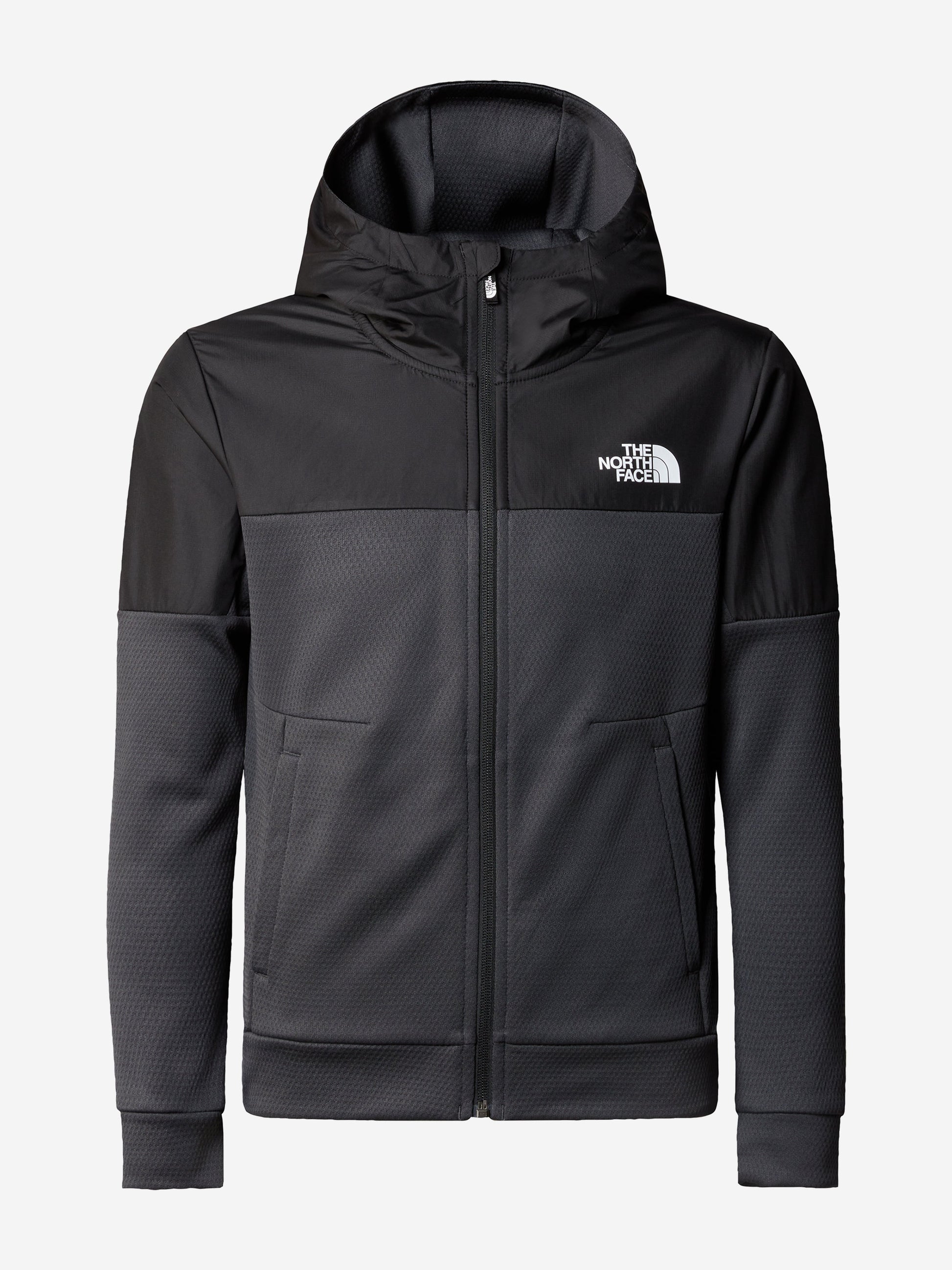 隆重推出 The North Face 推出的黑色男童 Mountain Athletics 全拉链连帽衫 - 融合了时尚、舒适和功能性,专为运动而设计。主要特点包括: