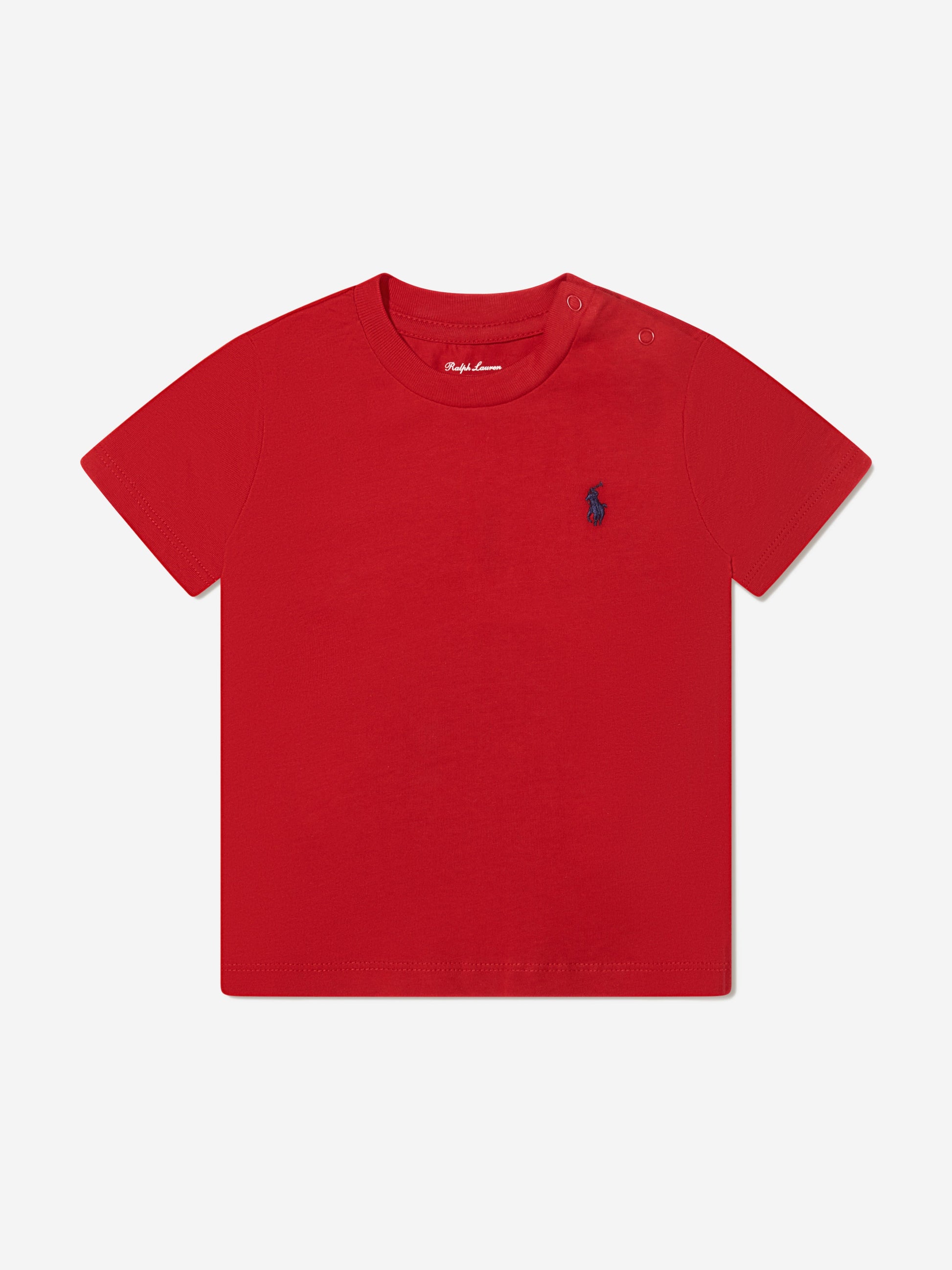 隆重推出 Ralph Lauren 男婴球衣徽标 T 恤,鲜艳的红色 - 为您的男婴服装带来迷人的时尚与舒适感。主要特点包括: