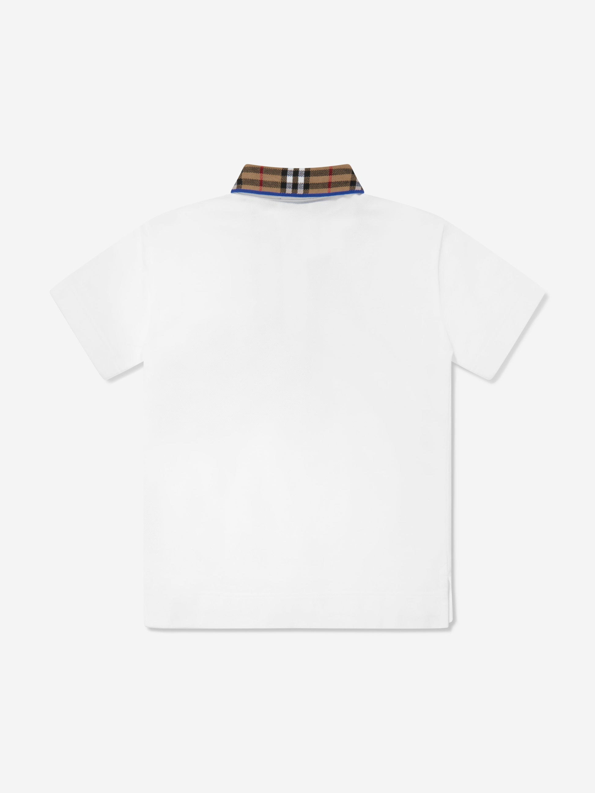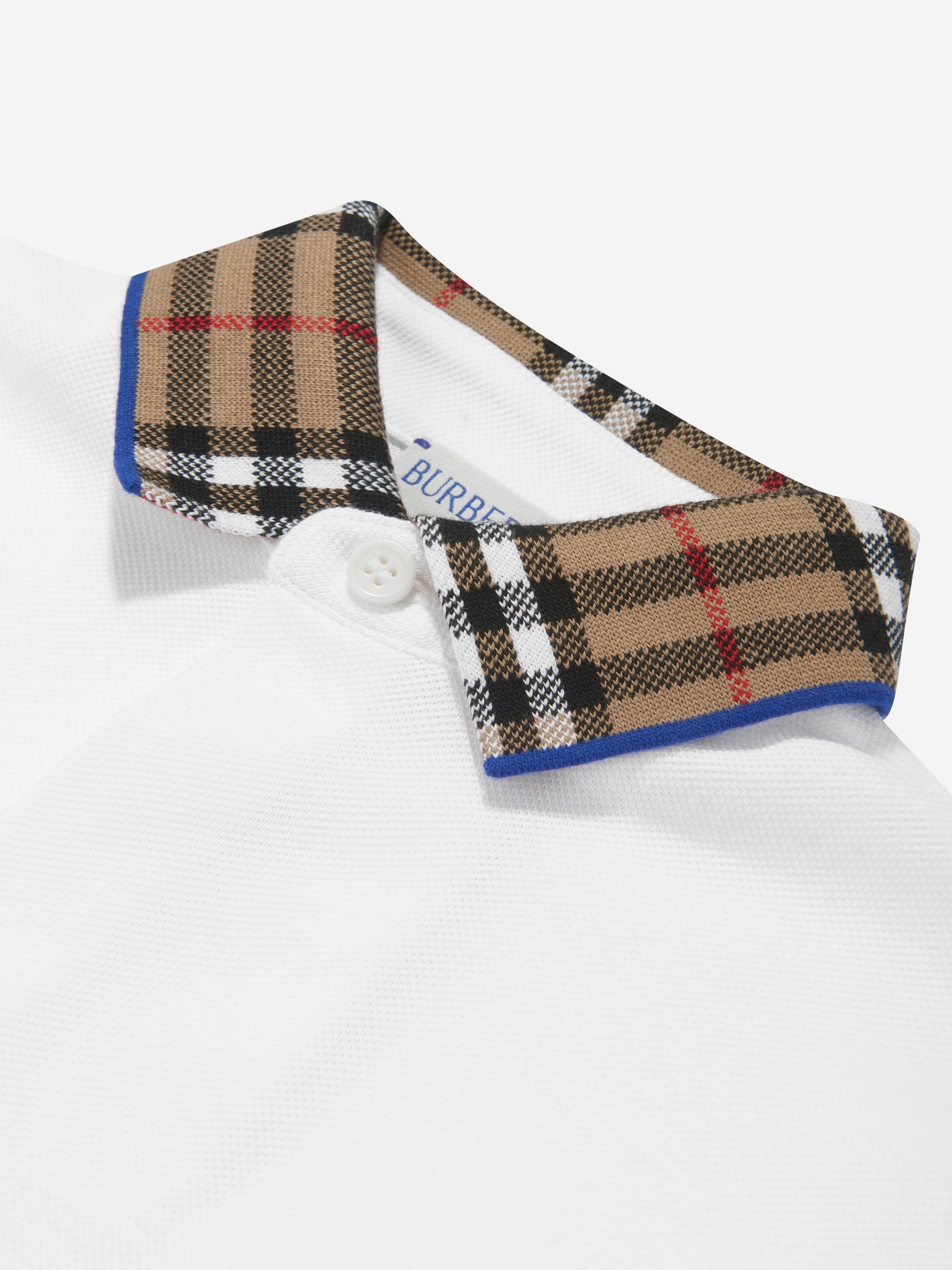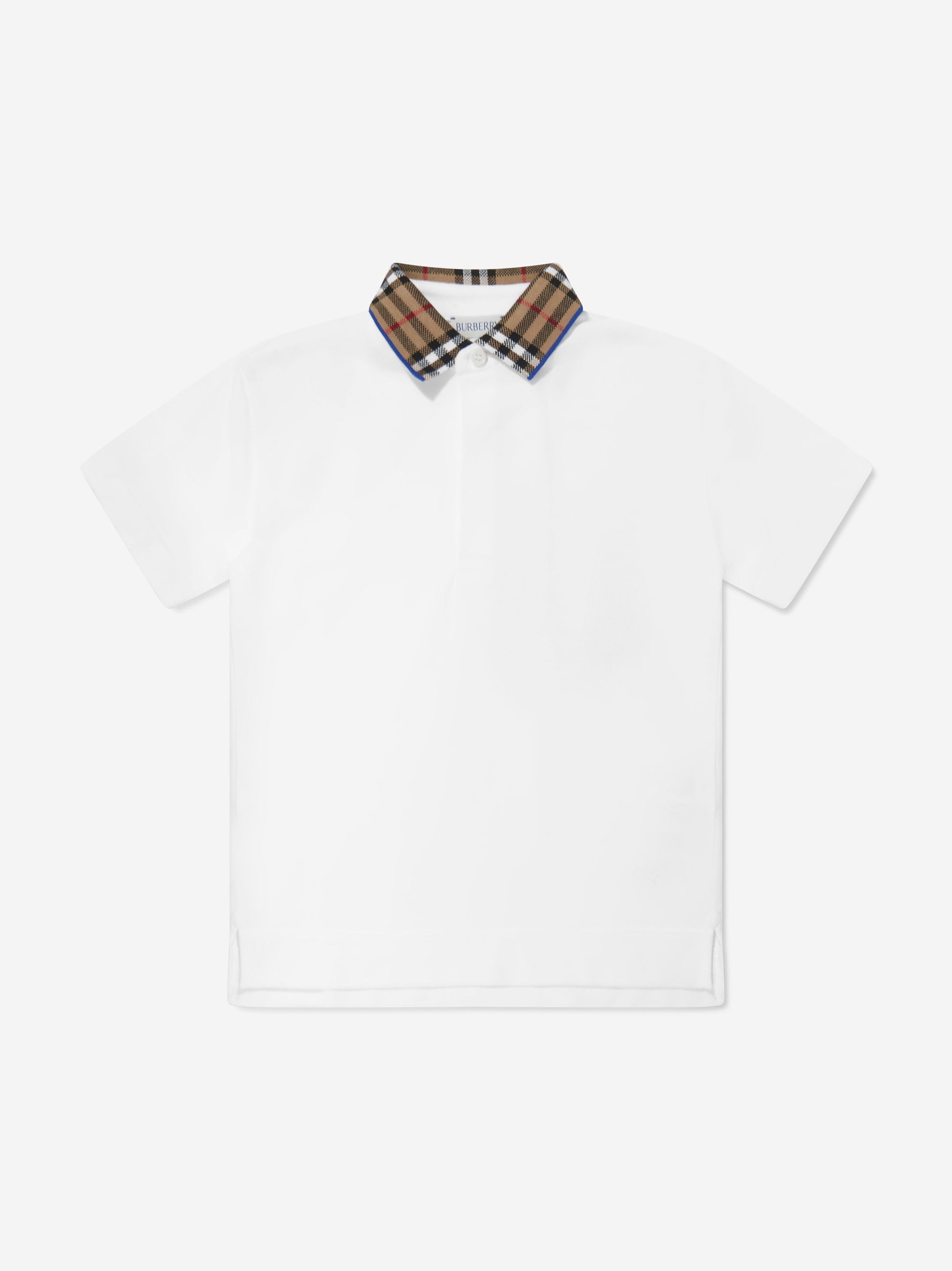 Burberry 以其精美的美学设计构想了英国陈词滥调。这款男孩 Johane 白色 Polo 衫体现了 Daniel Lee 的新创意构想。采用有机棉和三粒扣开襟设计,罗纹领口采用典藏米色格纹和骑士尖头,并绣有 EKD。他看起来和感觉都很棒。