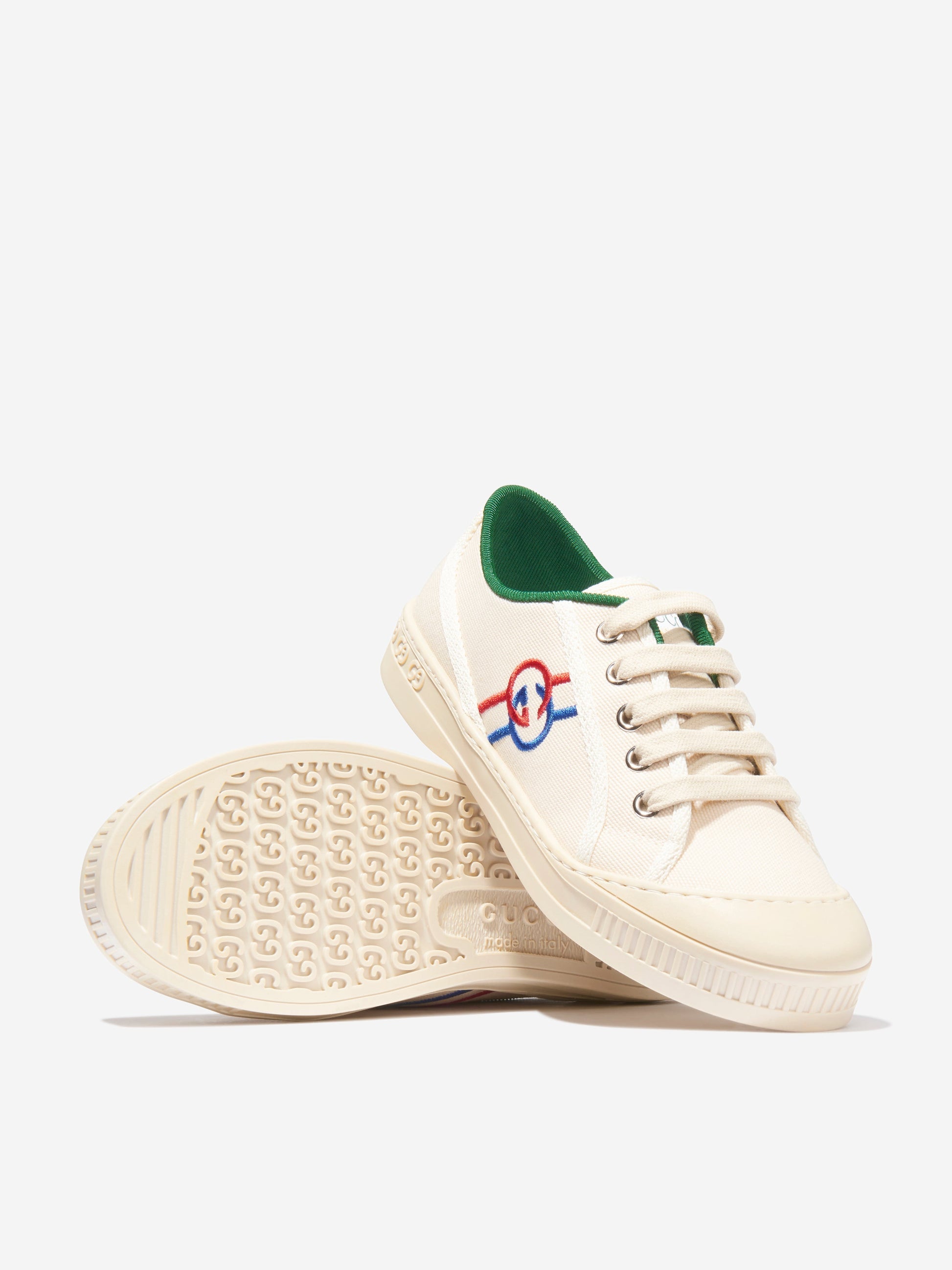 • 提升他们的风格!我们的儿童 GG 网球训练鞋(白色)是让您孩子的中性衣柜焕然一新的活力单品。今天就拥抱 Gucci 的华丽吧!
