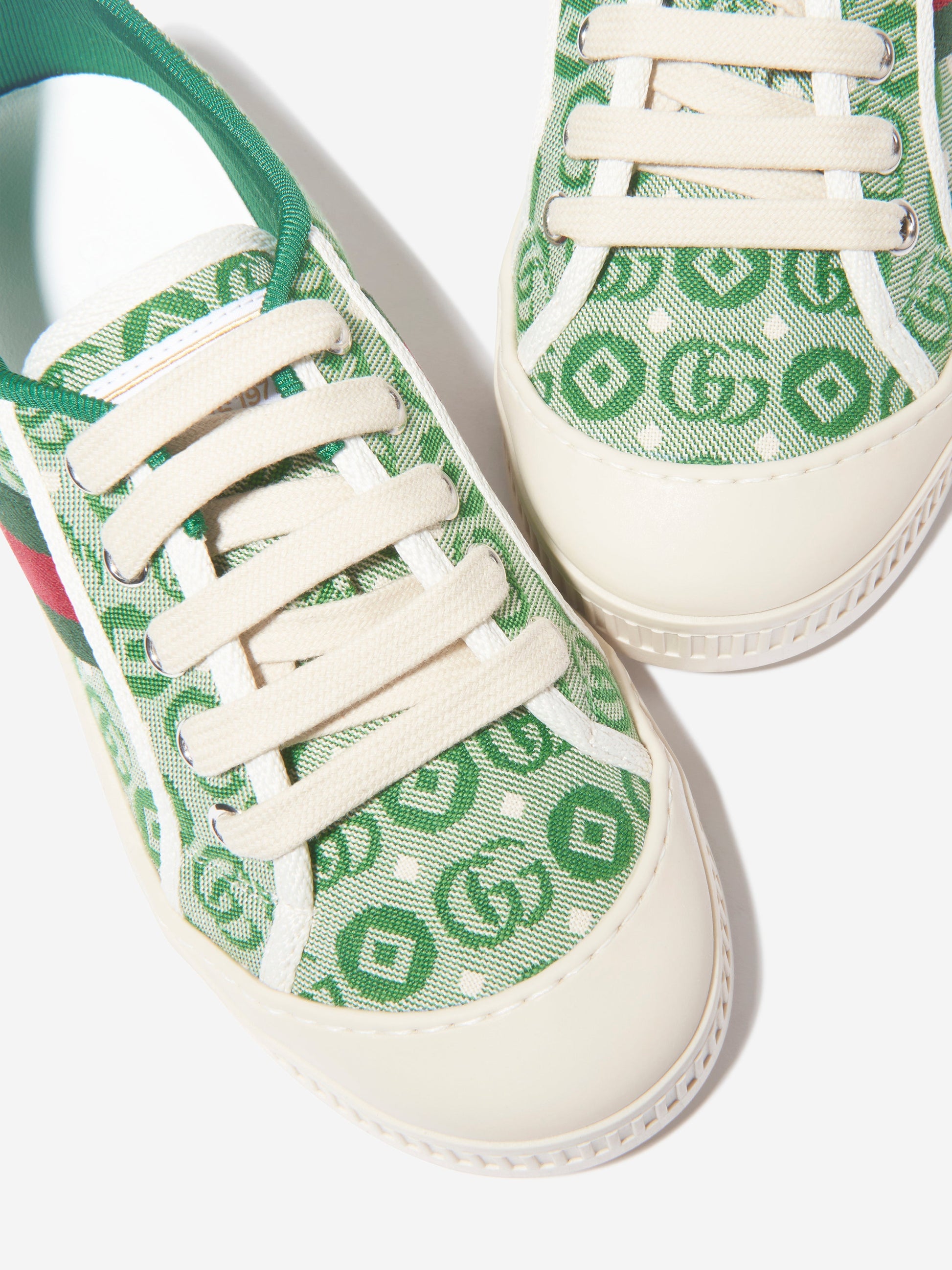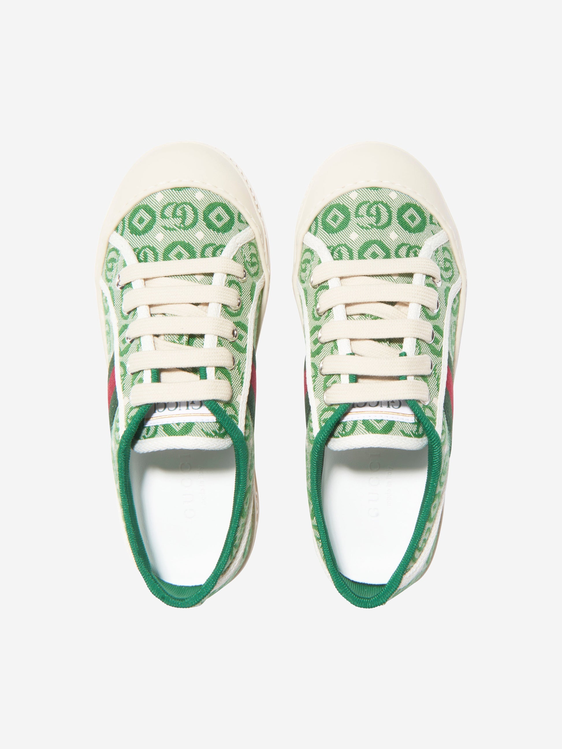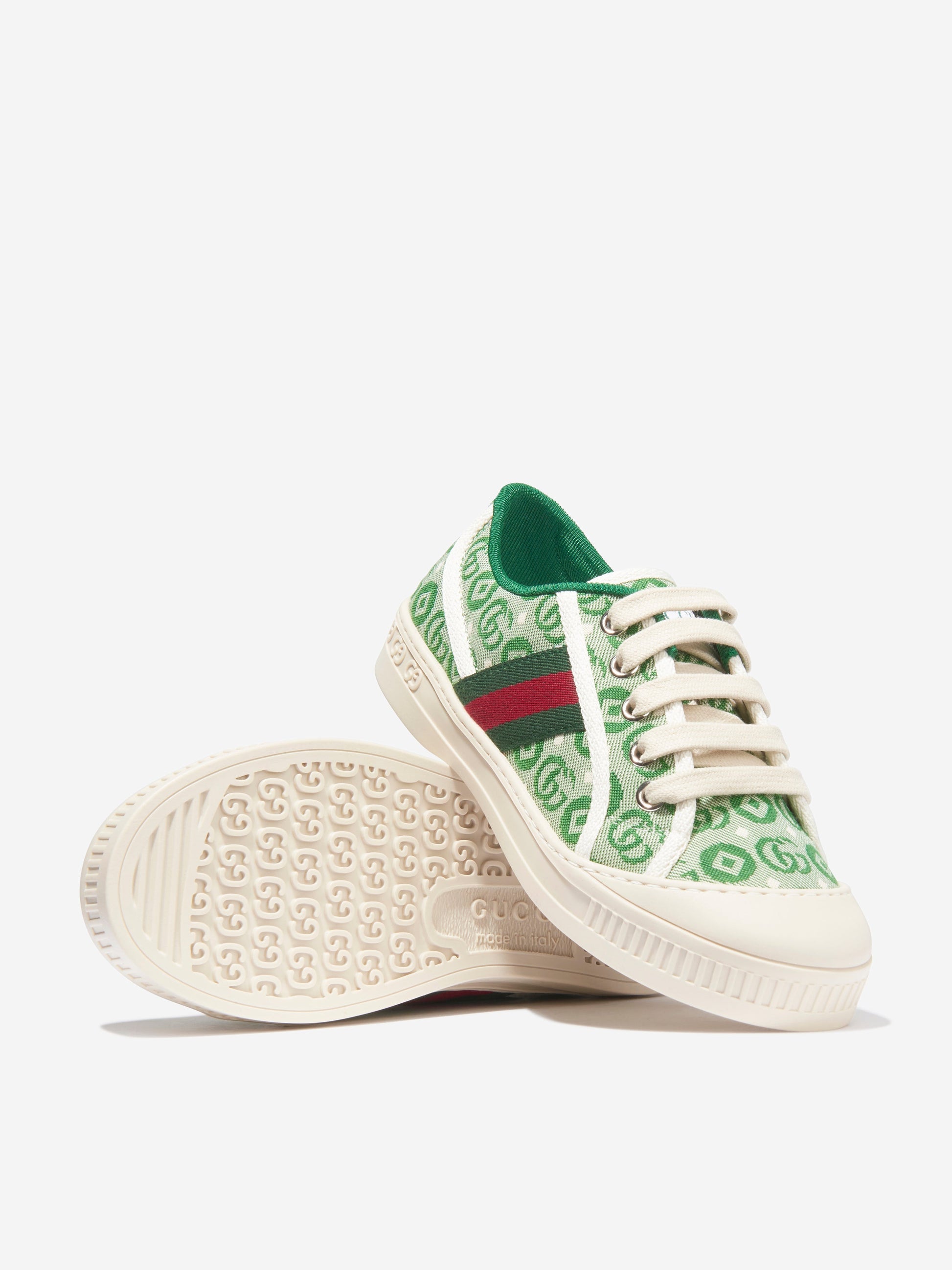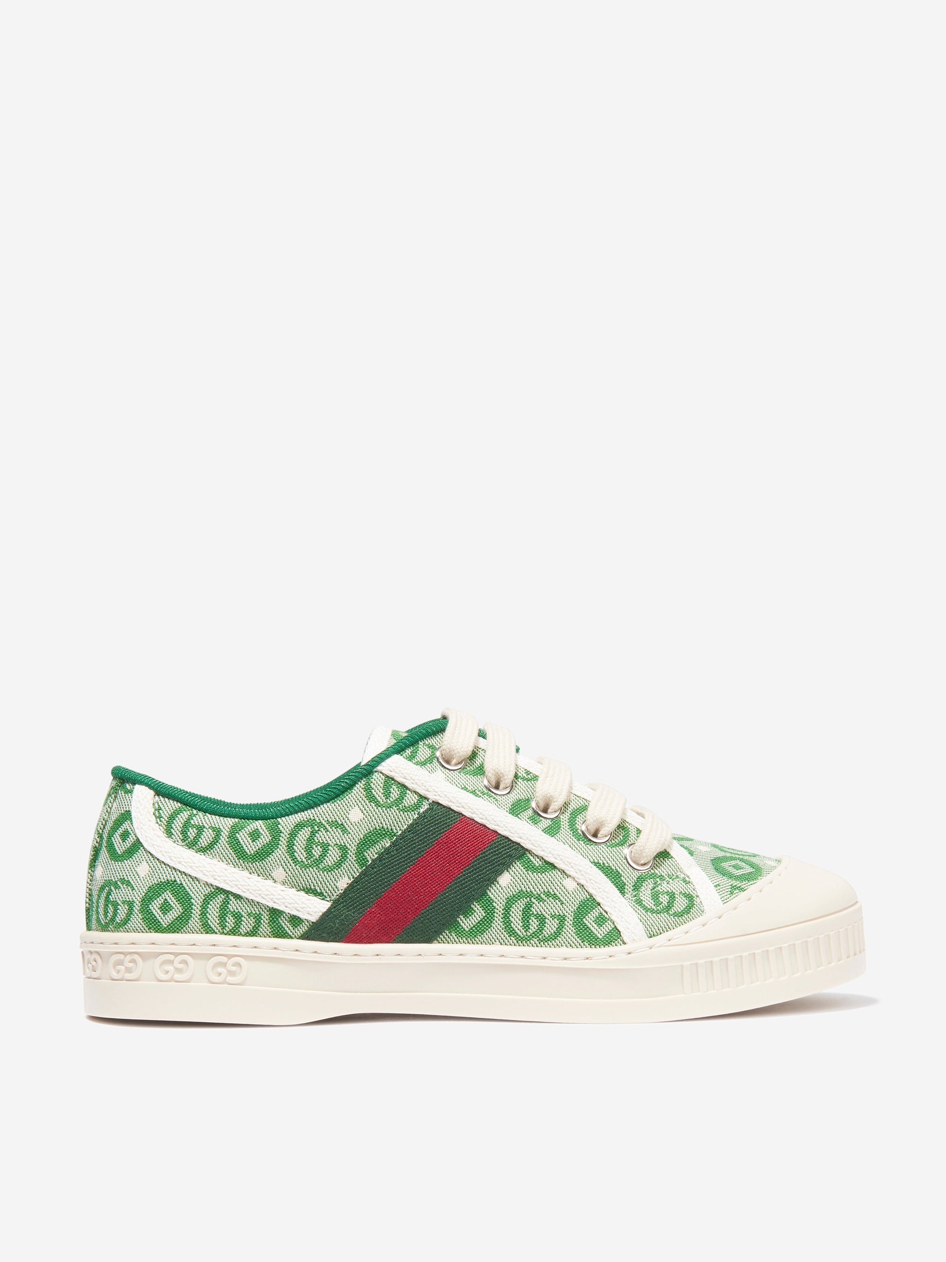 推出精致的 Gucci 绿色儿童网球训练鞋 – 是您孩子中性服装的必备单品,非常适合休闲穿着。以下是其独特之处: