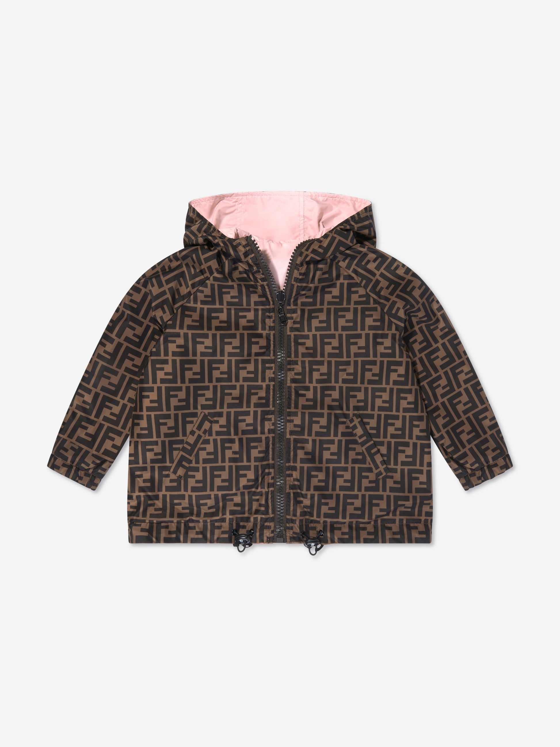 Fendi 体现了高品质工艺设计与精致优雅。这款女式风衣彰显了意大利奢侈品牌对迷人字母组合的偏爱。采用可翻转设计,品质精美。一面为淡粉色,另一面印有棕色 FF 标志。