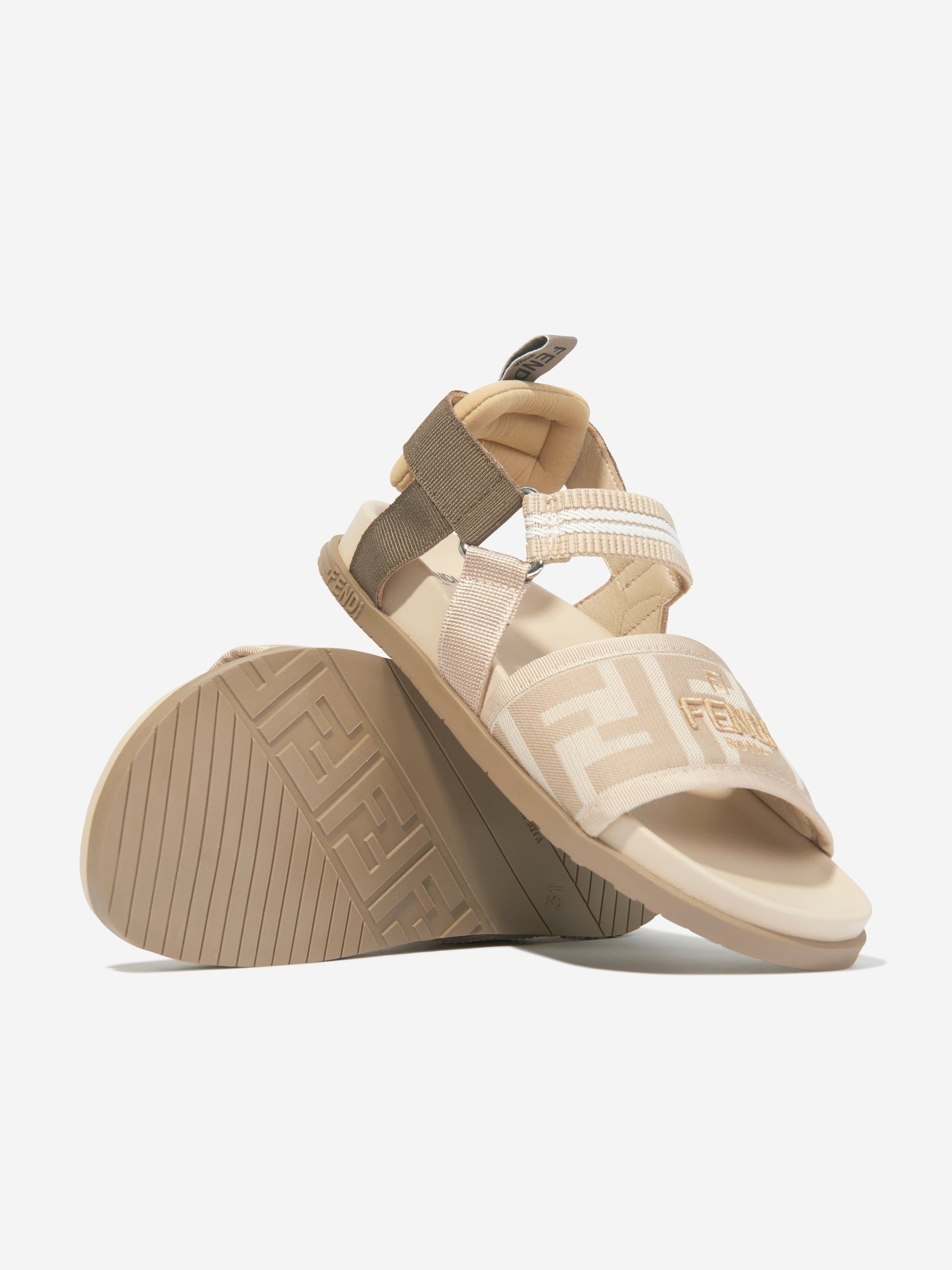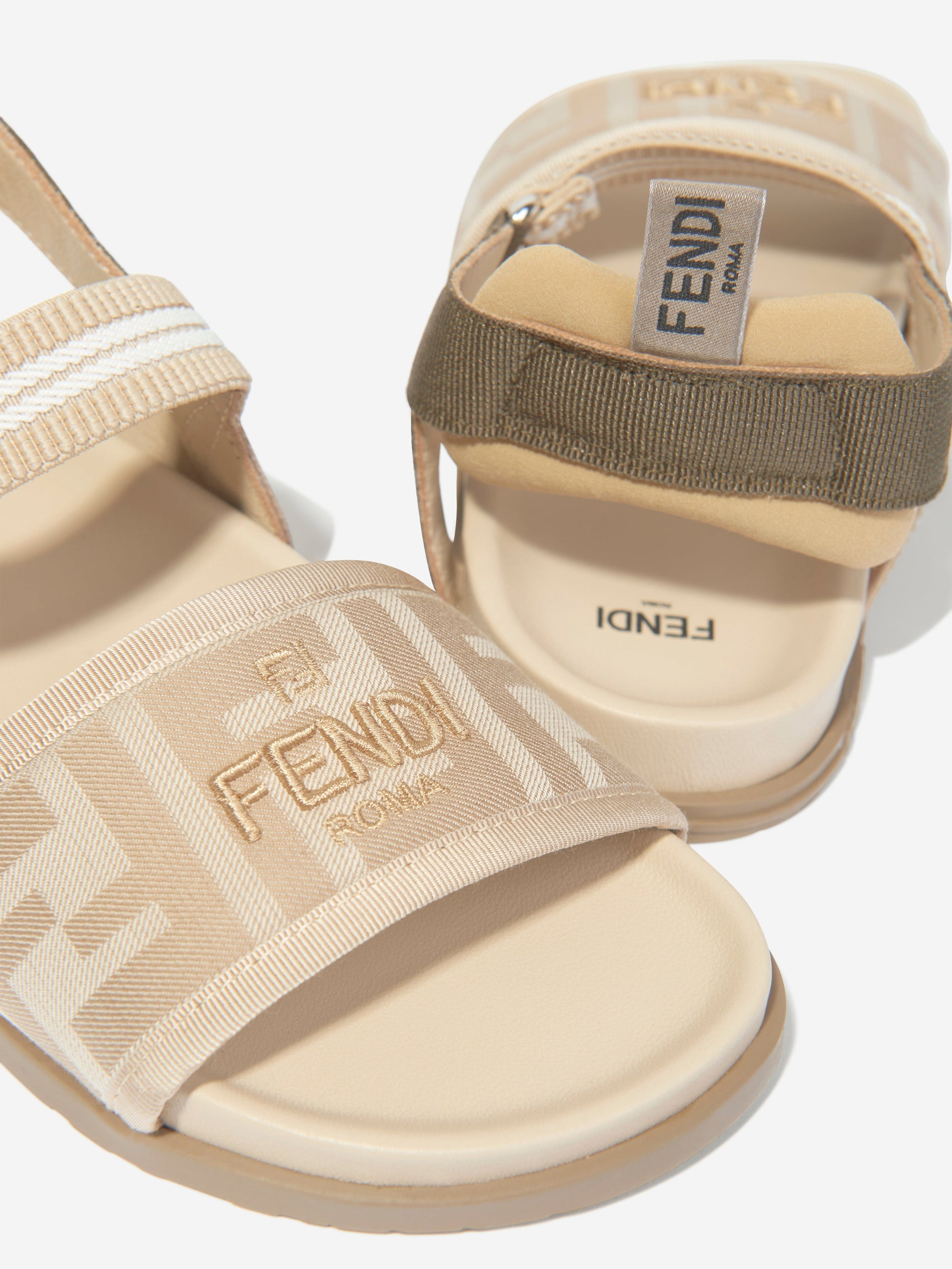• 用芬迪 (Fendi) 的这些优雅女童米色 FF 标志凉鞋升级您女孩的鞋子系列。现在就买一双,让您的小天使以时尚和自信大步前进!