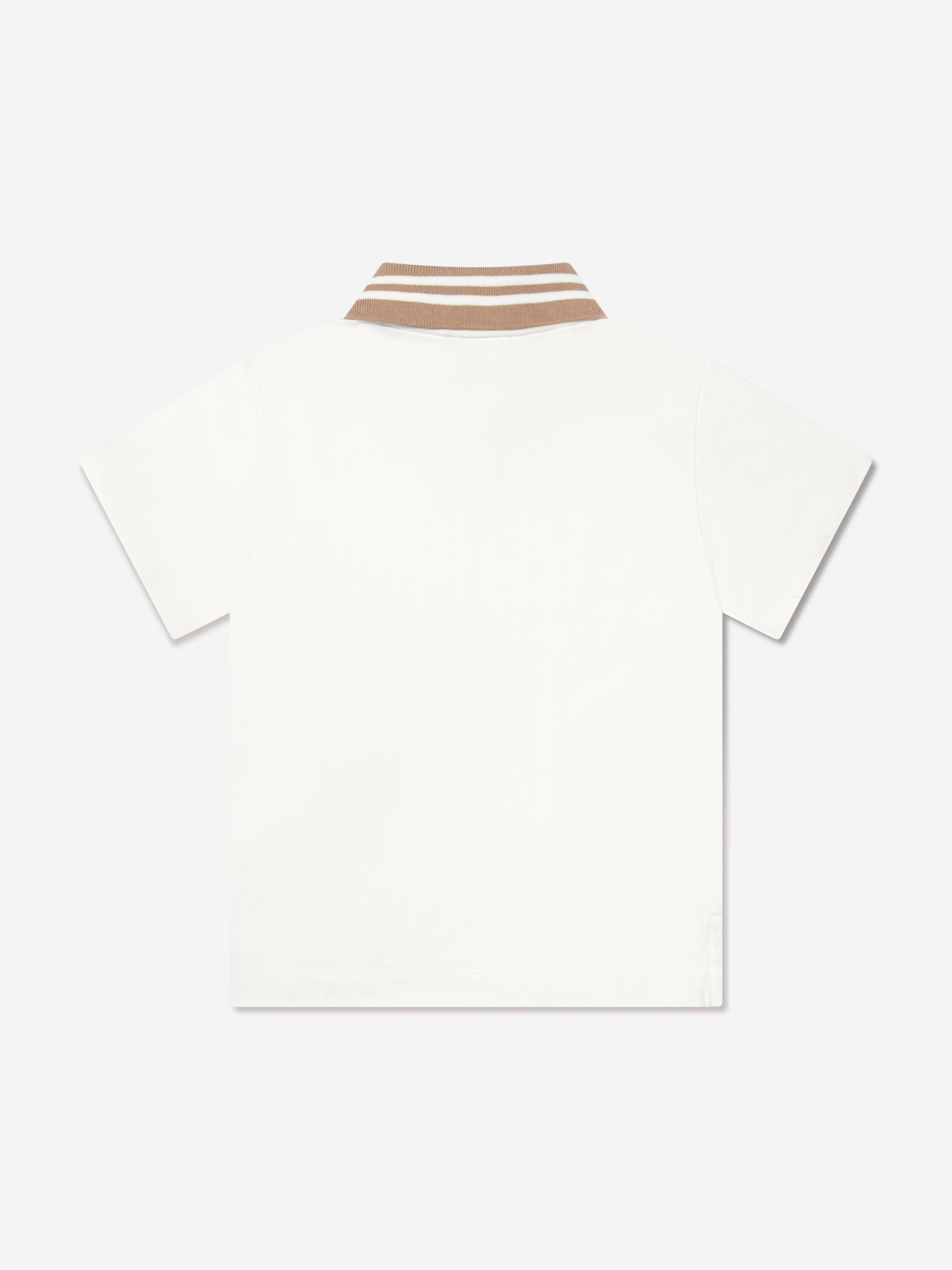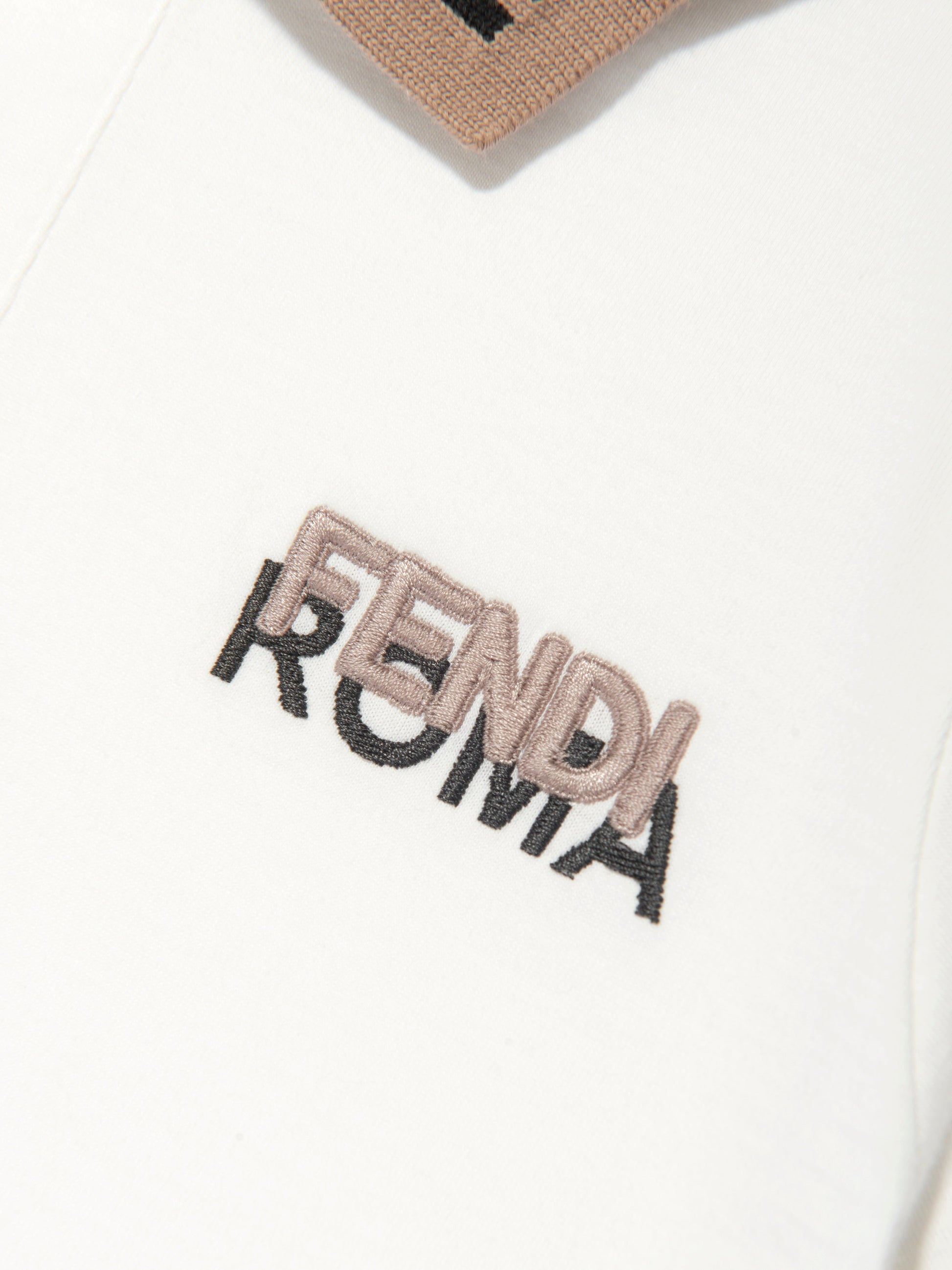 意大利奢侈品牌 Fendi 将新的美学特性融入传统抽象中。这款男孩 Polo 衫采用米色罗纹领,饰有象牙色条纹和标志性的 FF 标志。为了营造动感,Fendi Roma 标志采用米色和黑色刺绣。正面采用纽扣式开合,将散发出无与伦比的自信。