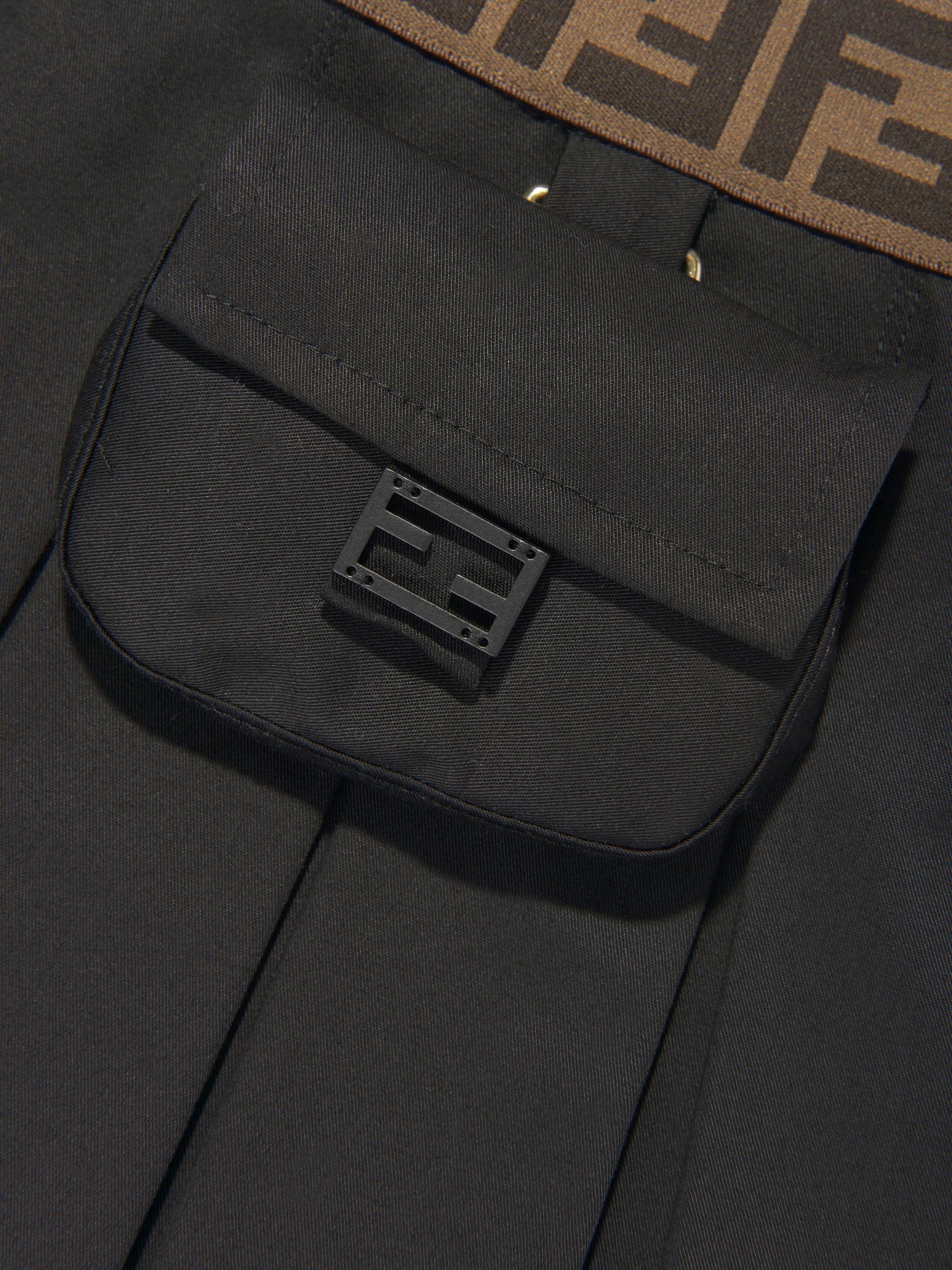 意大利奢侈品牌 Fendi 将新的美学特性融入传统抽象中。这款女童风衣裙体现了该品牌对时尚实用时尚的偏爱。采用褶皱设计,无衬里弧形下摆,隐藏式侧拉链开合,标志性 FF 图案印花。