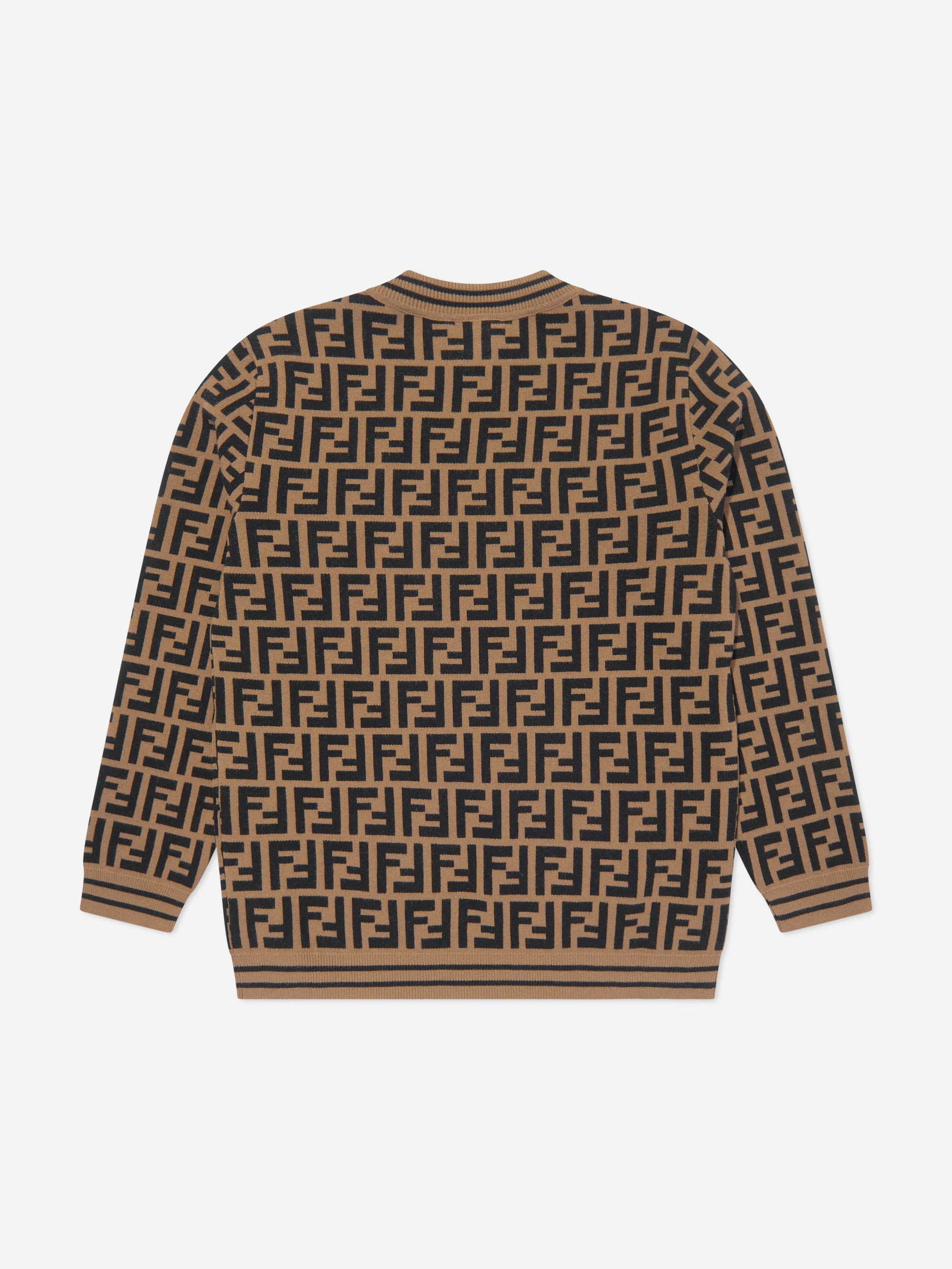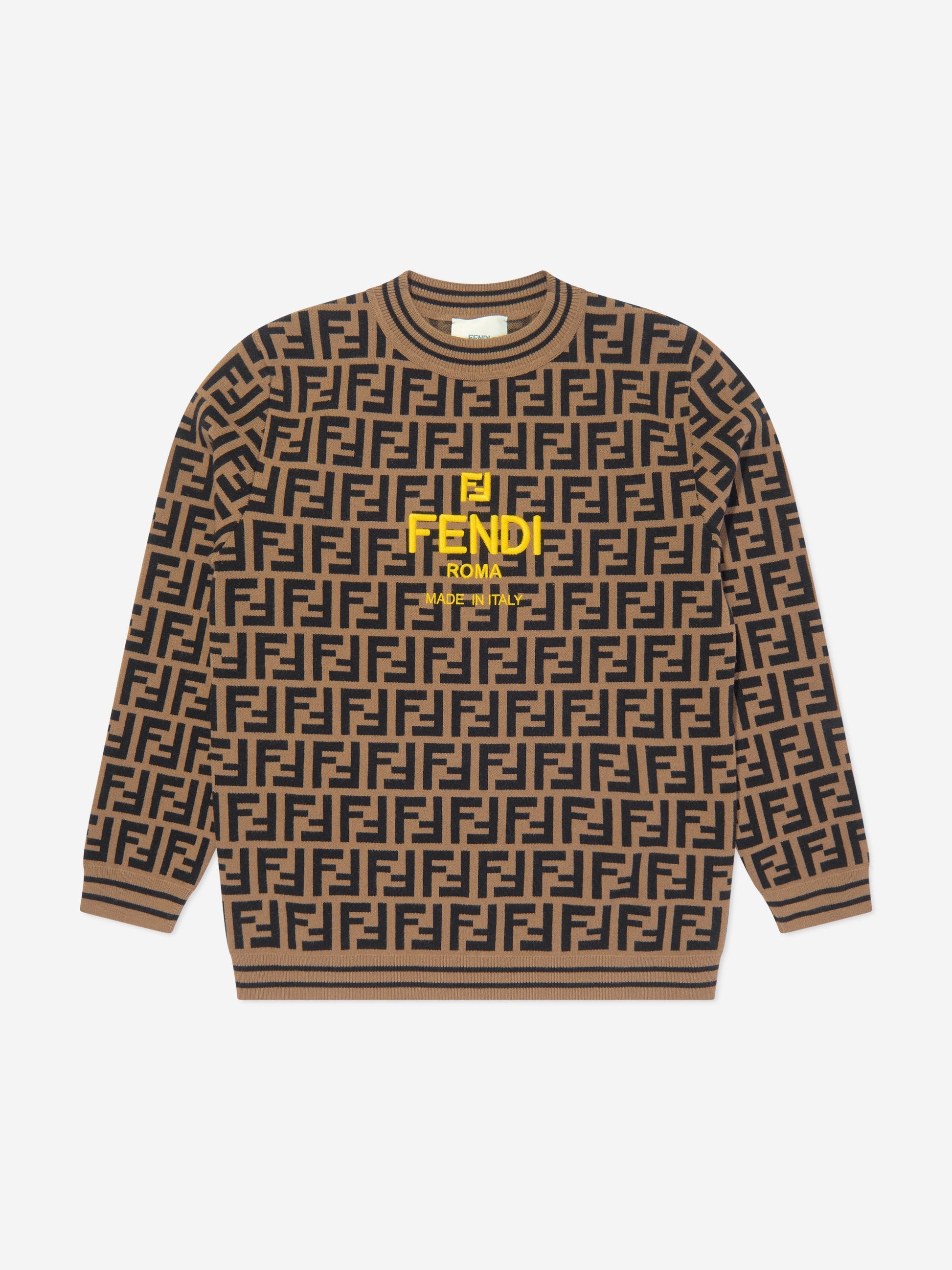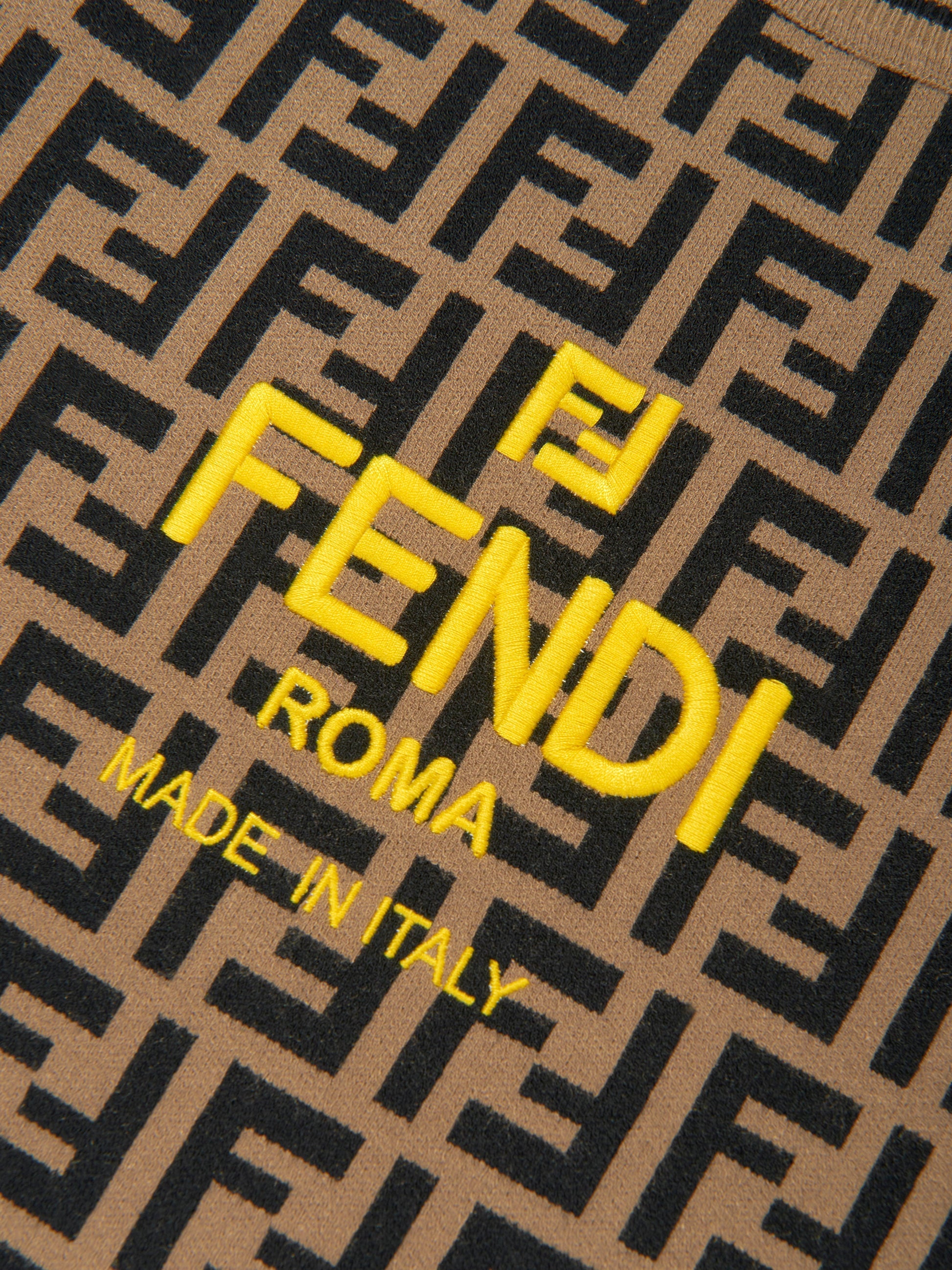 Fendi 体现了高品质工艺设计和精致优雅。这款男女通用的 Zucca 套头衫彰显了意大利奢侈品牌对迷人字母组合的偏爱。采用精美的优质棉制成,正面印有烟草色 FF 标志和黄色 Fendi Roma 刺绣。