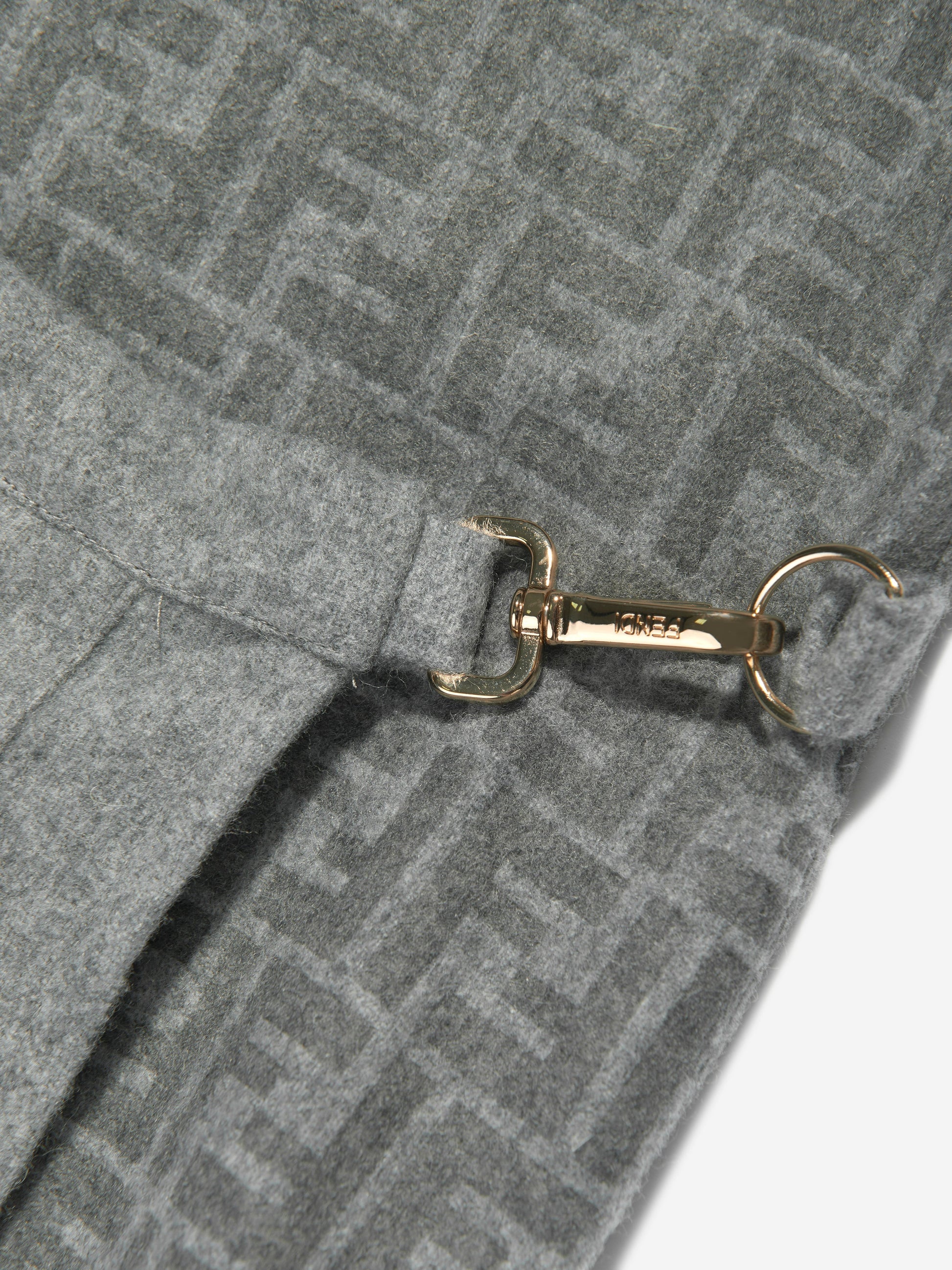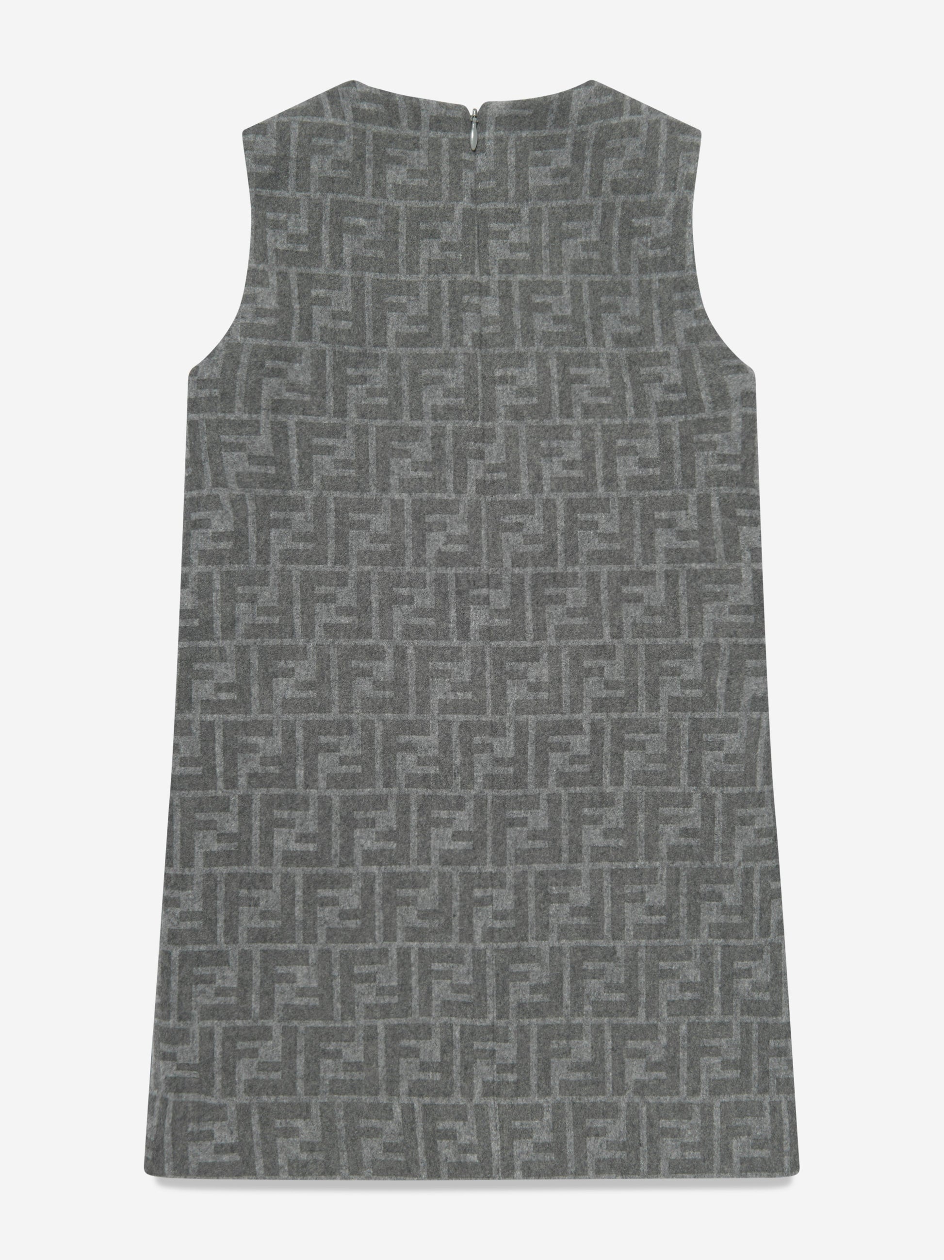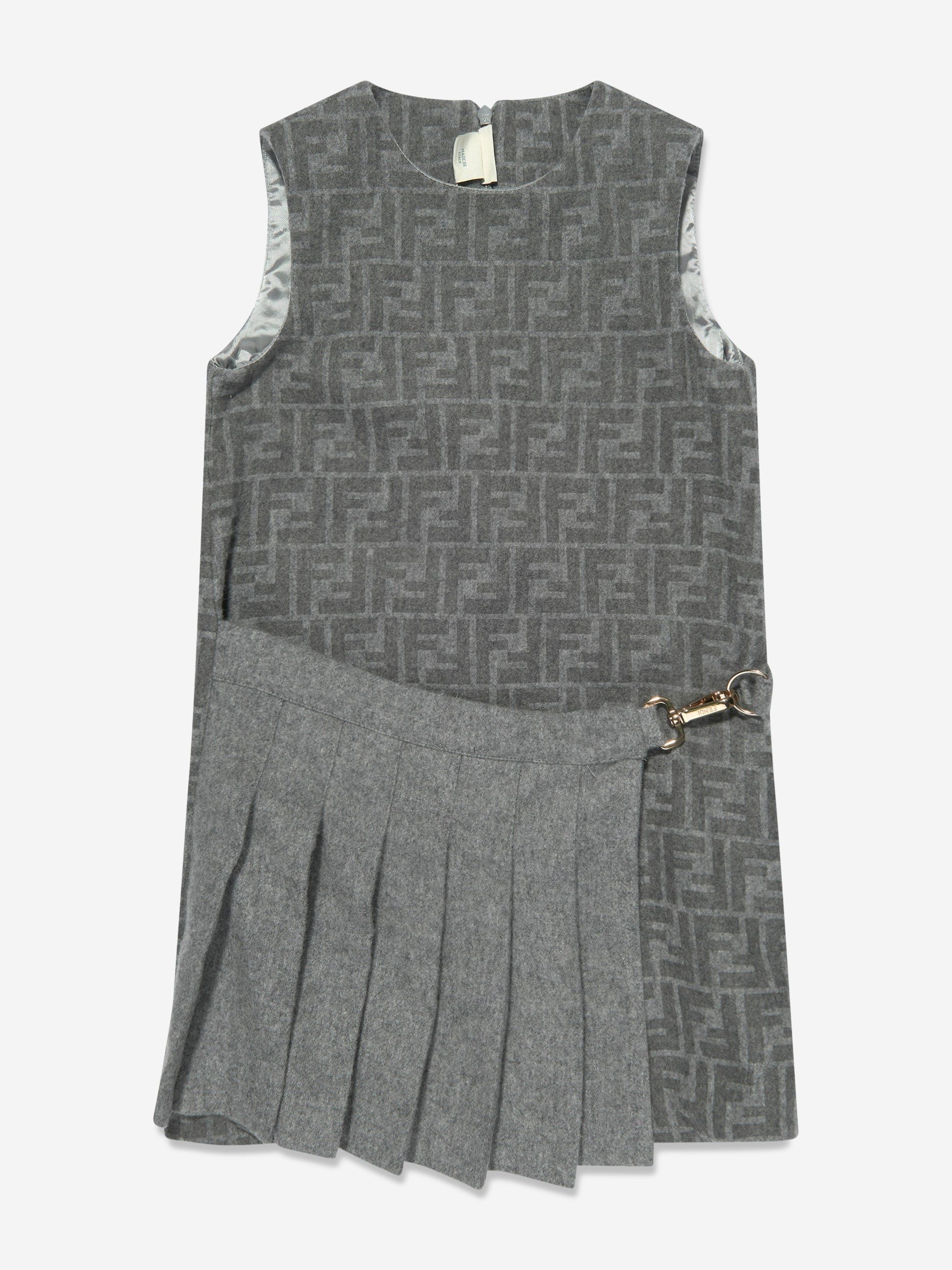 意大利奢侈品牌 Fendi 将新的美学特性融入传统抽象中。这款女孩浅灰色连衣裙体现了意大利品牌对时尚、创新优雅的热情。这款无袖款式采用奢华羊毛混纺法兰绒制成,饰有同色系 FF 标志,正面饰有褶皱面板,并用金色品牌夹子固定。这款连衣裙采用粘胶缎衬里,背面采用隐形拉链固定。
