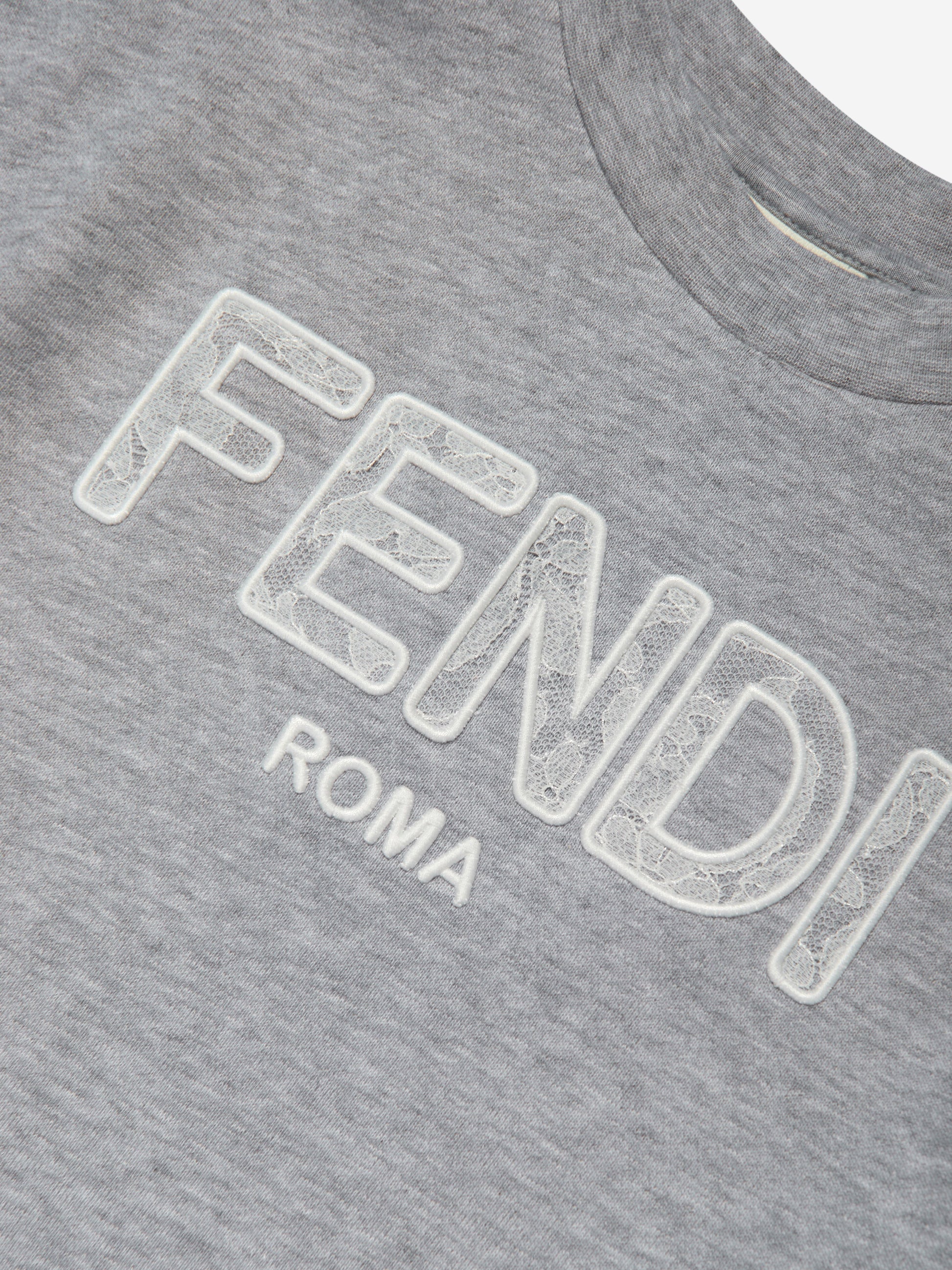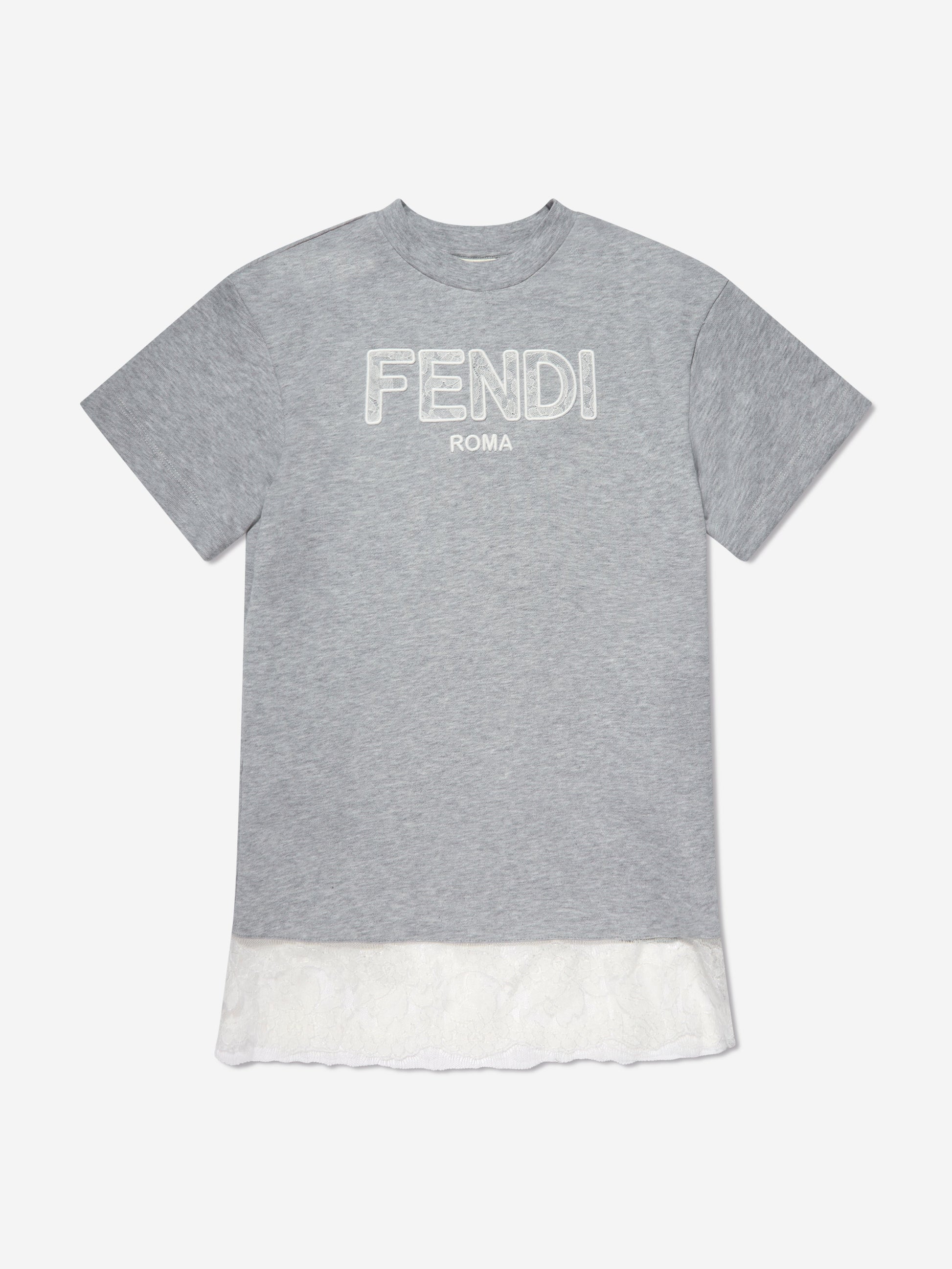 • 改头换面时间:用 Fendi 华丽的灰色泽西徽标连衣裙升级您女孩的衣橱。立即购买,让她以时尚的方式闪耀!