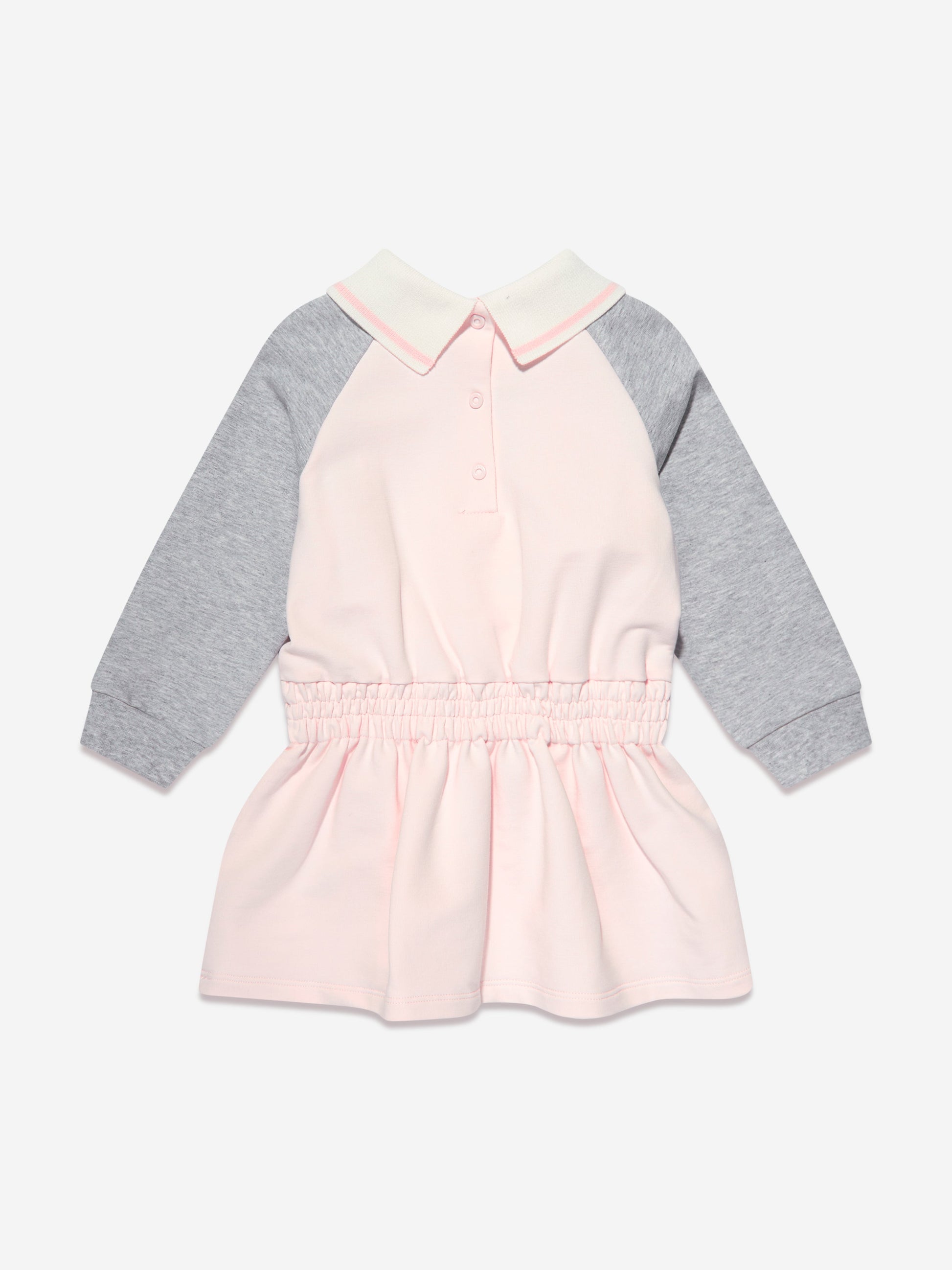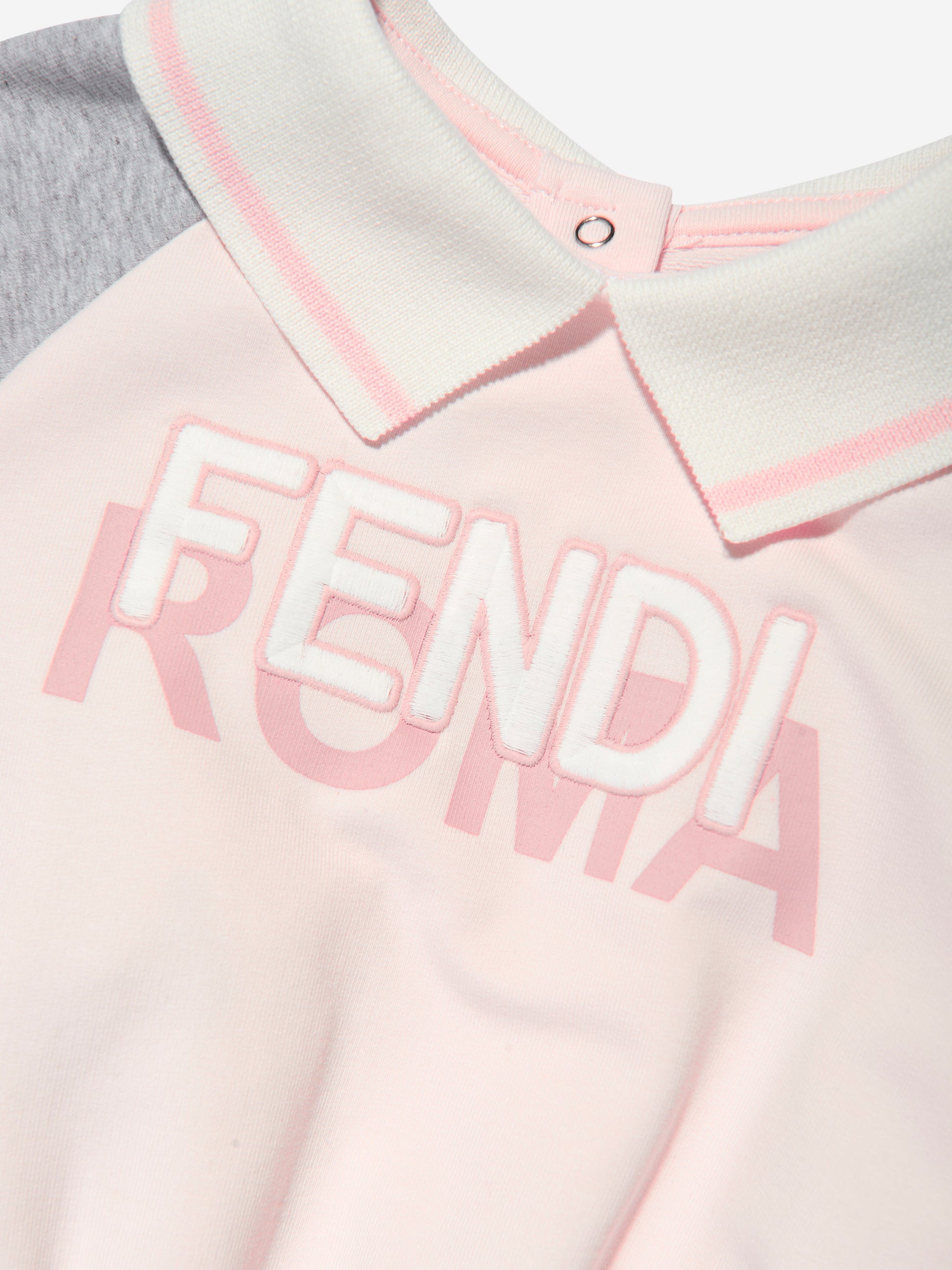 意大利奢侈品牌 Fendi 将新的美学特性融入传统抽象中。这款粉色女童连衣裙体现了意大利品牌对时尚、创新优雅的热爱。采用精美的棉混纺面料制成,带有纹理刺绣和印花。采用奢华柔软光滑的棉质针织面料制成,罗纹 Polo 衫式衣领,带有粉色条纹、插肩袖和松紧腰身。