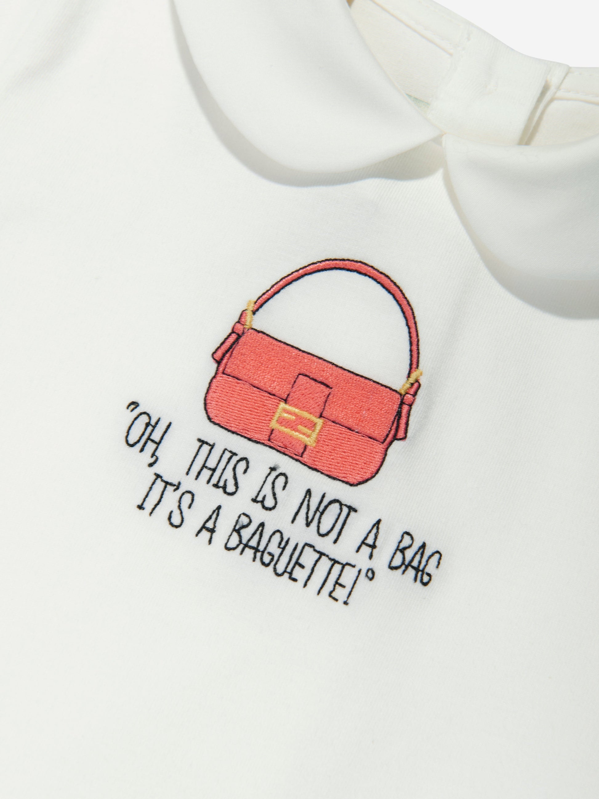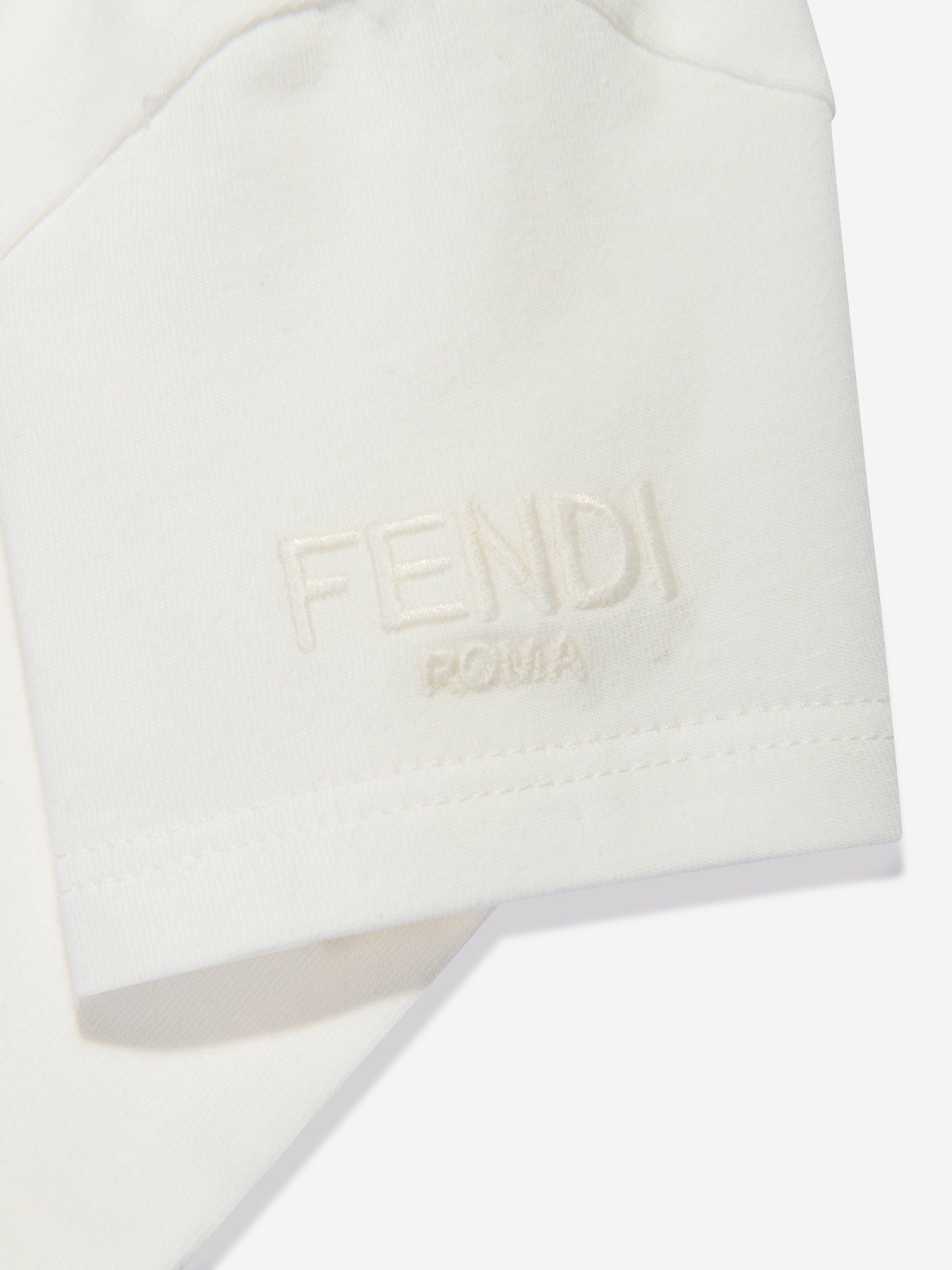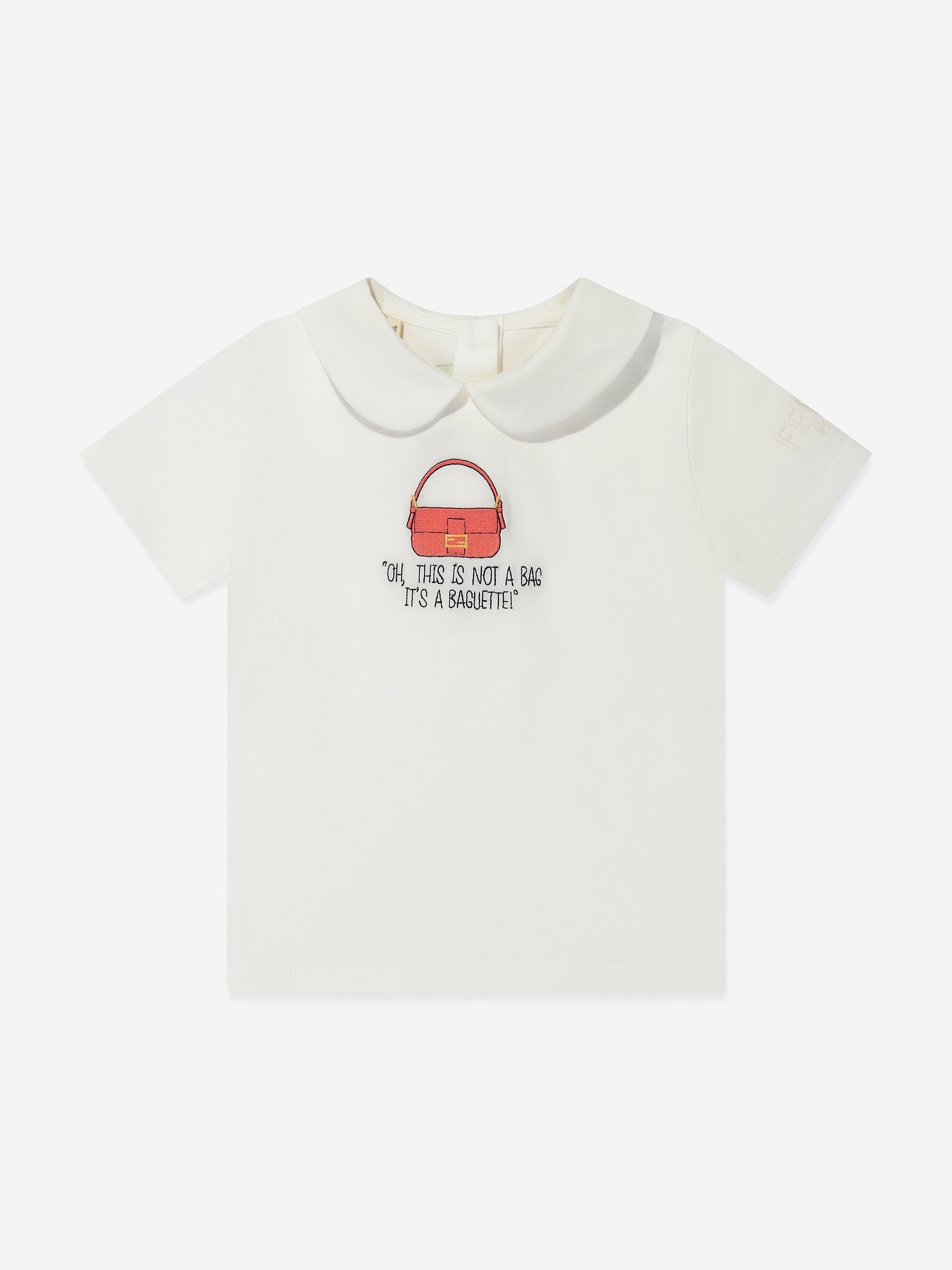 • 改造时间:用芬迪象牙色女婴手提包印花 T 恤改造您的女婴衣柜。今天订购,让您的小宝贝享受她将收到的赞美!