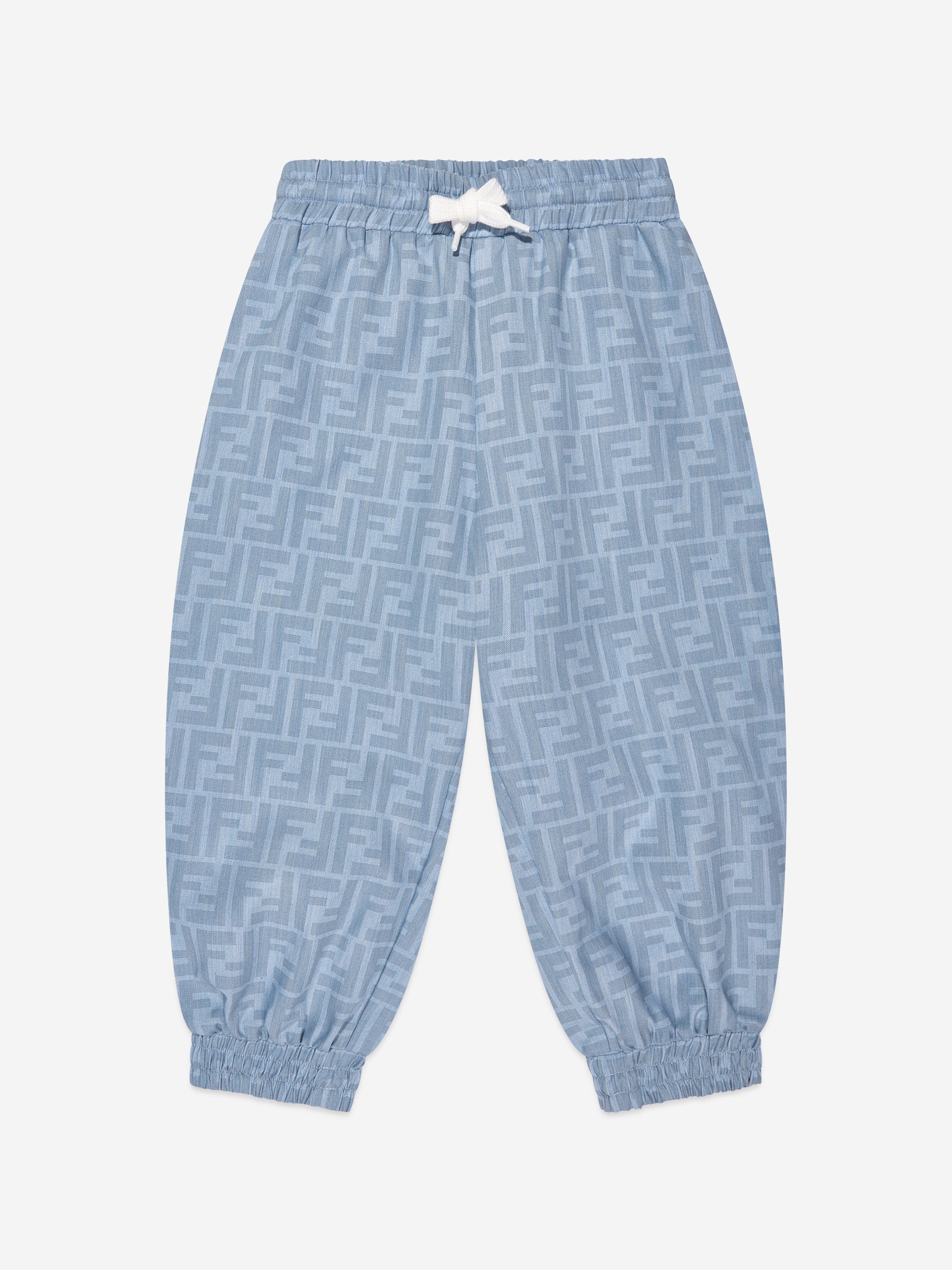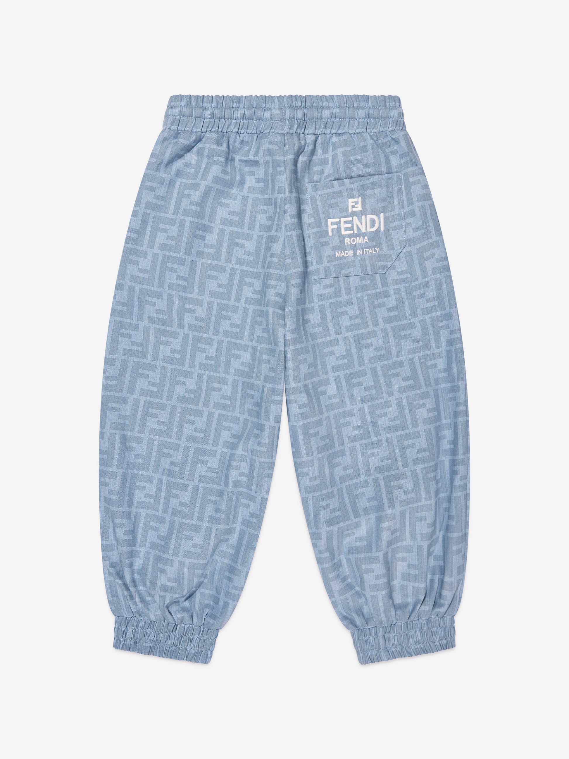 使用芬迪蓝色男童 Chambray FF Logo 慢跑裤提升您男孩的时尚品味。立即订购,让您的小家伙散发时尚和舒适!