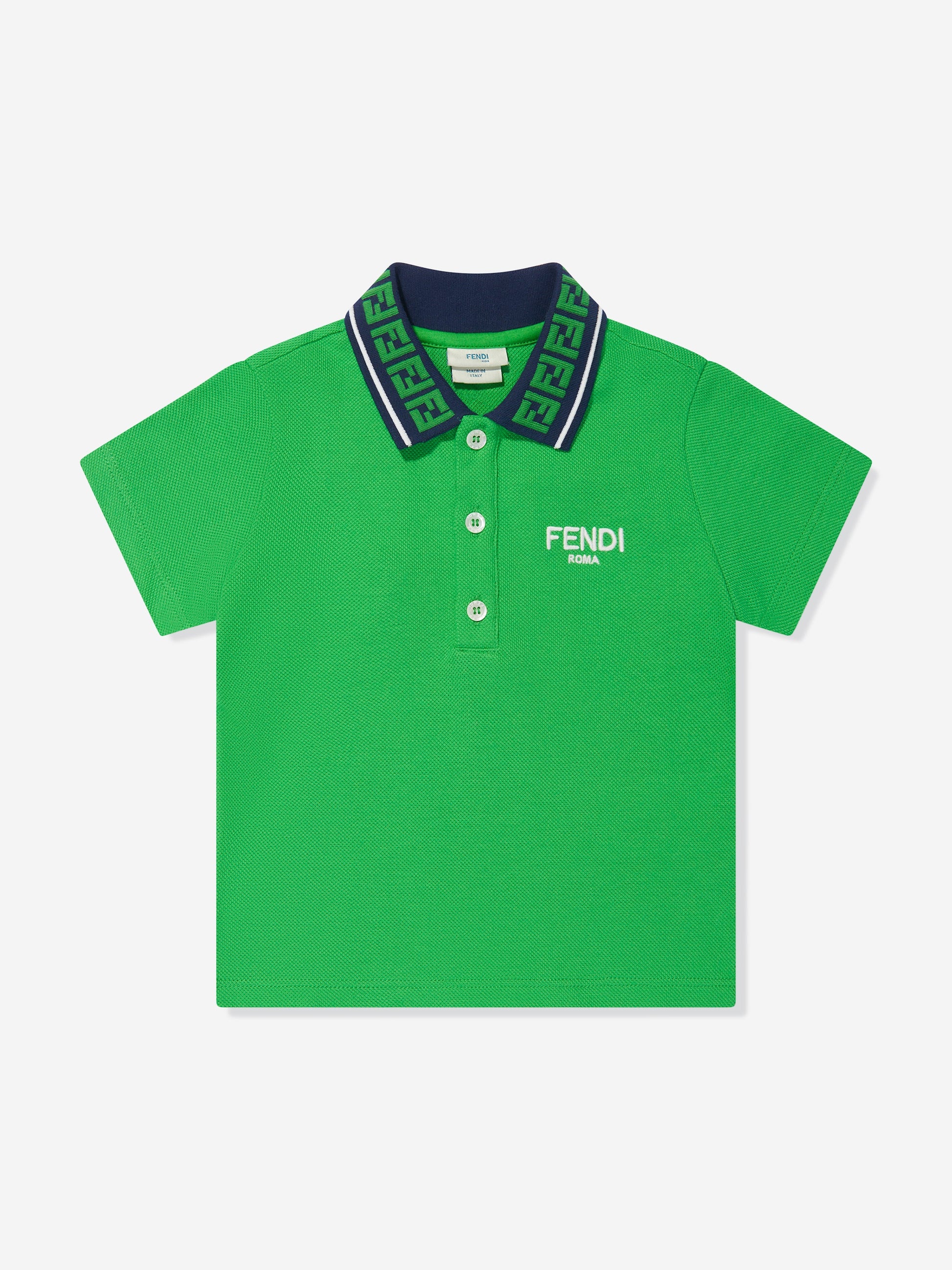 意大利奢侈品牌 Fendi 将新的美学特性融入传统抽象中。这款绿色男童 Polo 衫体现了该意大利品牌对创新的热情。采用棉府绸制成,衣领上绣有标志性的 FF 标志。正面采用纽扣式开合,他将散发出无与伦比的自信。