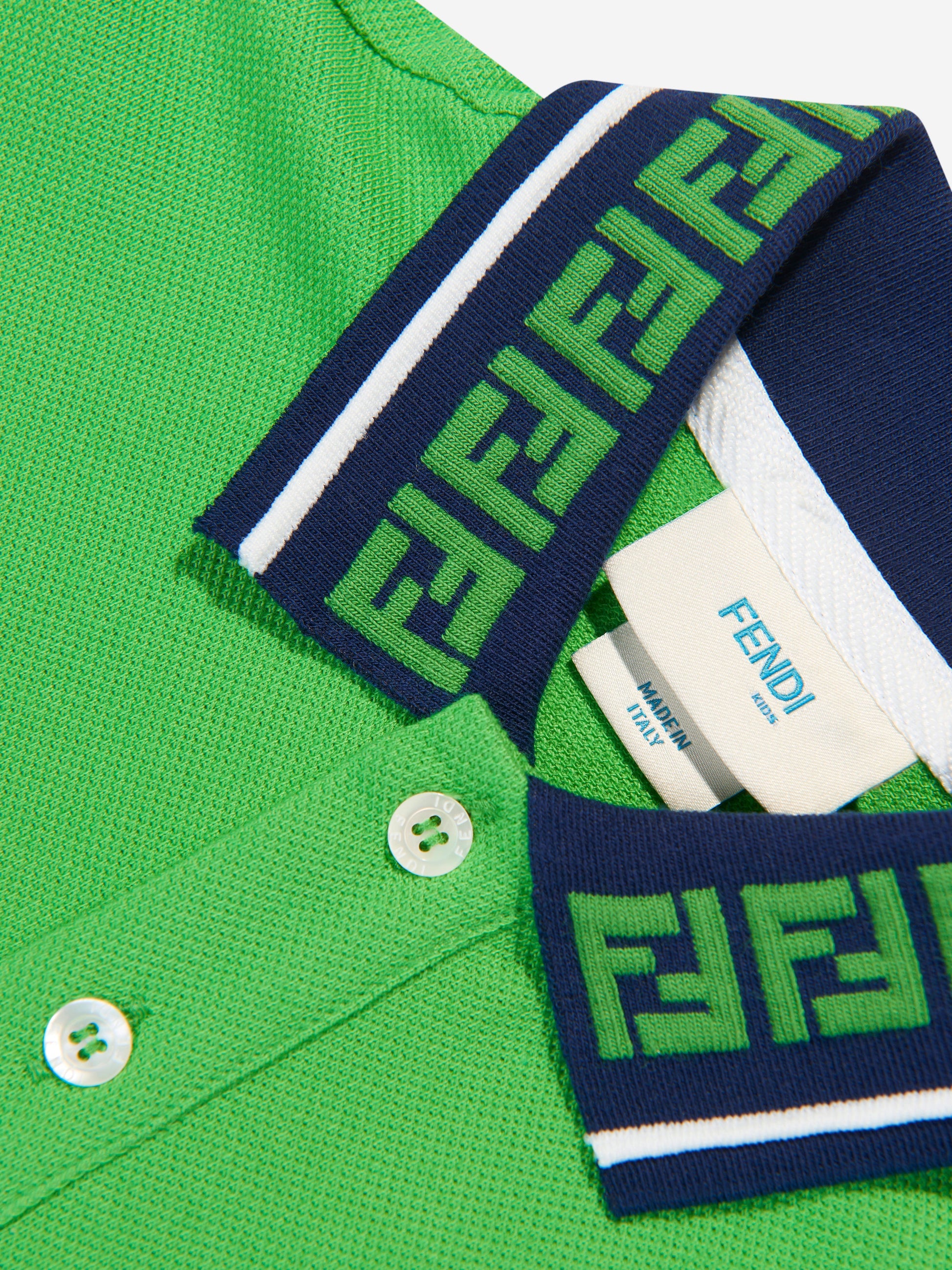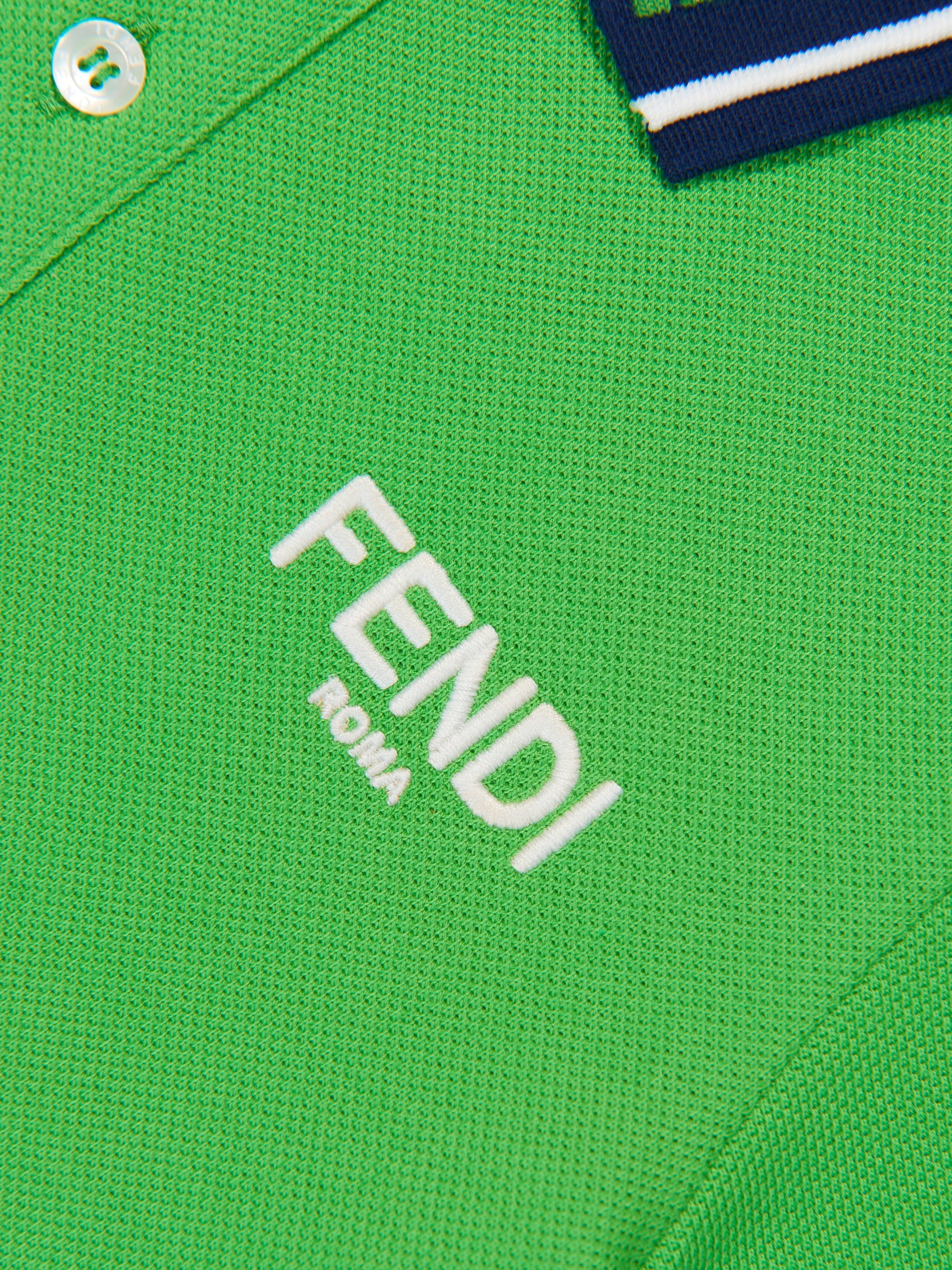 Fendi 在制作这款绿色 Polo 衫时采用了一种有趣而大胆的精神。经典的运动休闲款式采用精致的细节设计,衣领周围重复刺绣字母图案。胸前饰有对比色的白色徽标贴花,衣领上饰有相配的条纹。搭配宽松的斜纹棉布裤,打造休闲而时尚的外观。