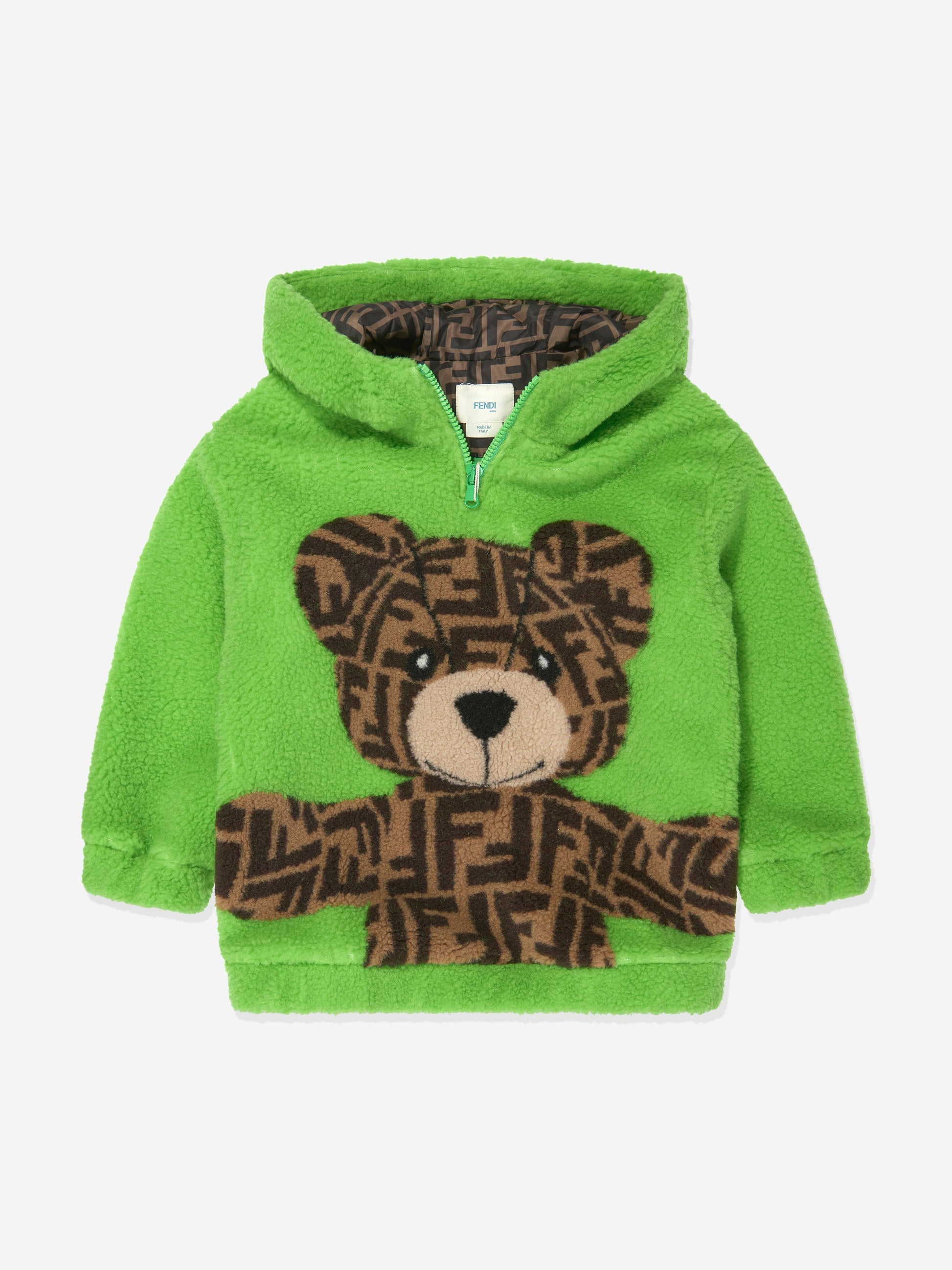 用 Fendi 的优质绿色儿童羊毛熊连帽衫改造您孩子的衣柜。立即订购,让您的孩子拥有与众不同的风格!