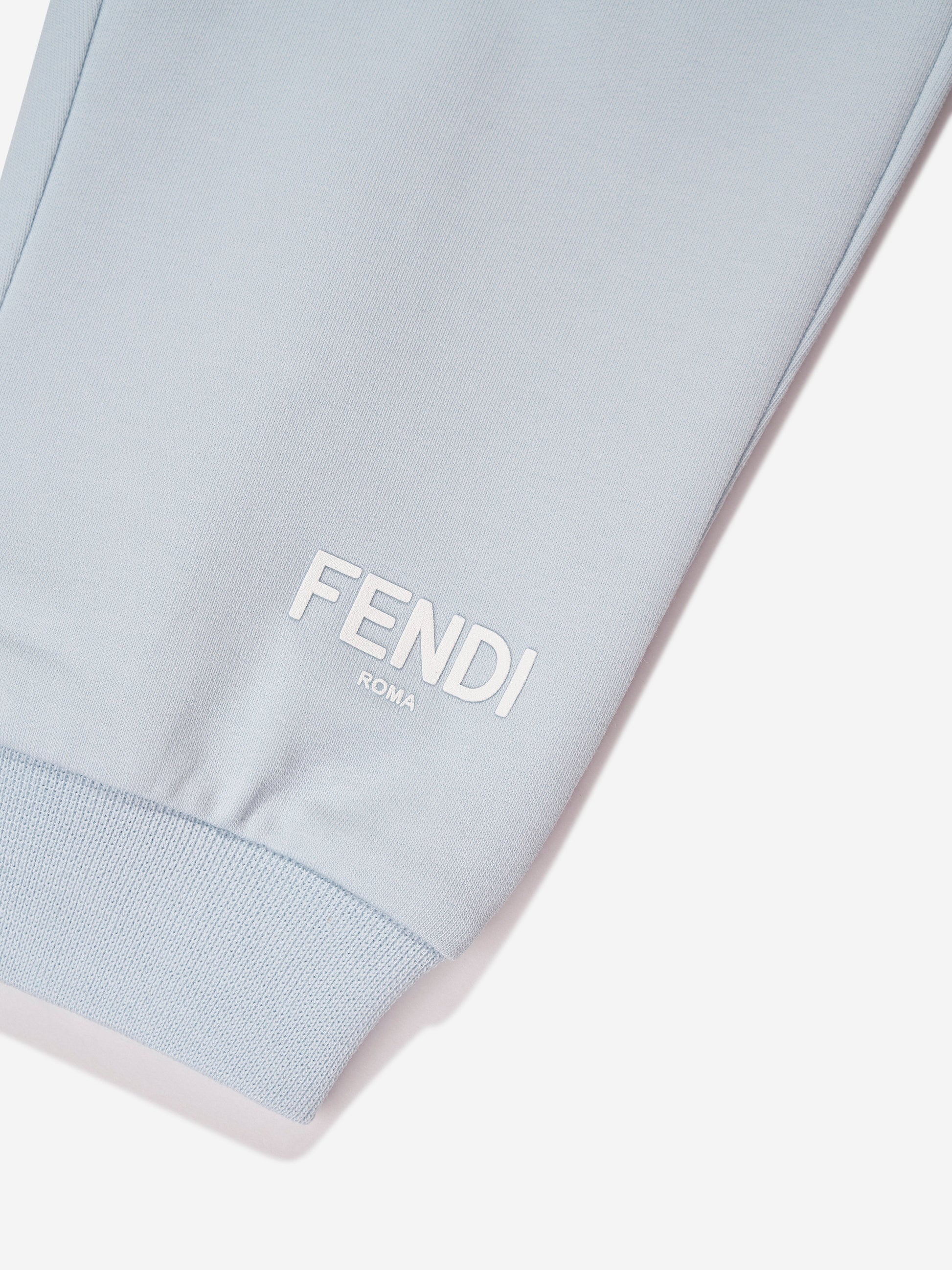 • 使用芬迪蓝色婴儿徽标慢跑裤改变您的婴儿中性套装。立即购买,彰显时尚气息!