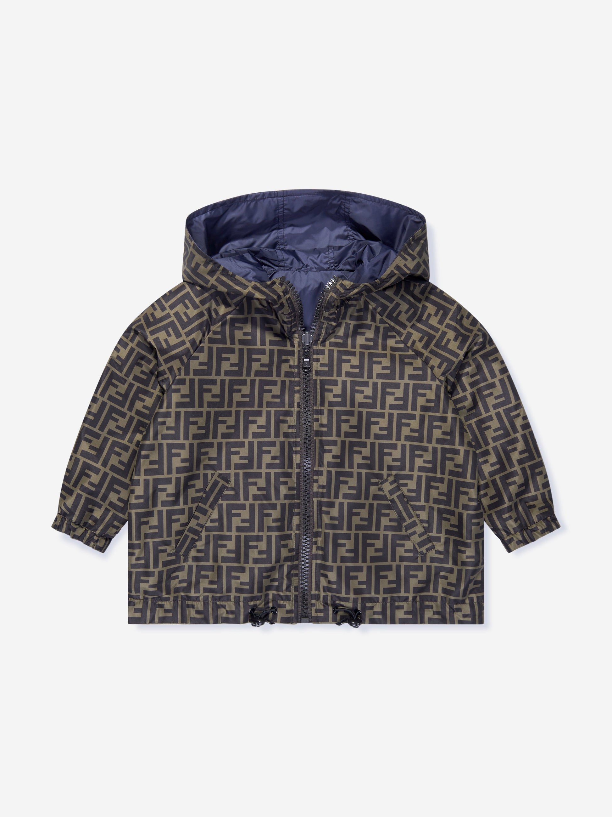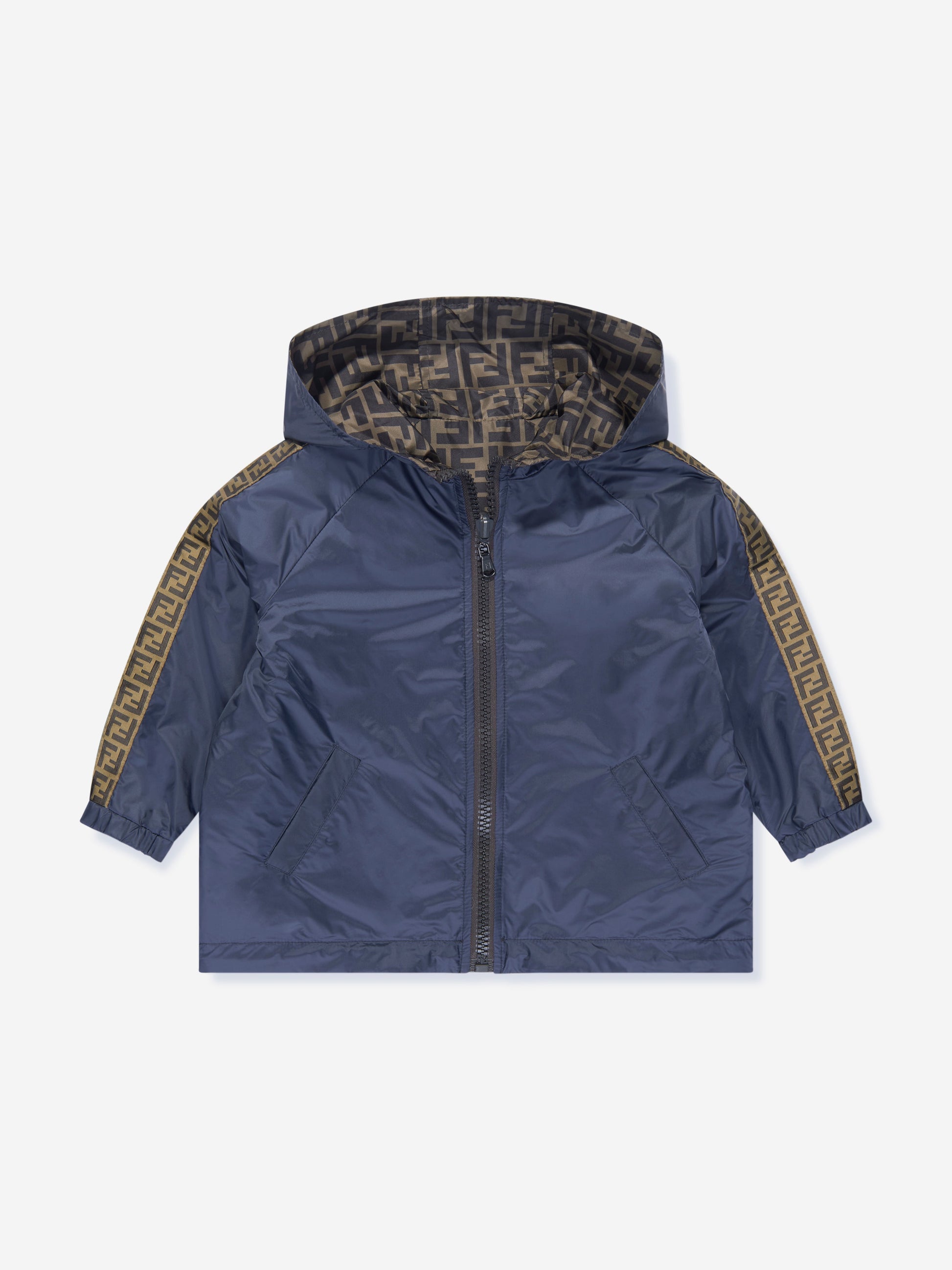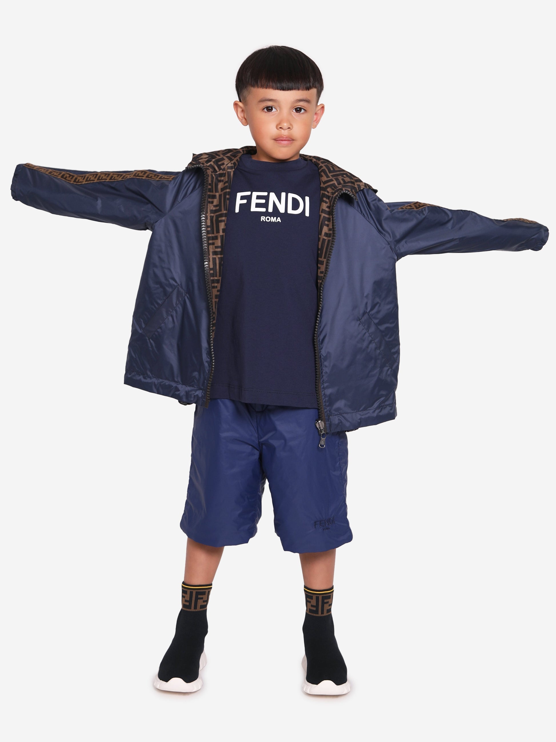 Fendi Kids 的蓝色儿童双面 K-Way 夹克兼具时尚与功能,是任何孩子衣橱中的必备单品。