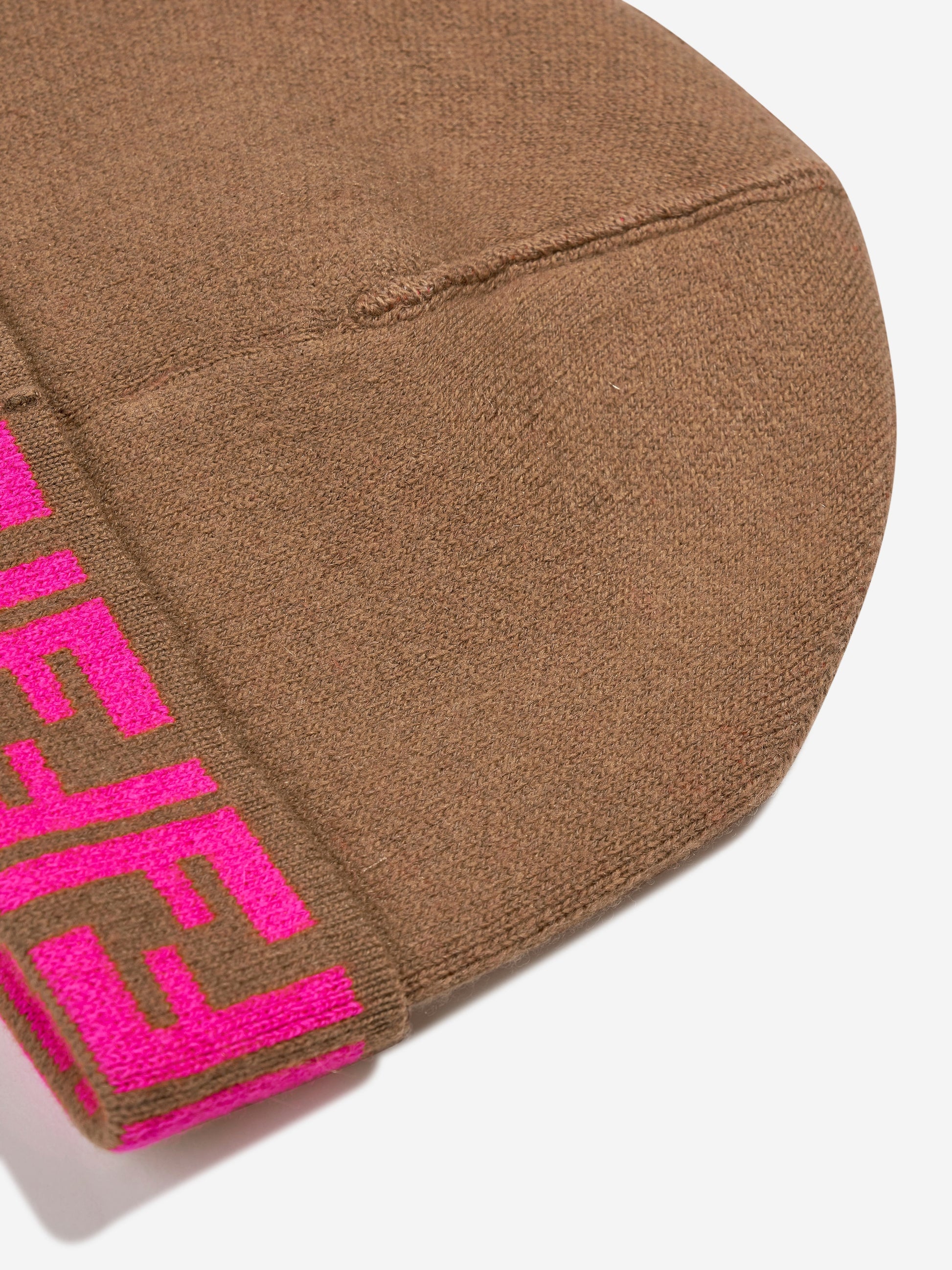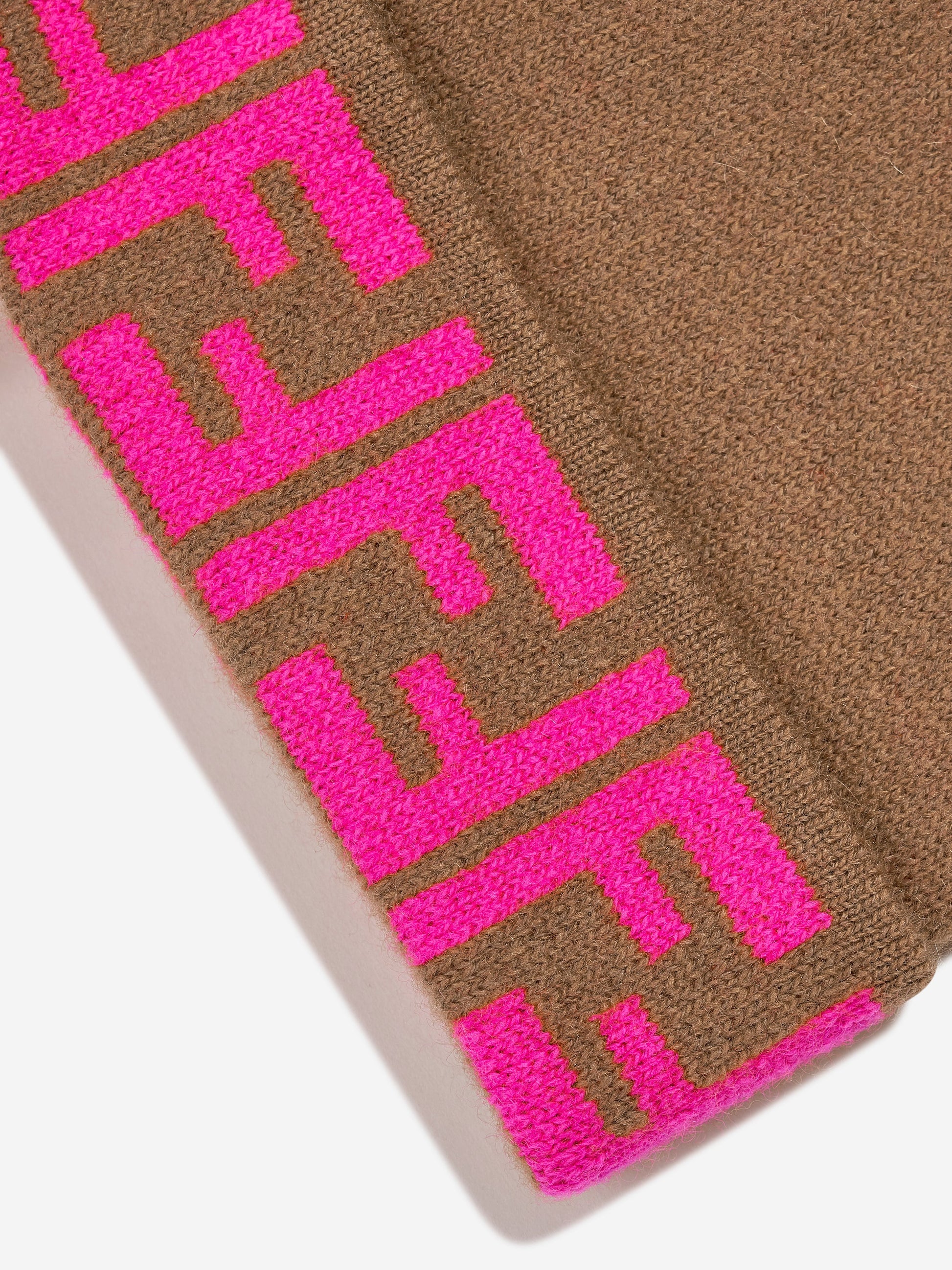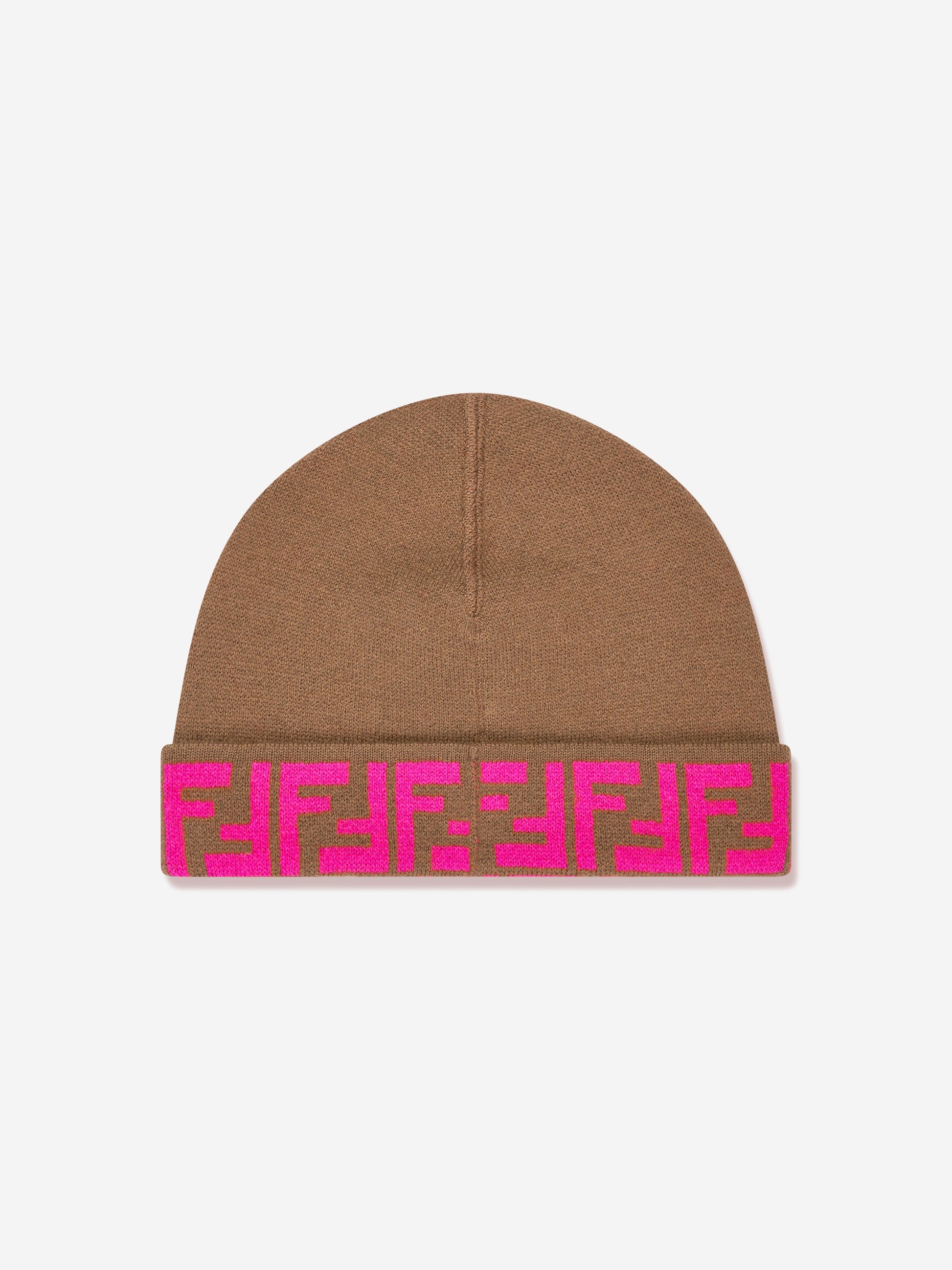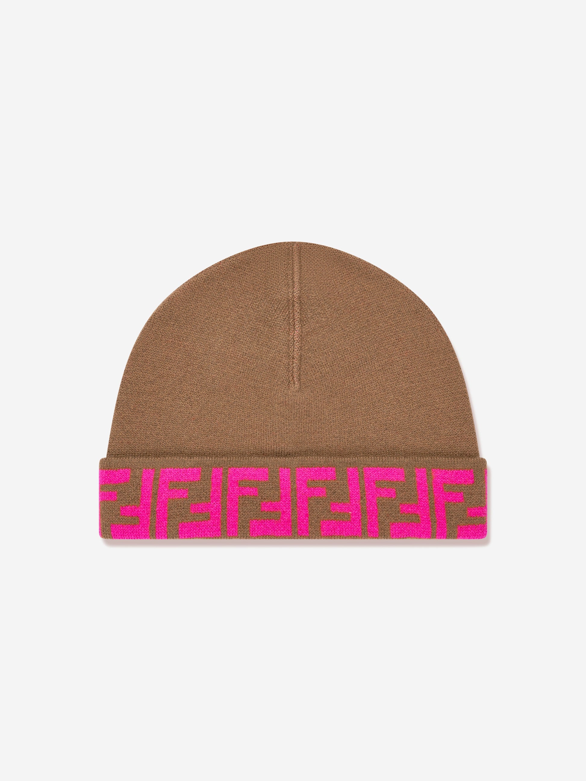 使用这款时尚的 Fendi 米色 FF 徽标双面无檐小帽升级您的女童无檐小帽系列。立即提升他们的滑雪时尚感!
