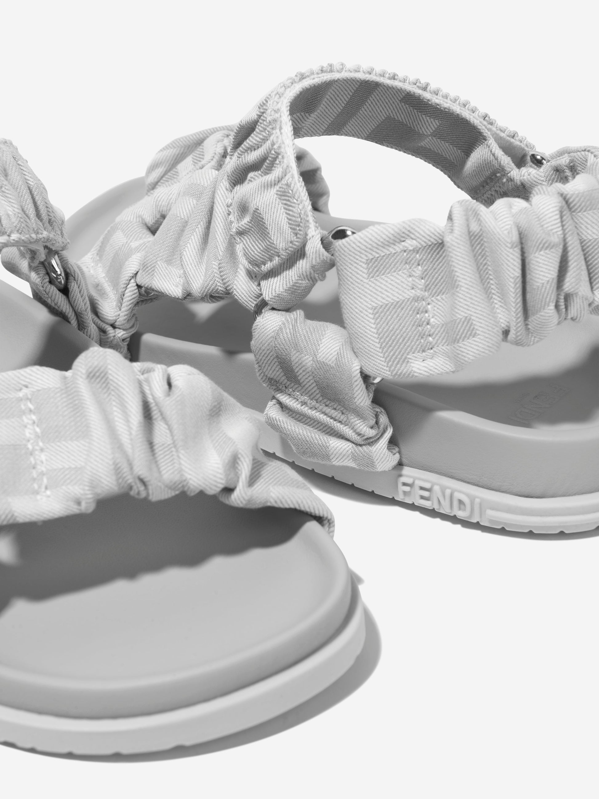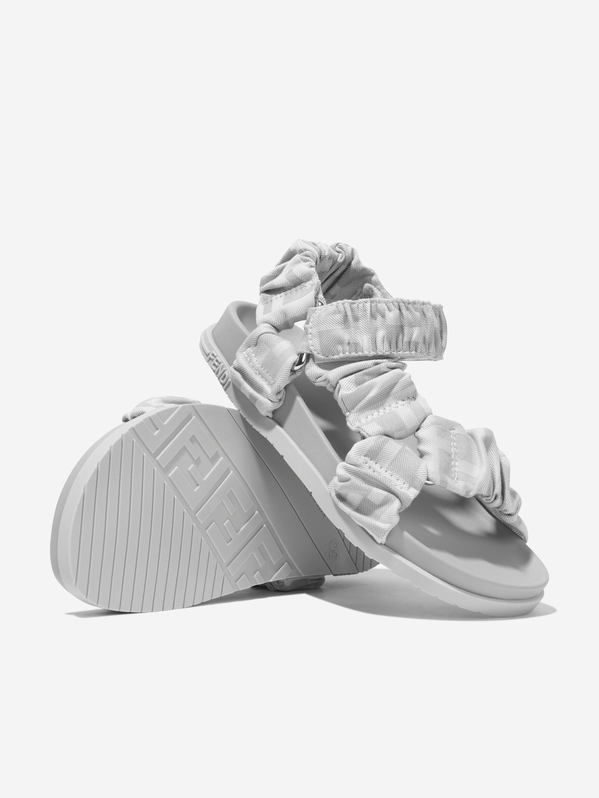 • 男女通用衣橱改造:这款灰色 Fendi 儿童 FF 徽标凉鞋为您孩子的衣橱注入一剂意大利优雅,让您孩子的衣橱焕然一新。立即订购时尚套装!