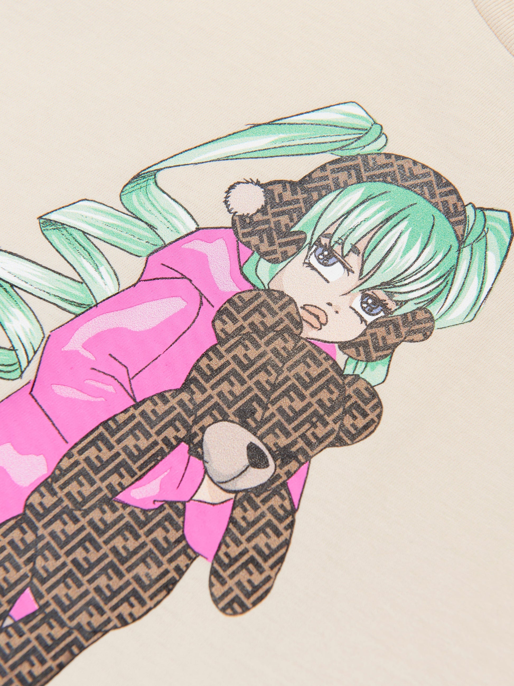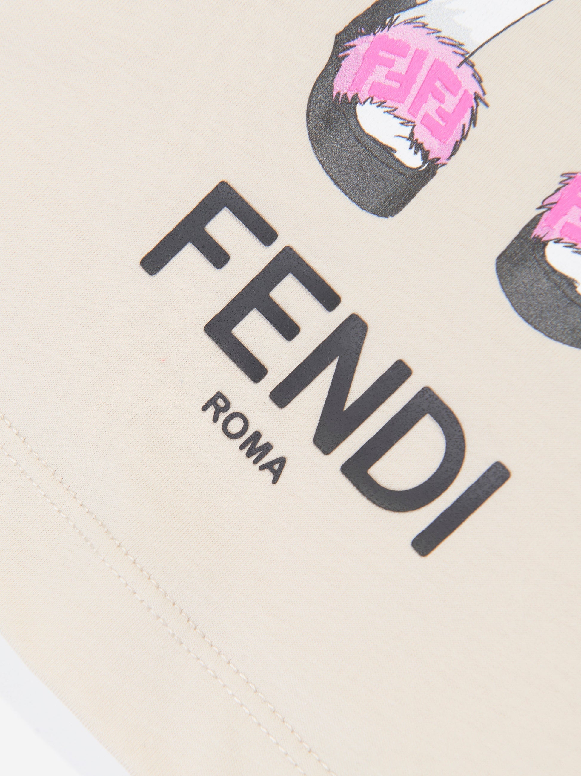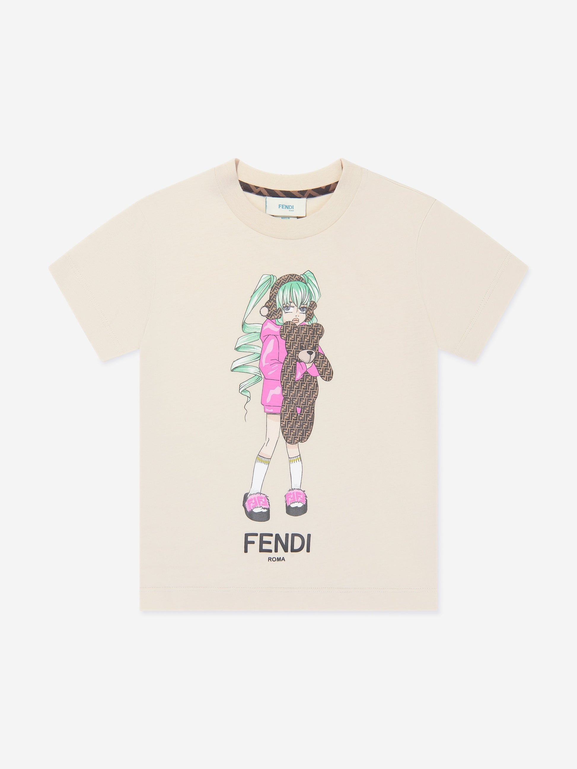 • 用芬迪精致的米色图案印花 T 恤提升您女孩的衣柜。立即下单,让您的女孩以时尚魅力魅力四射!