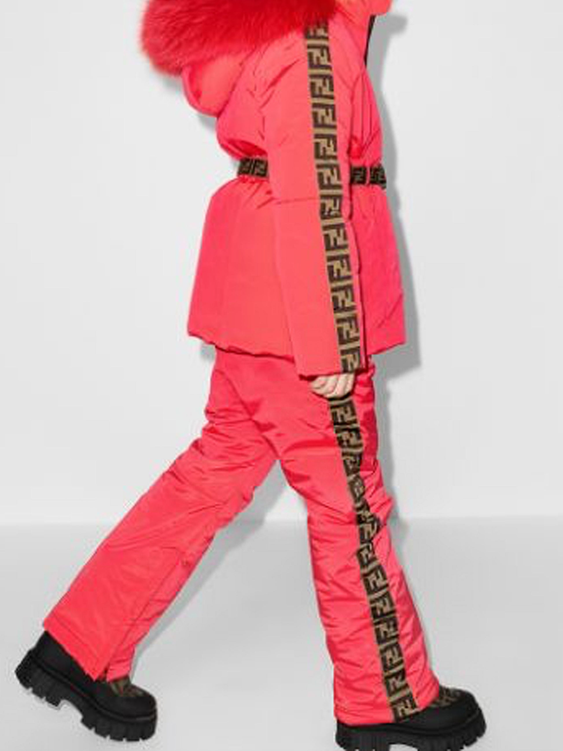 • 标志性 FF 徽标:Fendi 徽标饰边增添了奢华感,使其不仅仅是一条滑雪裤,而是一件高端设计师作品。