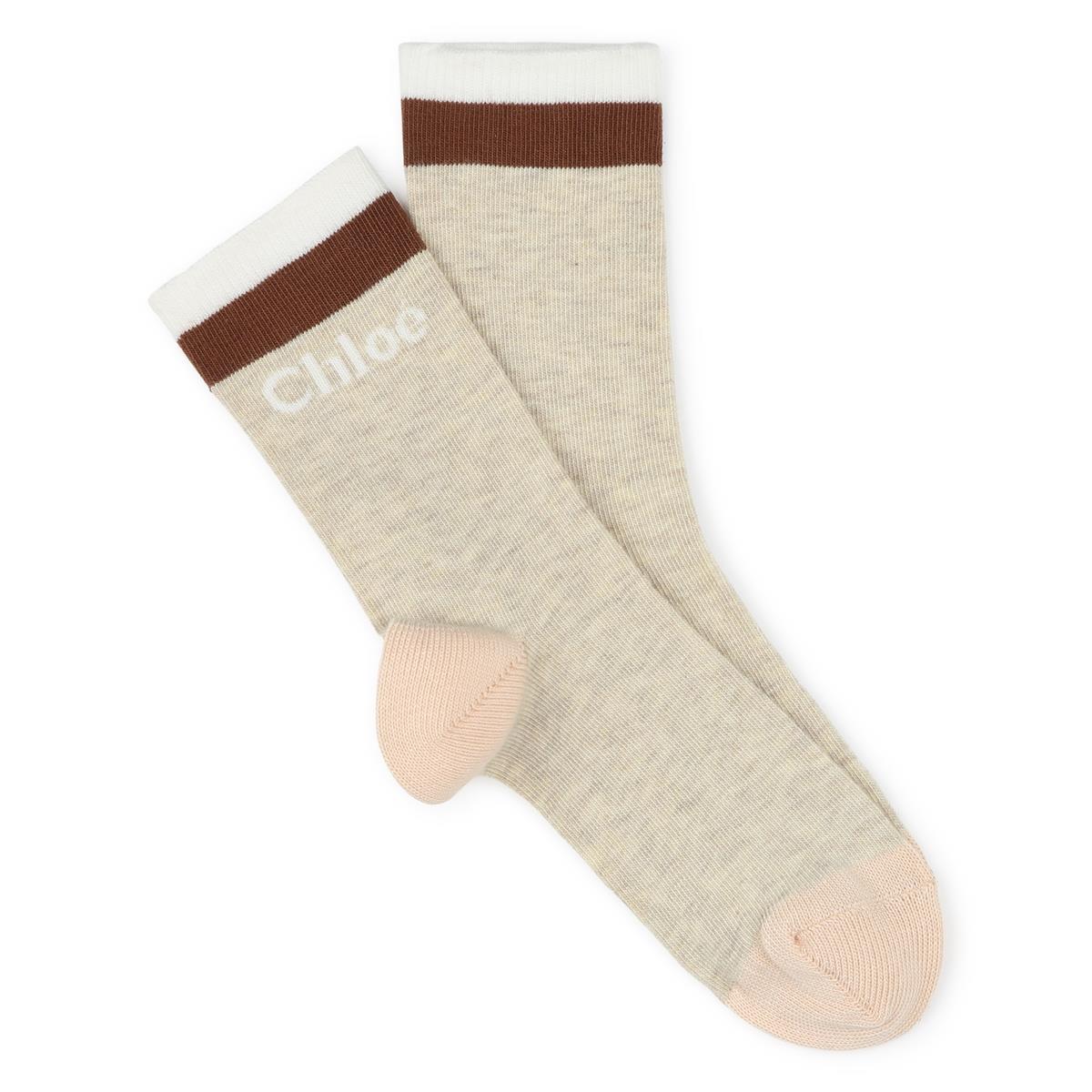 女童米色棉袜