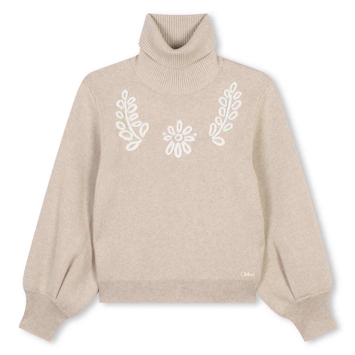 女童米色高领毛衣