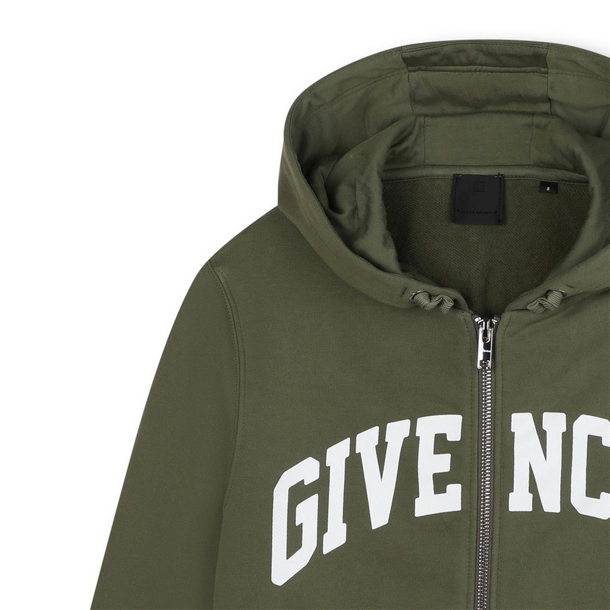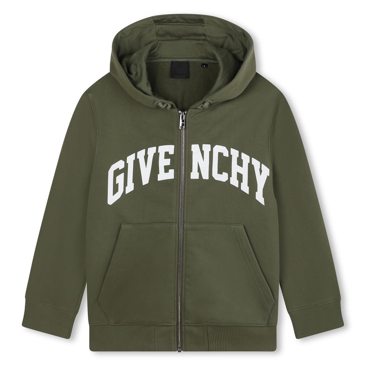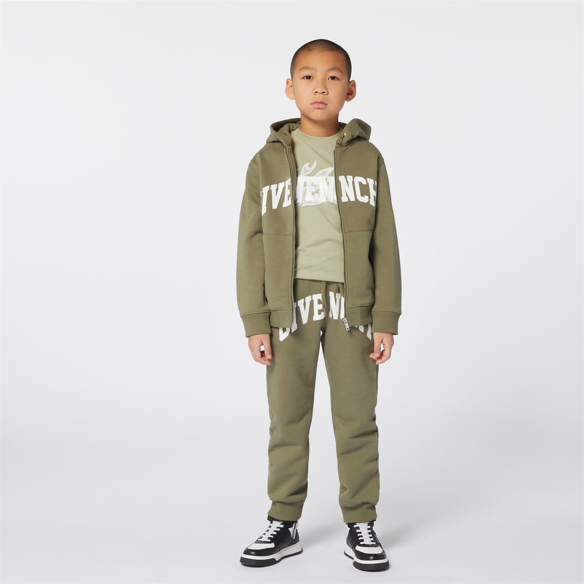 Boys Dark Green Cotton Zip-Up Top