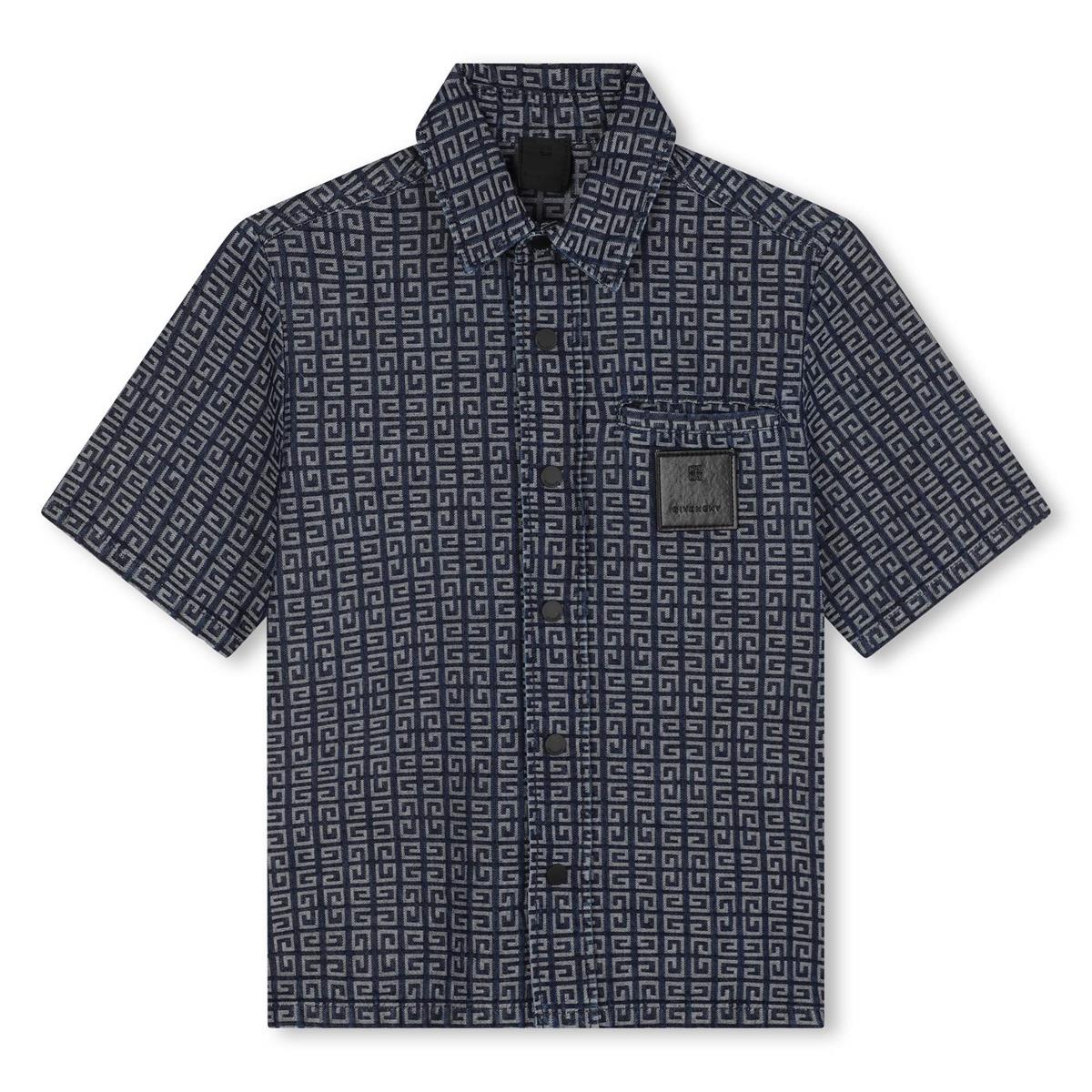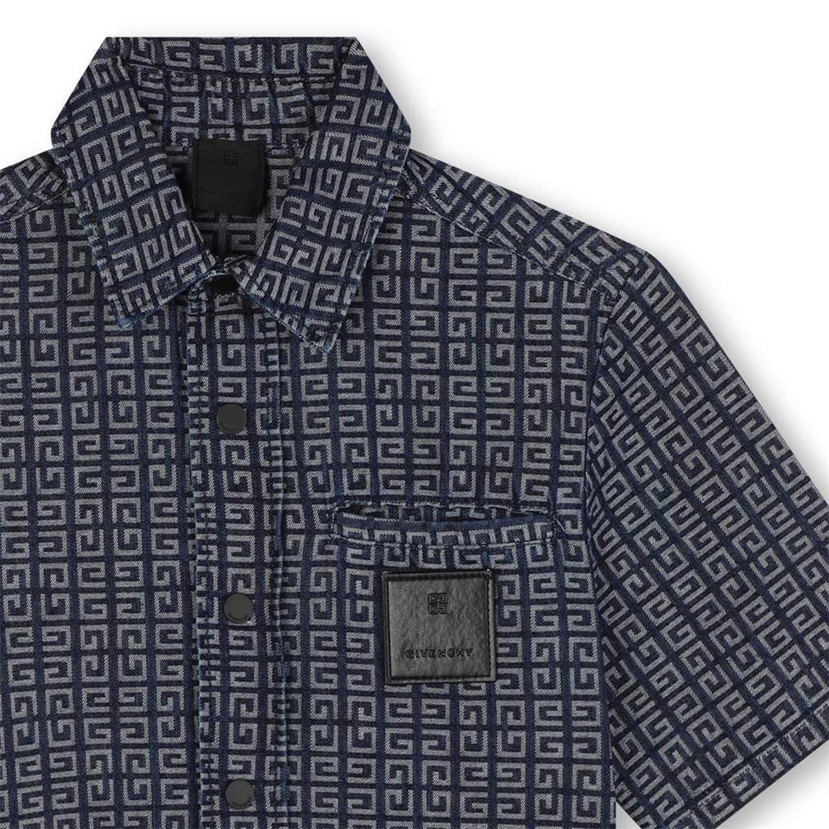 Boys Dark Blue Logo Cotton Shirt