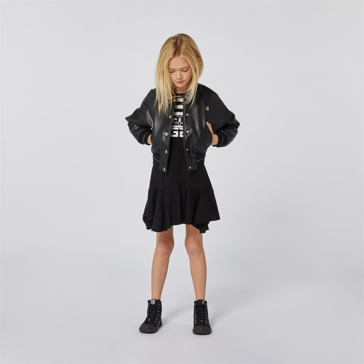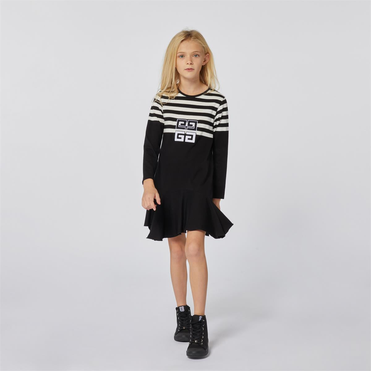 女童黑色棉连衣裙