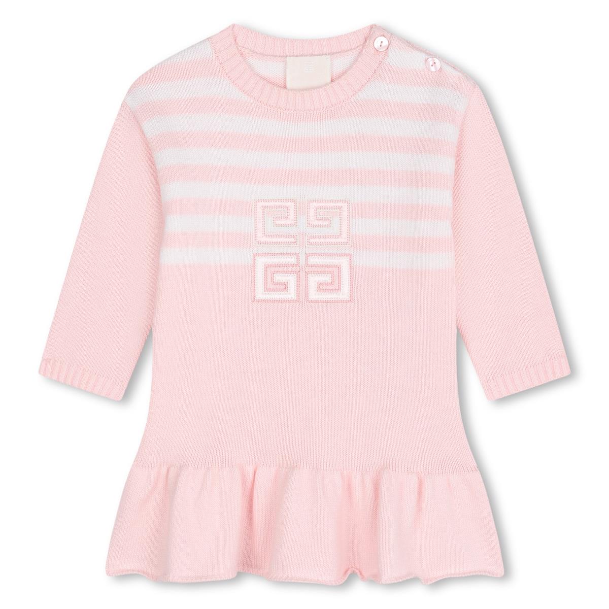 女婴粉色条纹棉连衣裙
