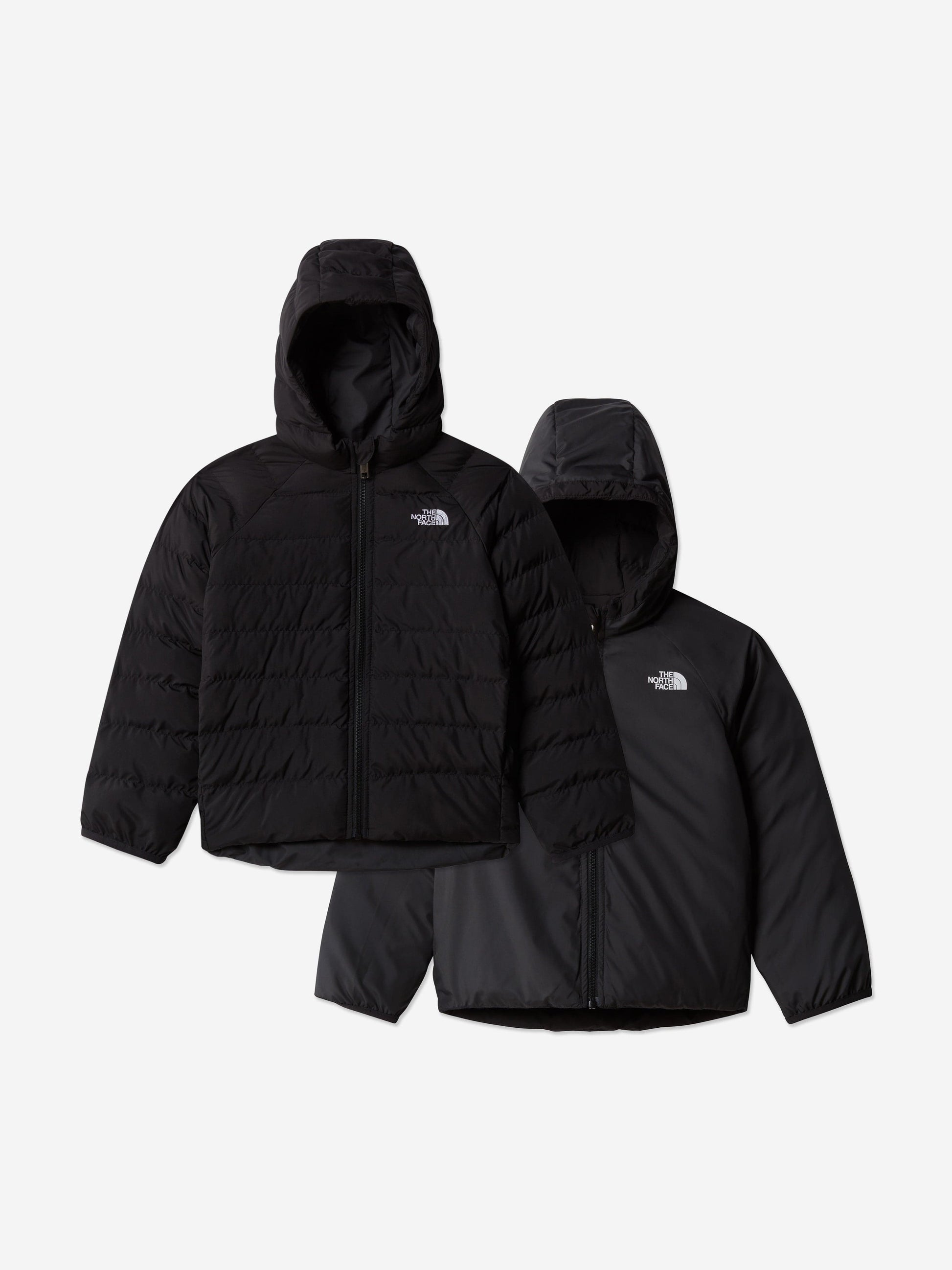 Introducing the Boys Reversible Perrito Hooded Jacket in Black by The North Face, an essential addition for AW2024 style. Crafted for sophistication and versatility, this jacket offers dual looks in one: